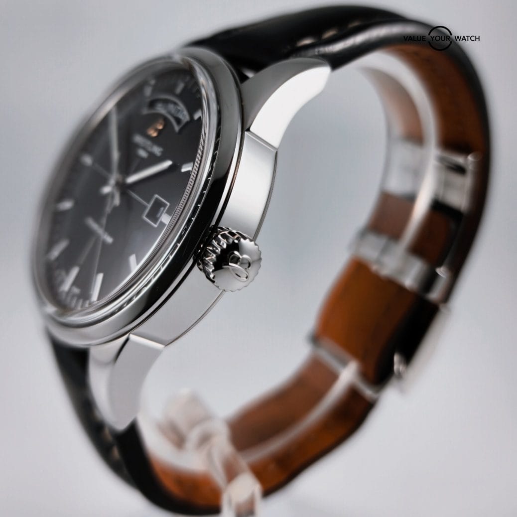 Features a 43mm stainless steel case, black dial, day and date complications, it is 12.8mm thick and keeping excellent time.