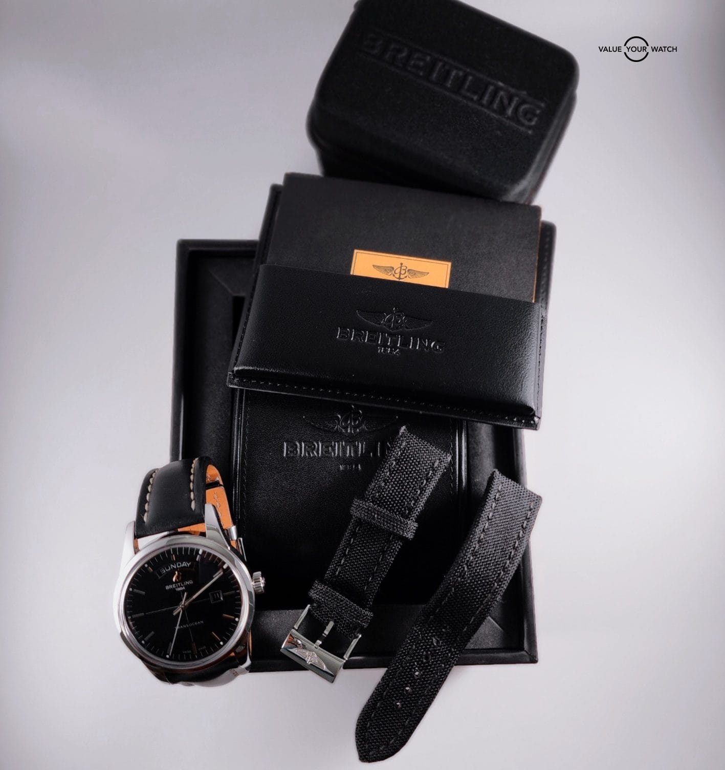 – Genuine Breitling calf leather strap with stainless steel buckle
