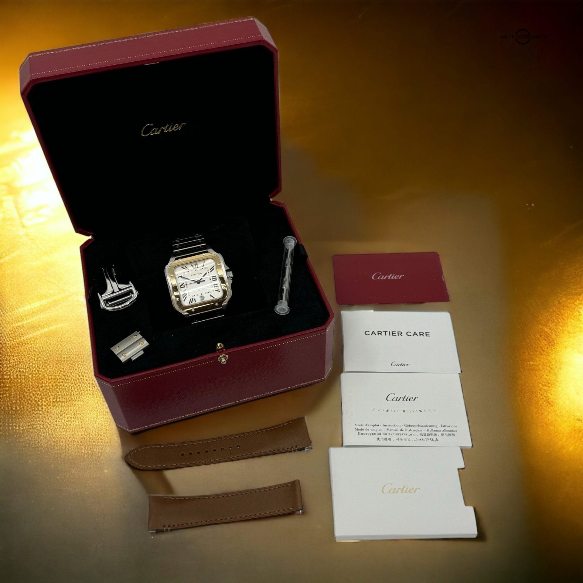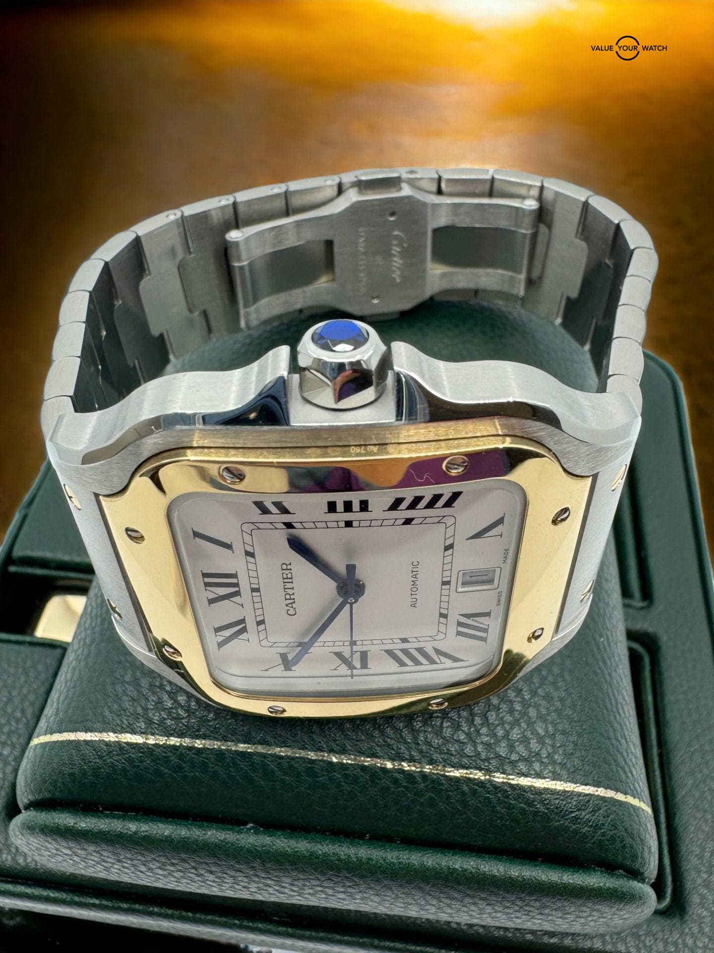 Cartier Santos Large Two Tone Steel & 18K Yellow Gold Automatic White Roman Dial