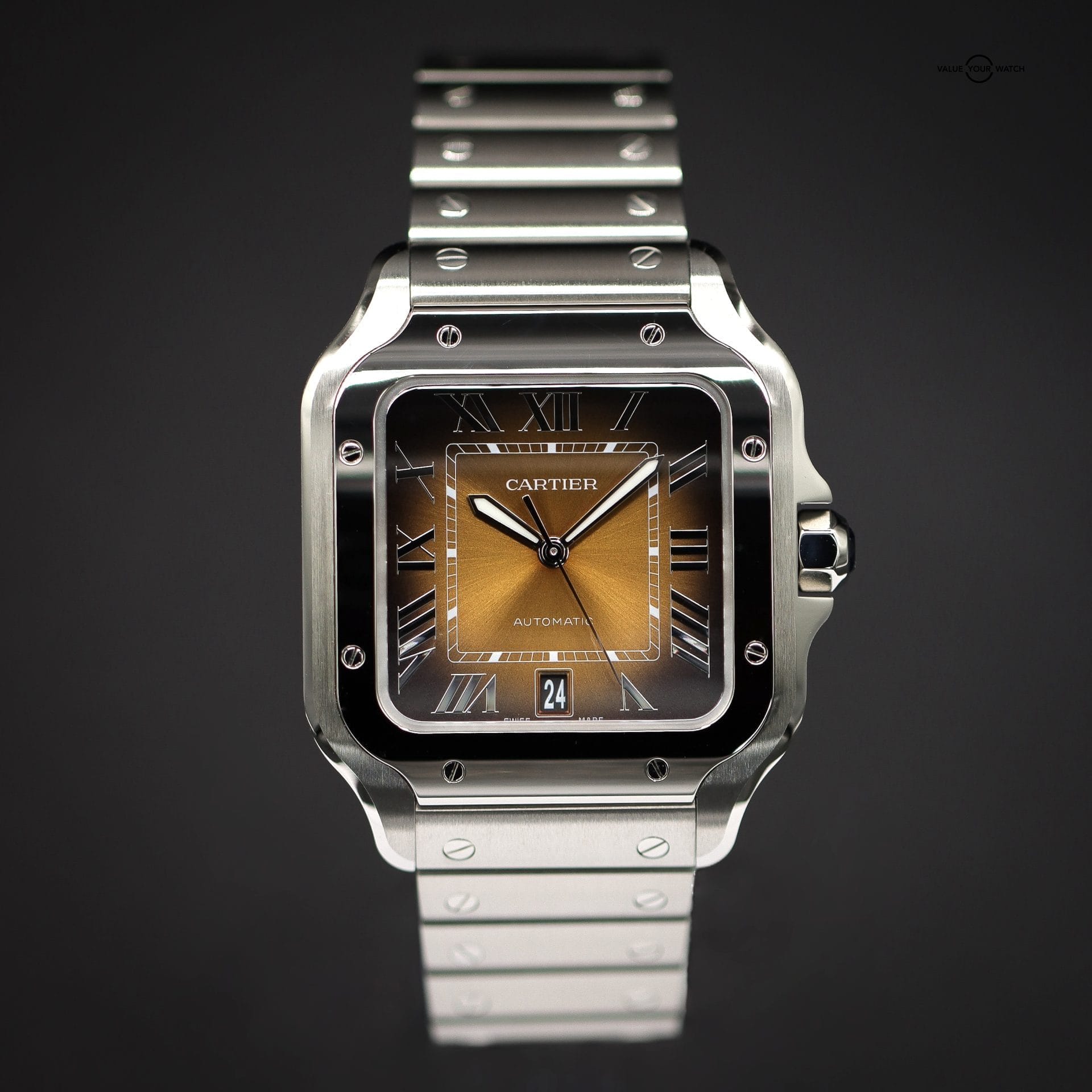 FS: CARTIER Santos Medium, NEW RELEASE, Brown/Gold Burst Dial, Steel Bracelet, Ref. WSSA0065, Full Set