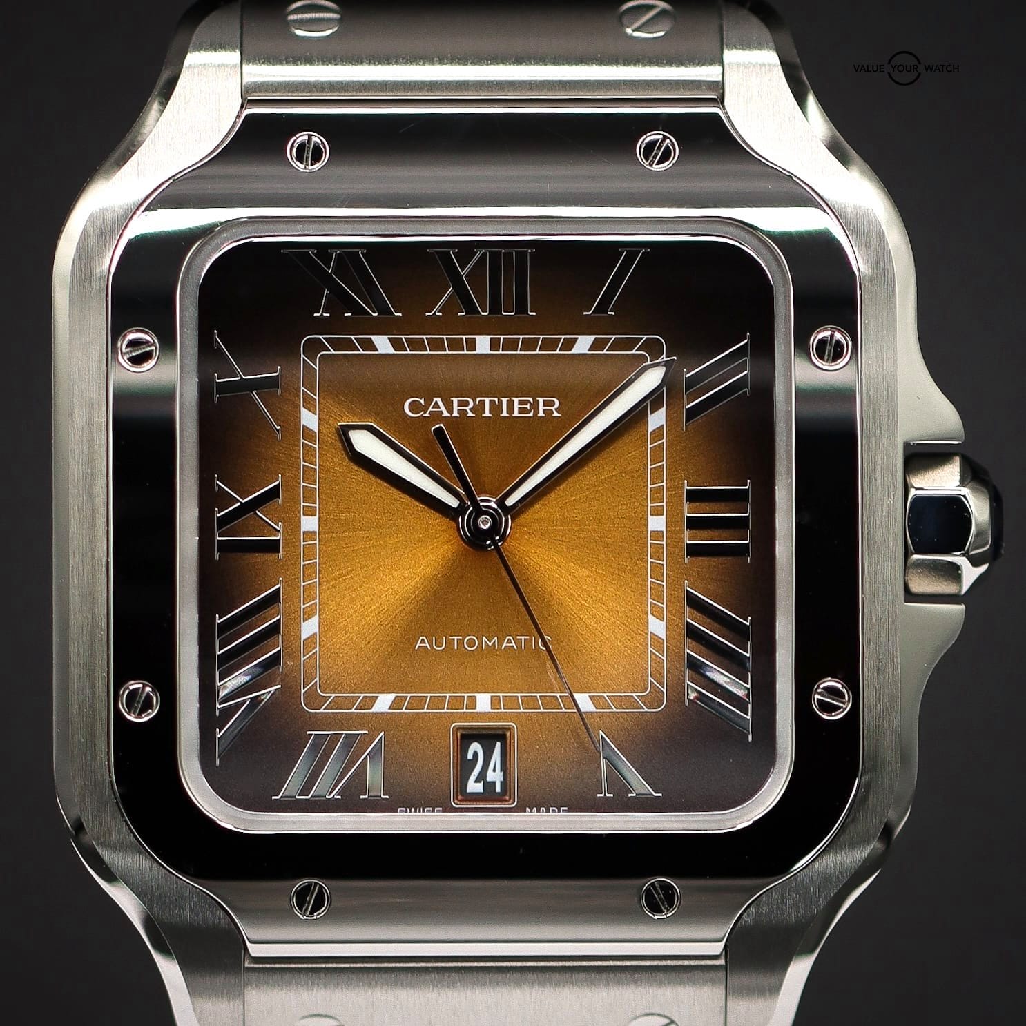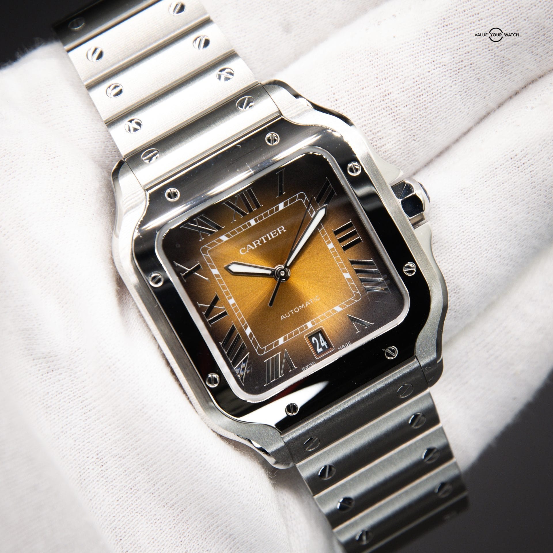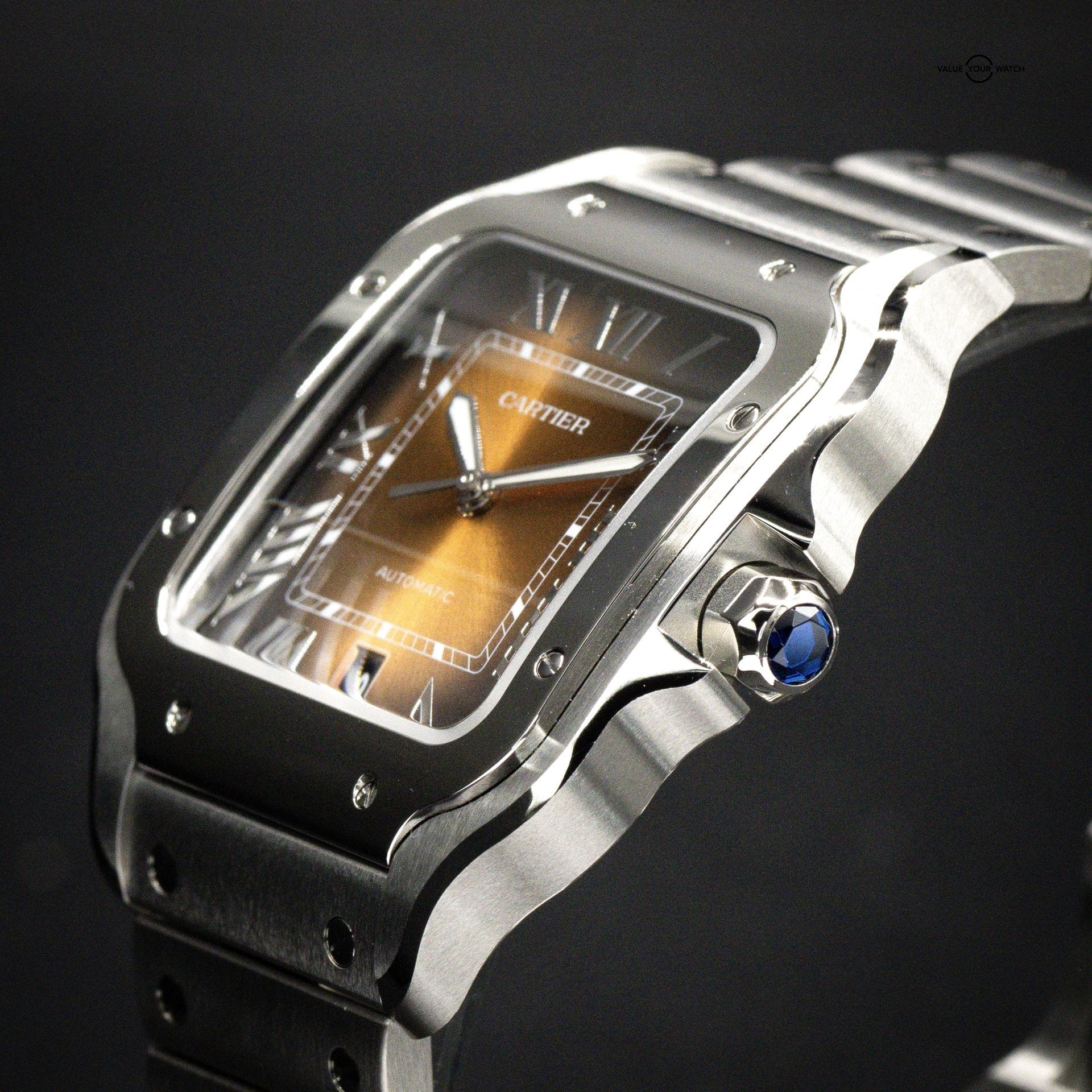 FS: CARTIER Santos Medium, NEW RELEASE, Brown/Gold Burst Dial, Steel Bracelet, Ref. WSSA0065, Full Set