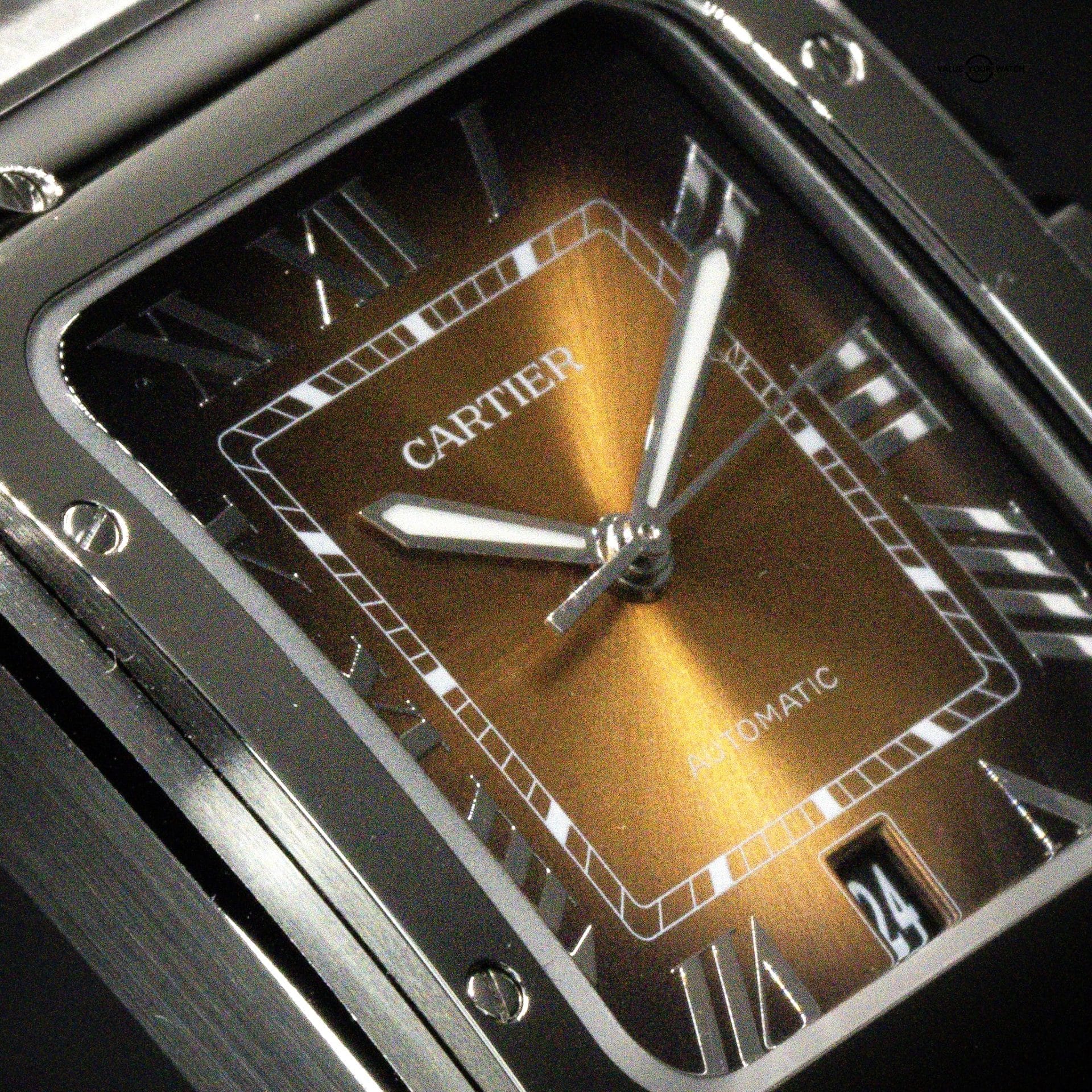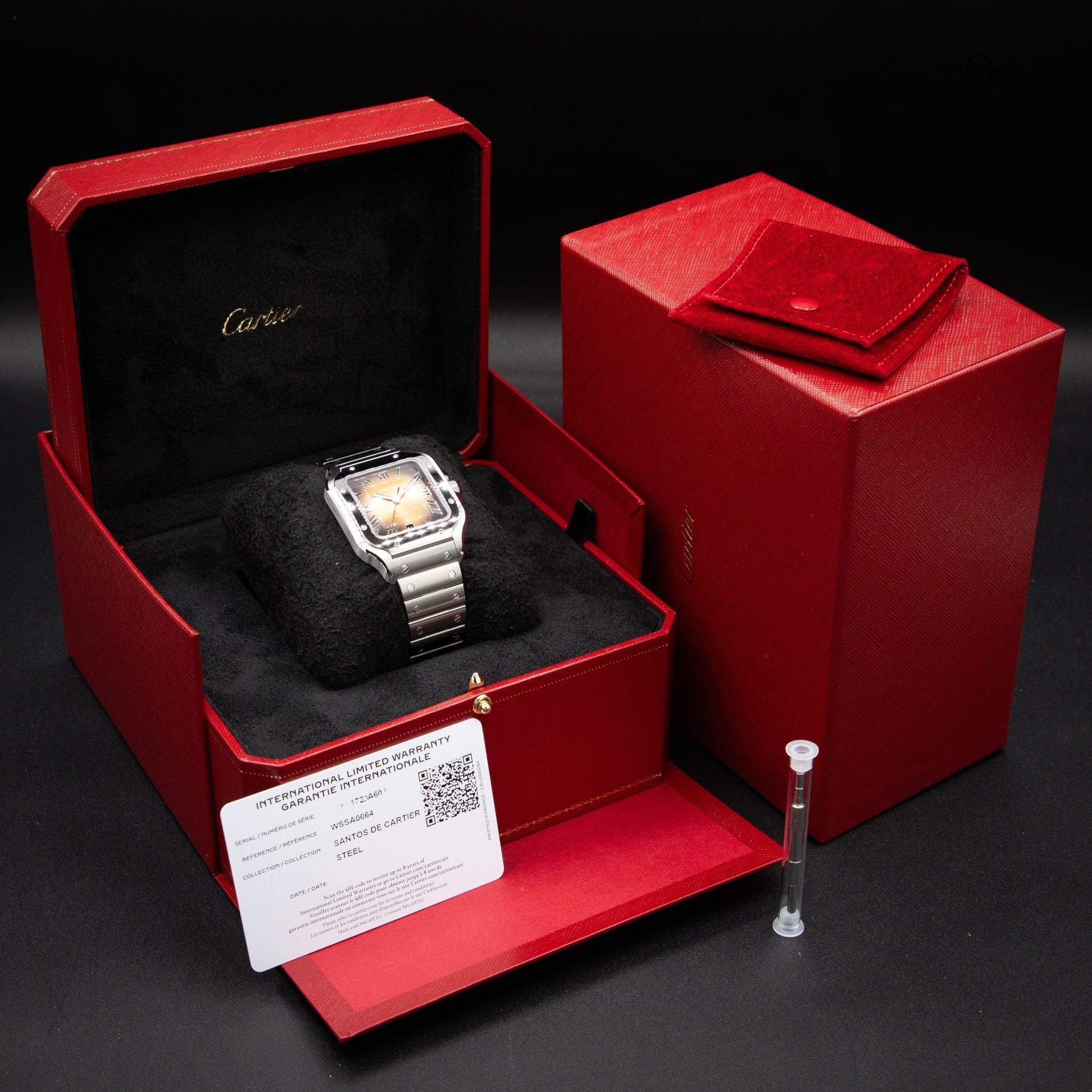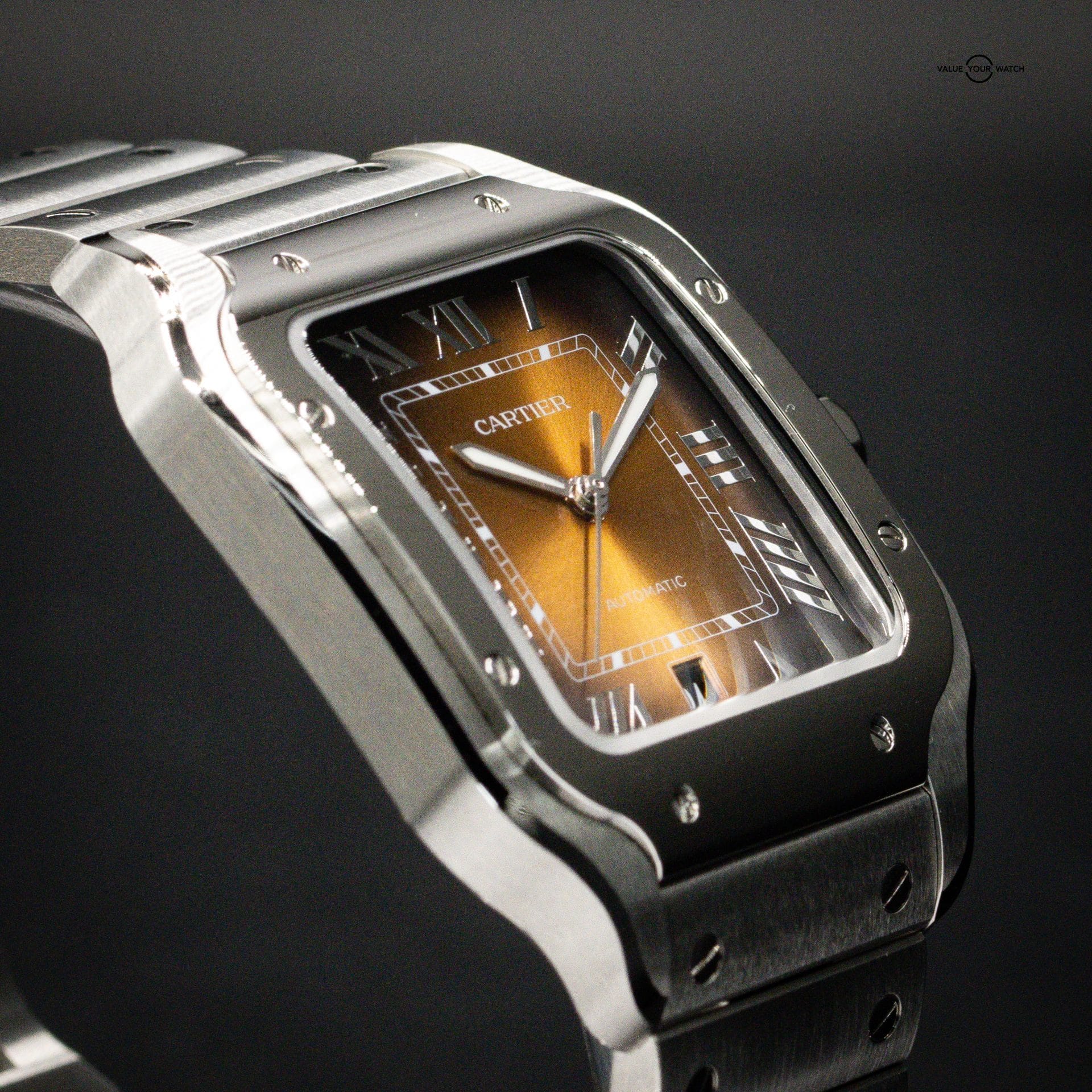 FS: CARTIER Santos Medium, NEW RELEASE, Brown/Gold Burst Dial, Steel Bracelet, Ref. WSSA0065, Full Set