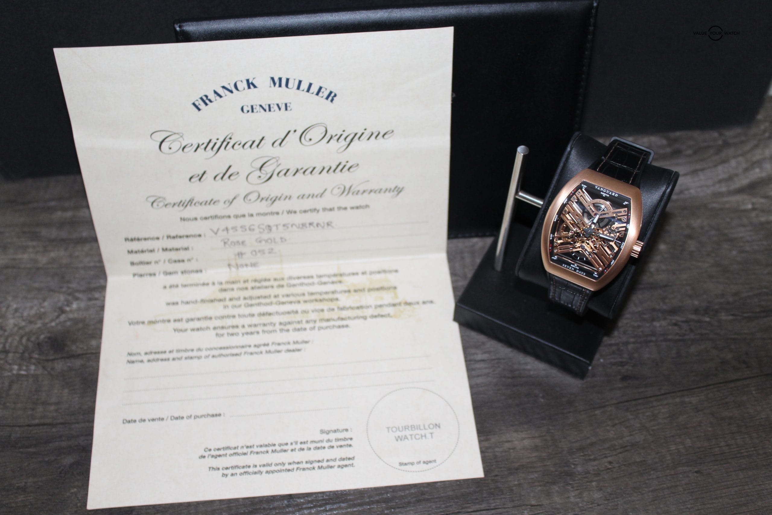 This timepiece comes with the original Franck Muller box, original Certificate of Origin and Warranty and Master of Complication Folder.
