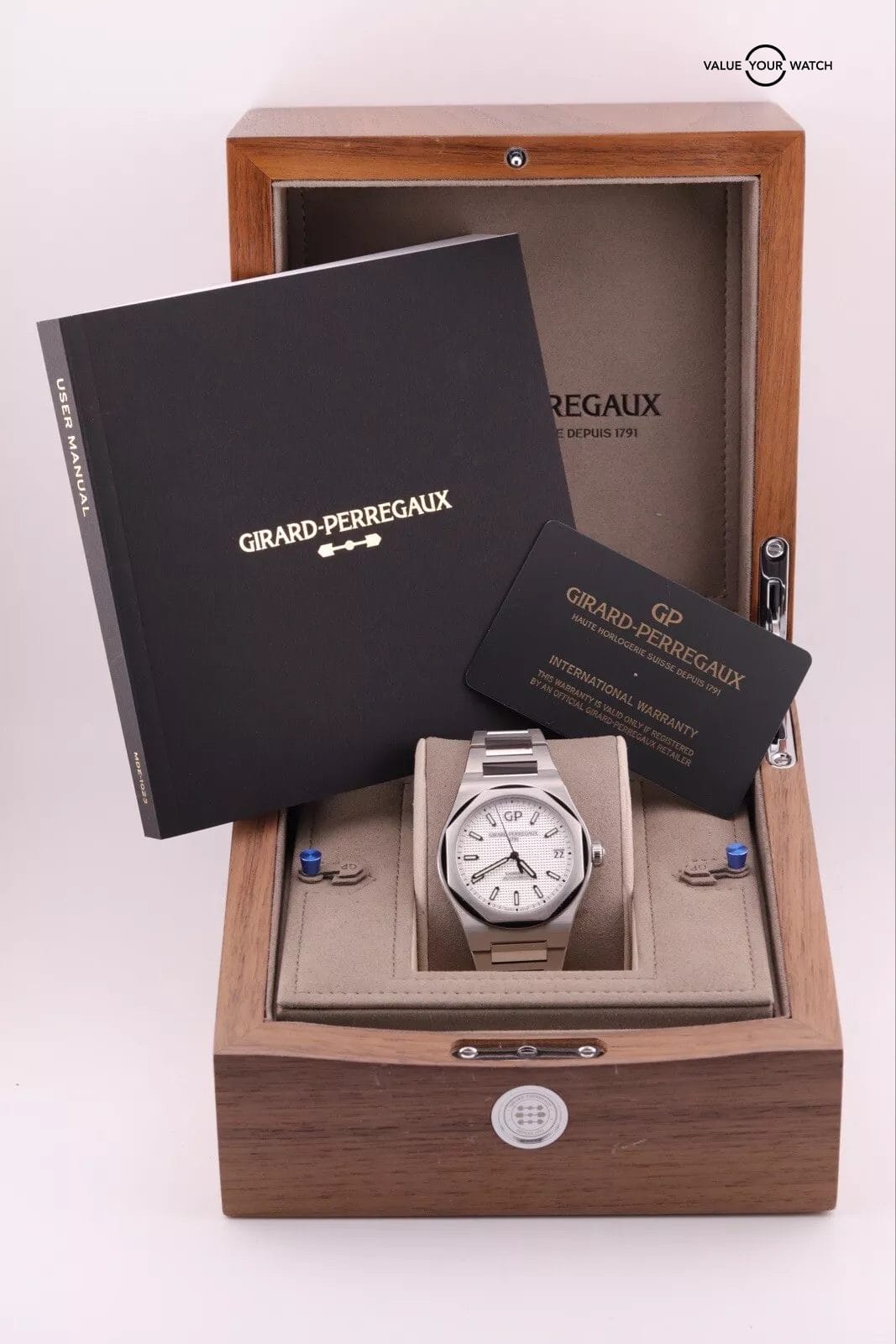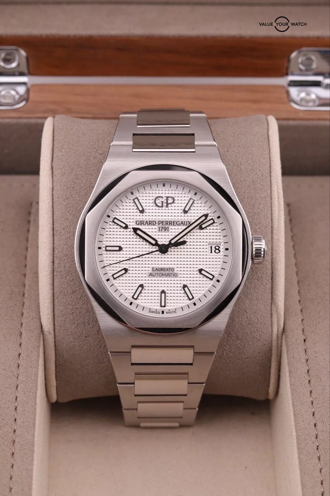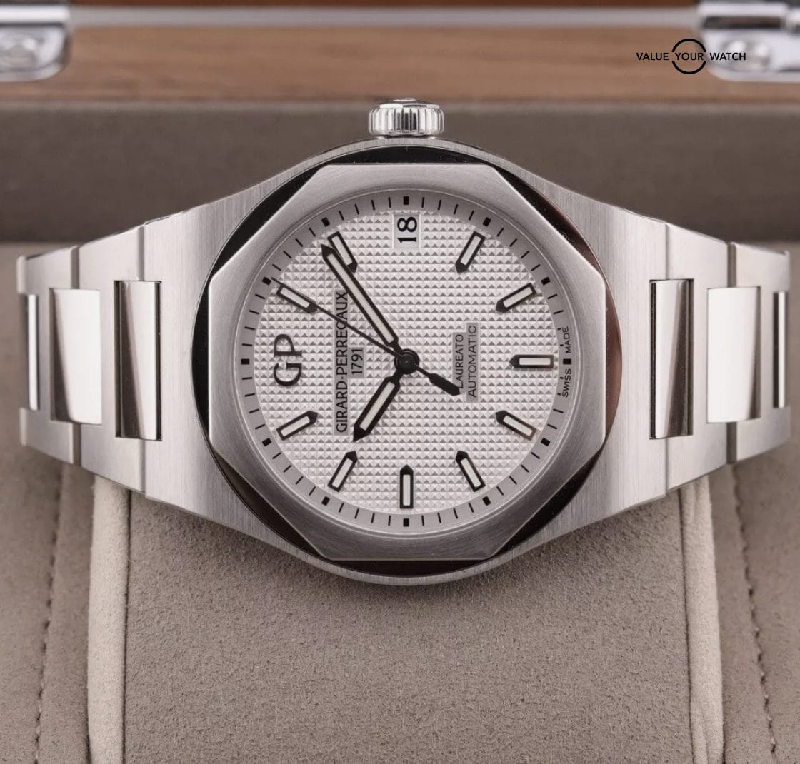 2022 Girard Perregaux Laureato PAPERS Steel 42mm White Watch 81010 COMPLETE
