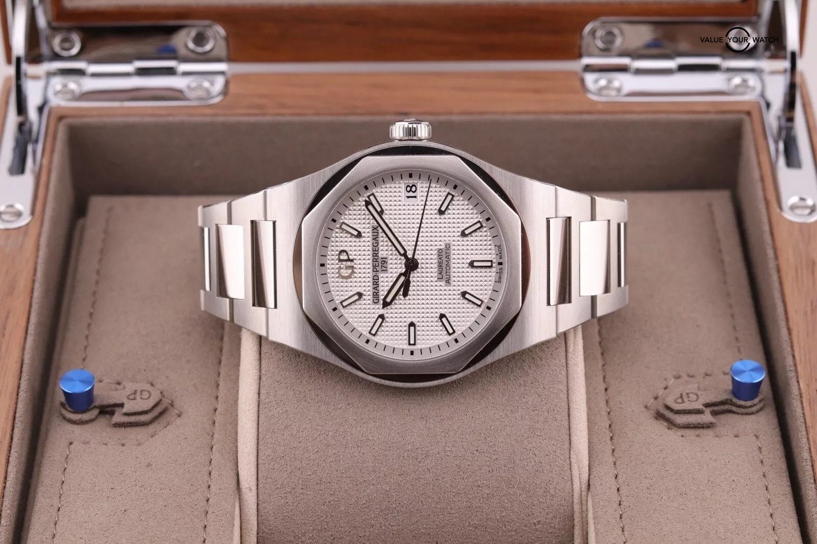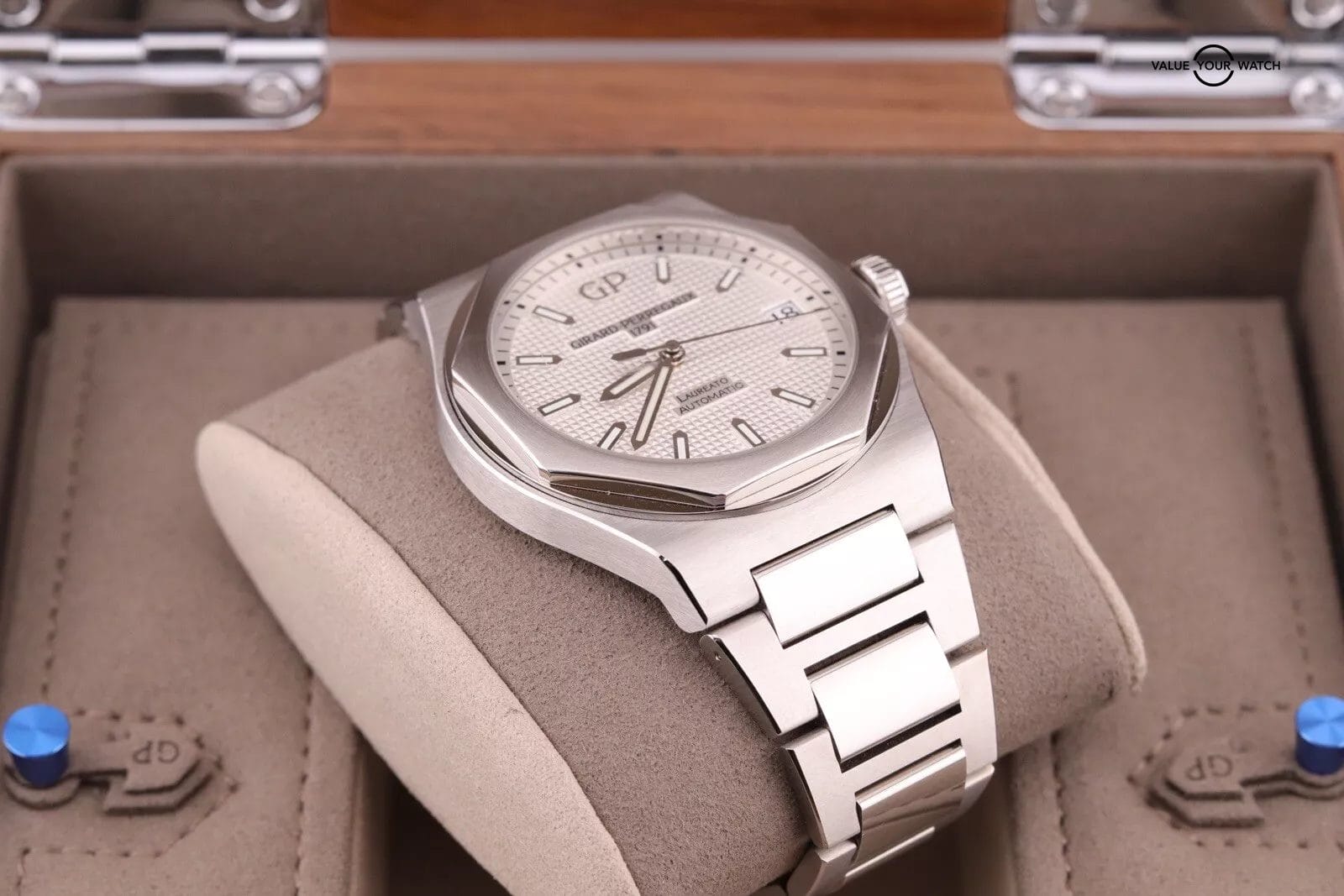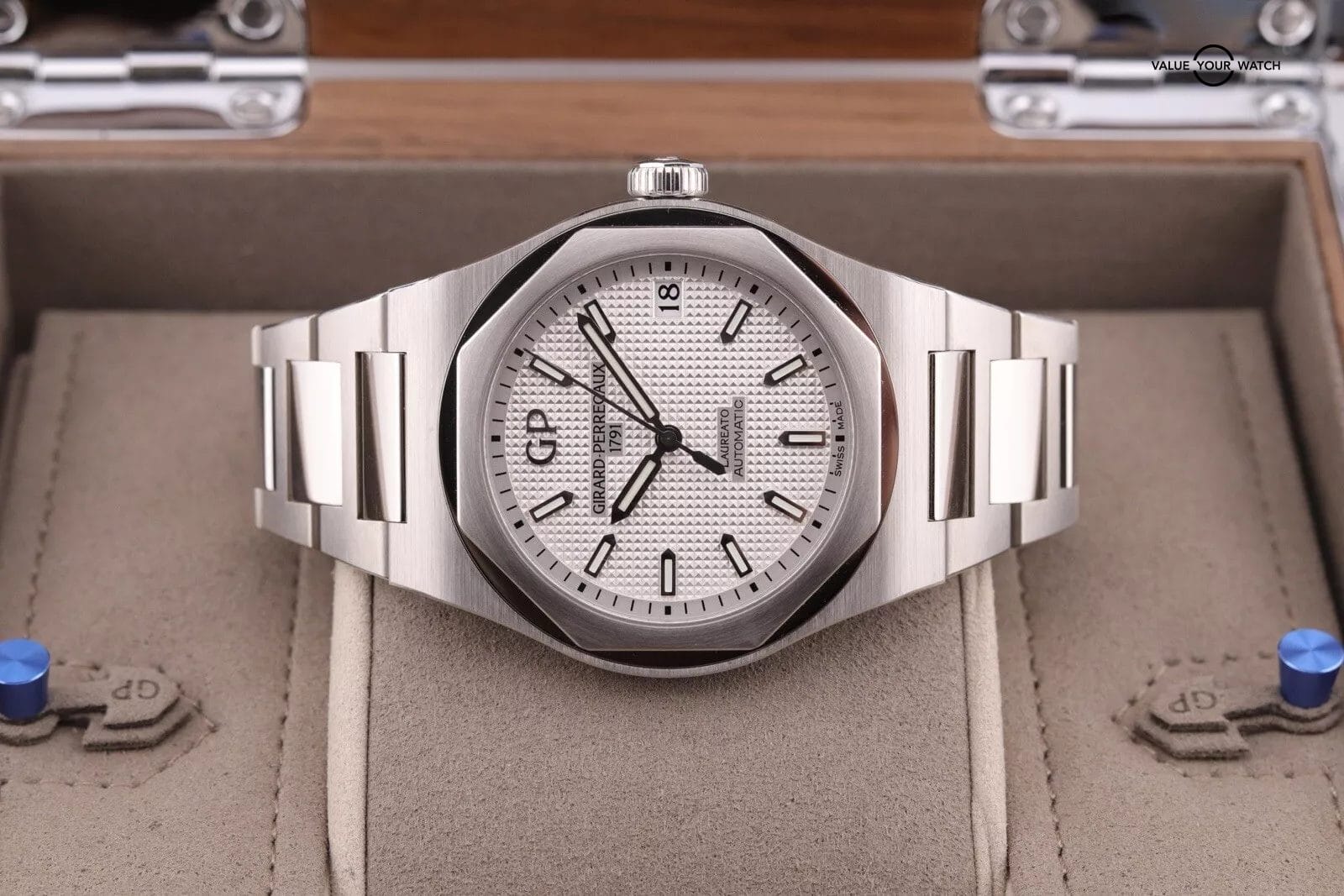 2022 Girard Perregaux Laureato PAPERS Steel 42mm White Watch 81010 COMPLETE