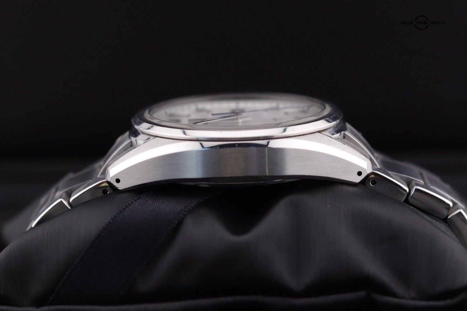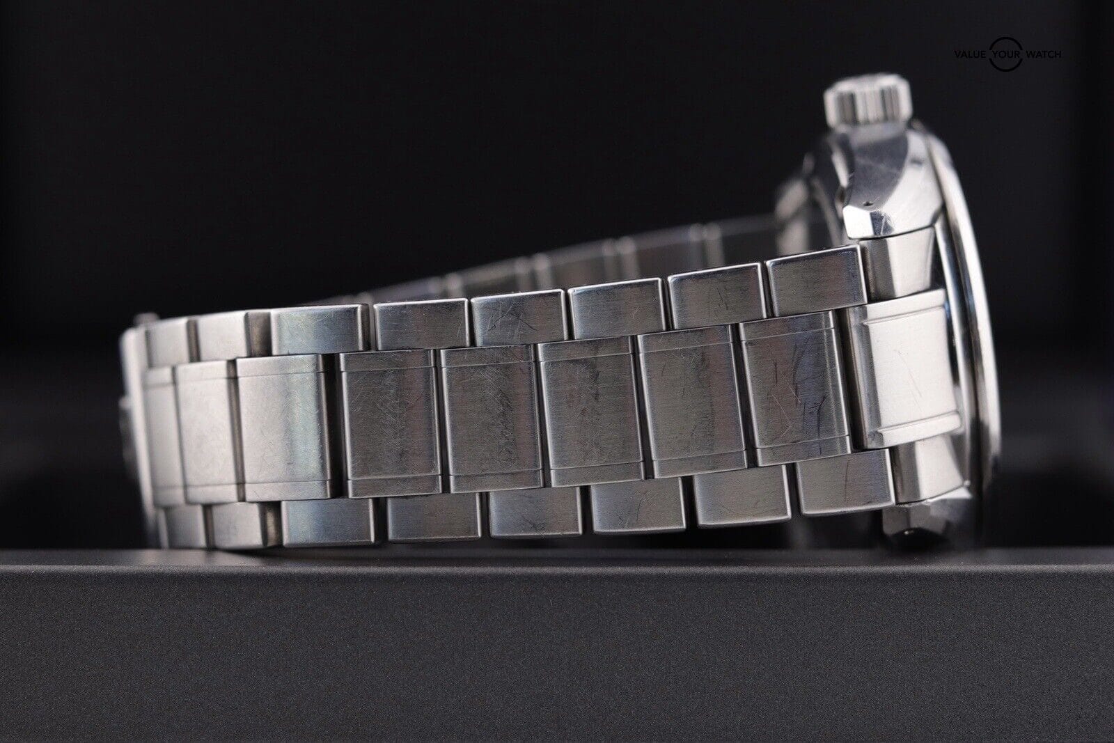 – Clean Crystals and Healty Movement. Metal has scratches throughout including some flea bites in bezel, deeper scratches in case (mostly near edges), and desk dive scuffs in bracelet (mostly on 12 side). See high resolution pictures and zoom around.