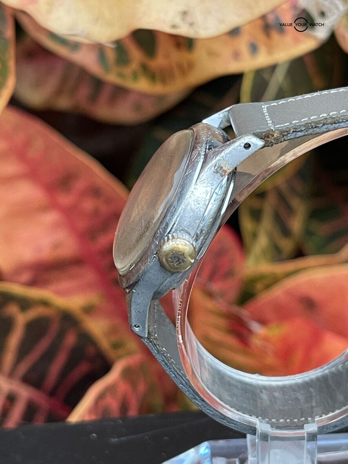 Leather strap is used and shows signs of wear. Not original to the watch.