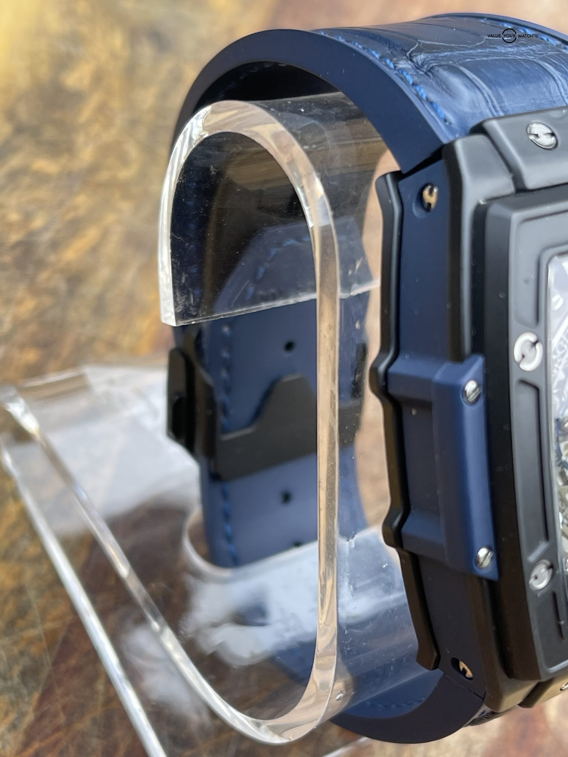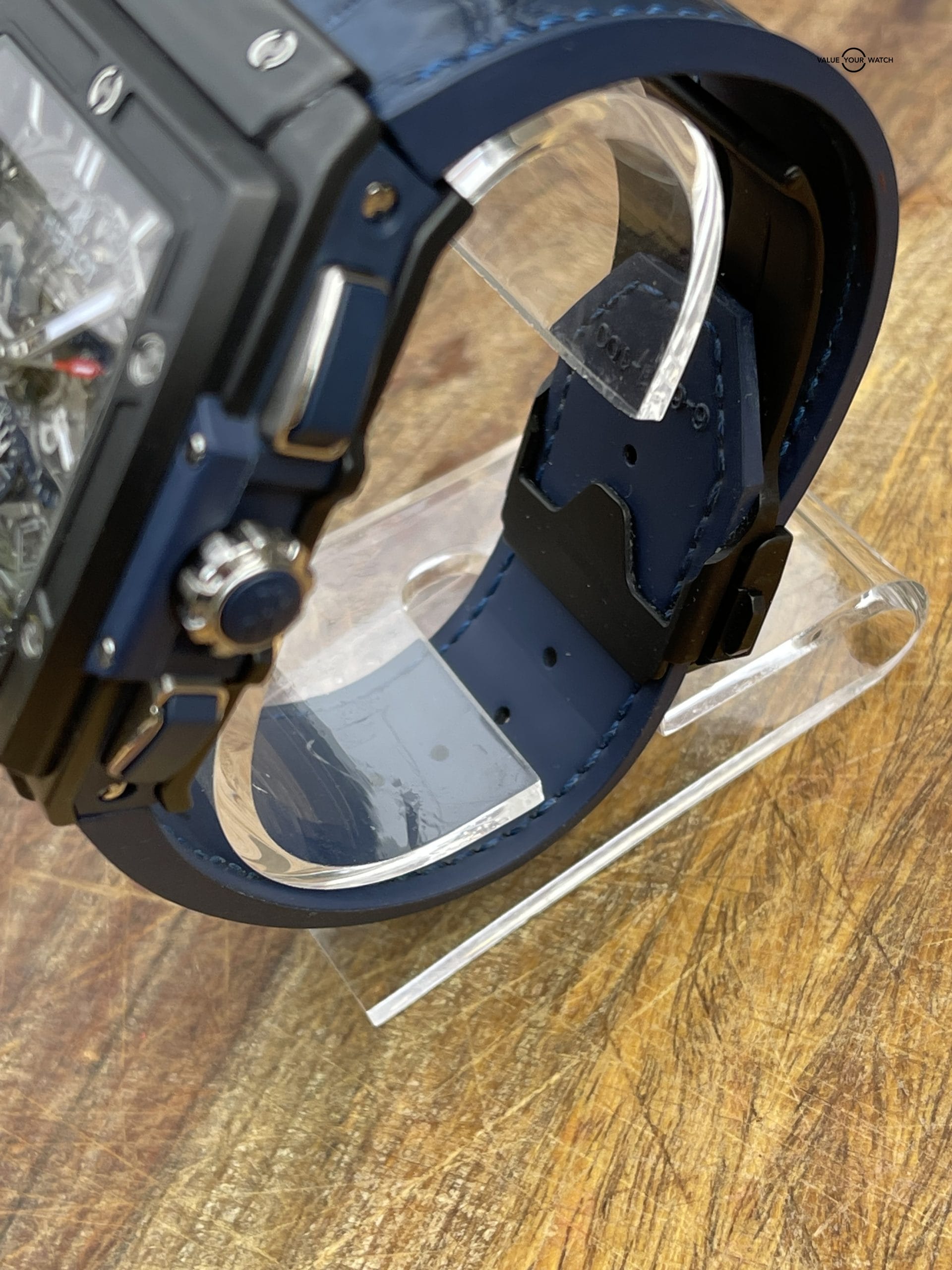 The Hublot Spirit of Big Bang represents the epitome of technical excellence and innovative design. Its remarkable features, such as the scratch-resistant blue ceramic case and intricate skeleton dial, combined with the luxurious crocodile leather strap, make it a true masterpiece. The automatic HUB4700 caliber movement, with its impressive power reserve and visible craftsmanship through the transparent back case, adds to the watch’s overall appeal.