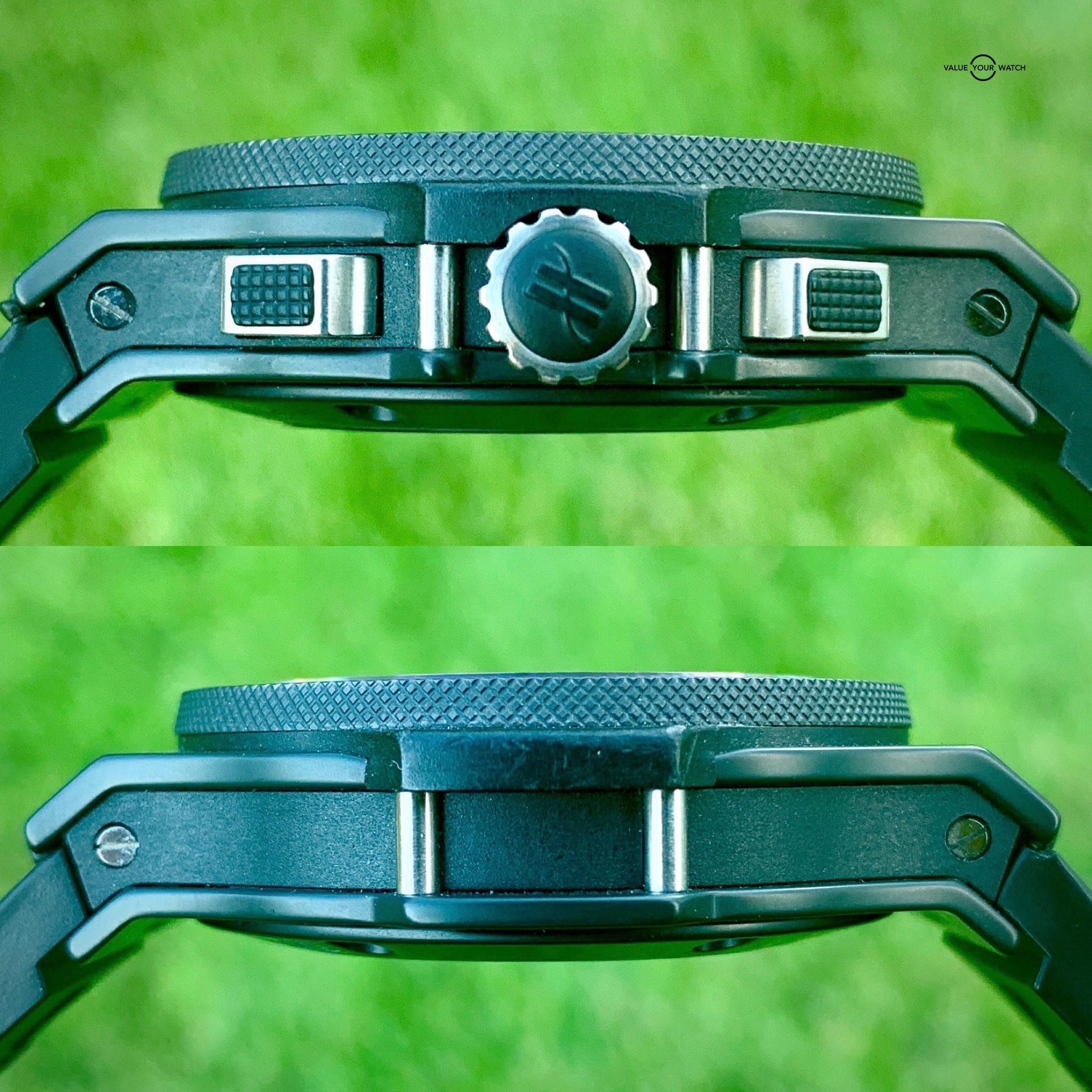 Set includes the original Hublot outer box/inner box, manufacturer’s warranty card, instruction manual, and hang tag.