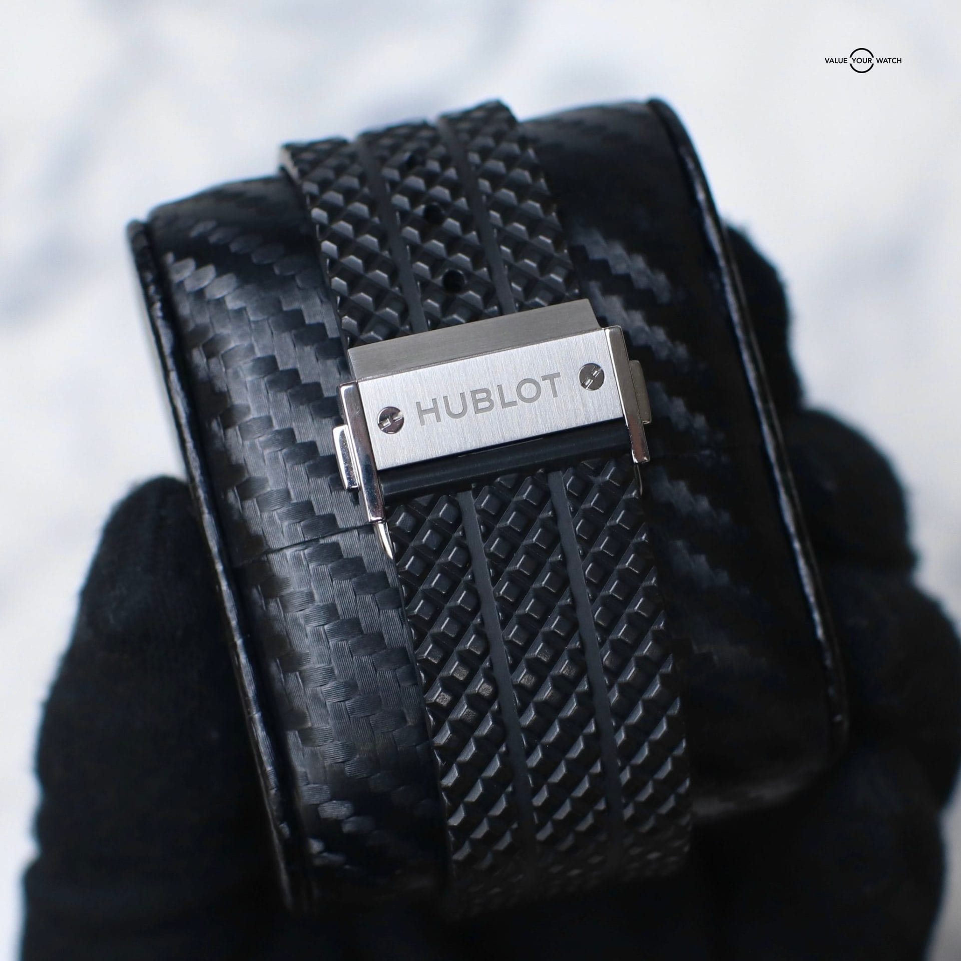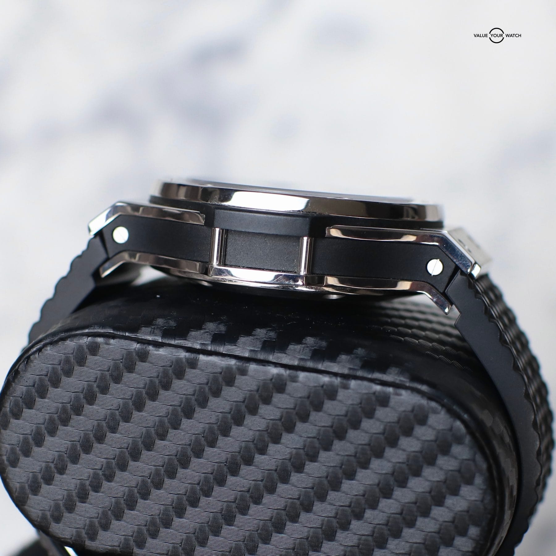 Featuring a 44mm polished and satin-finished stainless steel and a stunning matte black dial with a sapphire crystal. This watch features an in-house Hublot HUB4100 chronograph movement with a 42-hour power reserve