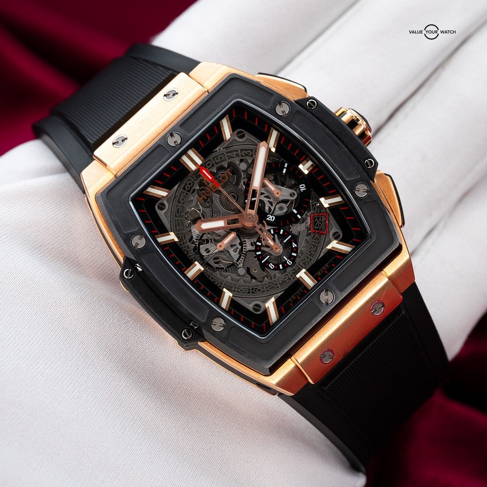 Ever wanted to rock a Richard Mille on your wrist at a fraction of the price? Personally, I find this watch even more stylish & tastefully done than most Richard Milles. Hublot takes the tonneau shape into their own hands, combined with an intricate skeleton dial and beautiful 18k gold case and black ceramic bezel, all merged into this sleek, stylish package that wears like an RM without breaking the bank.