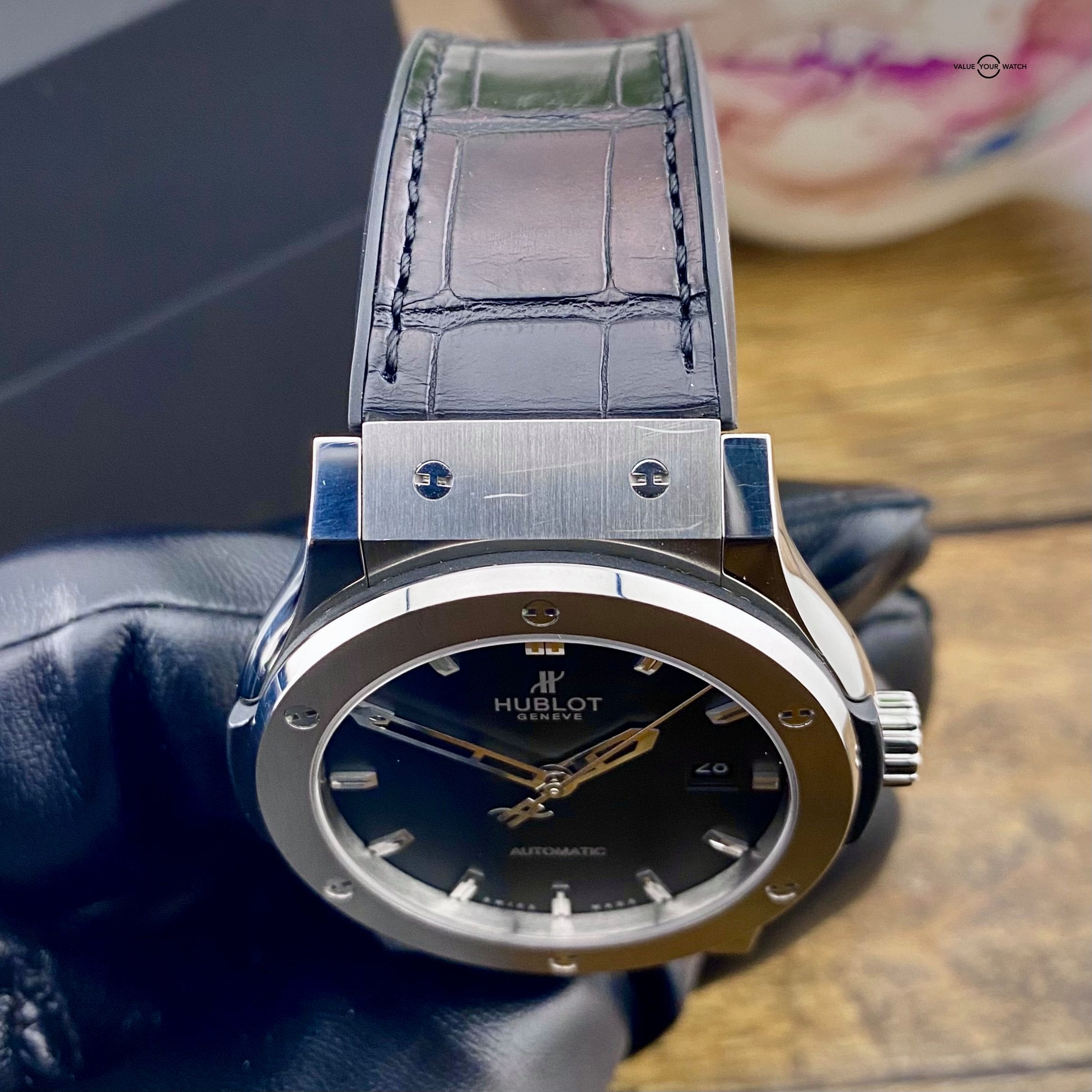 Specification: Hublot Classic Fusion 42mm 542.NX.1170.LR on Aligator Strap Full Set