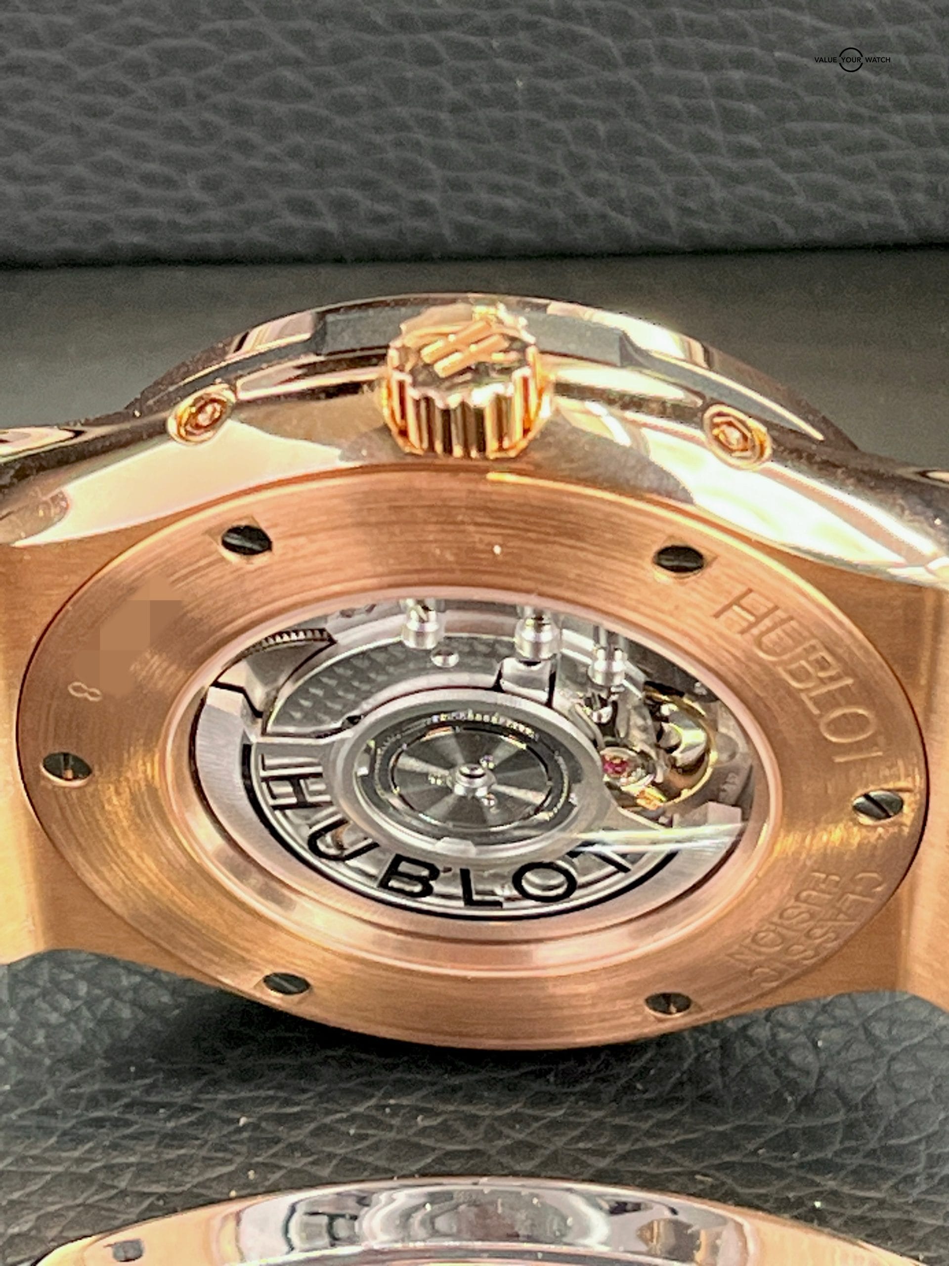 – Uses Hublot’s calibre HUB1131 automatic movement, containing 25 Jewels and has a power reserve of approximately 42 hours.