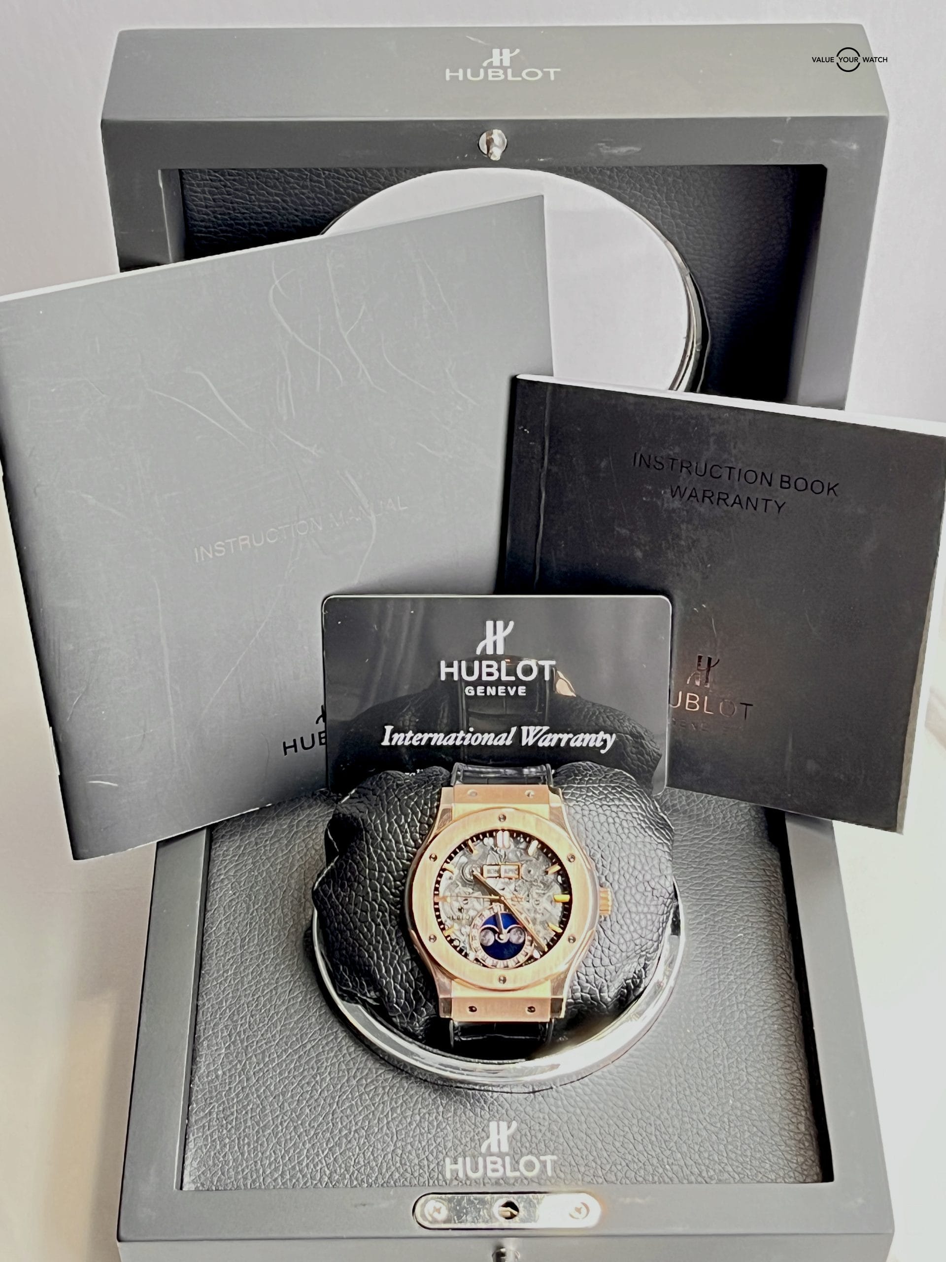 Specification: Hublot Classic Fusion Aerofusion Moonphase King Gold 45mm 517.OX.0180.LR (MSRP $35,200)
