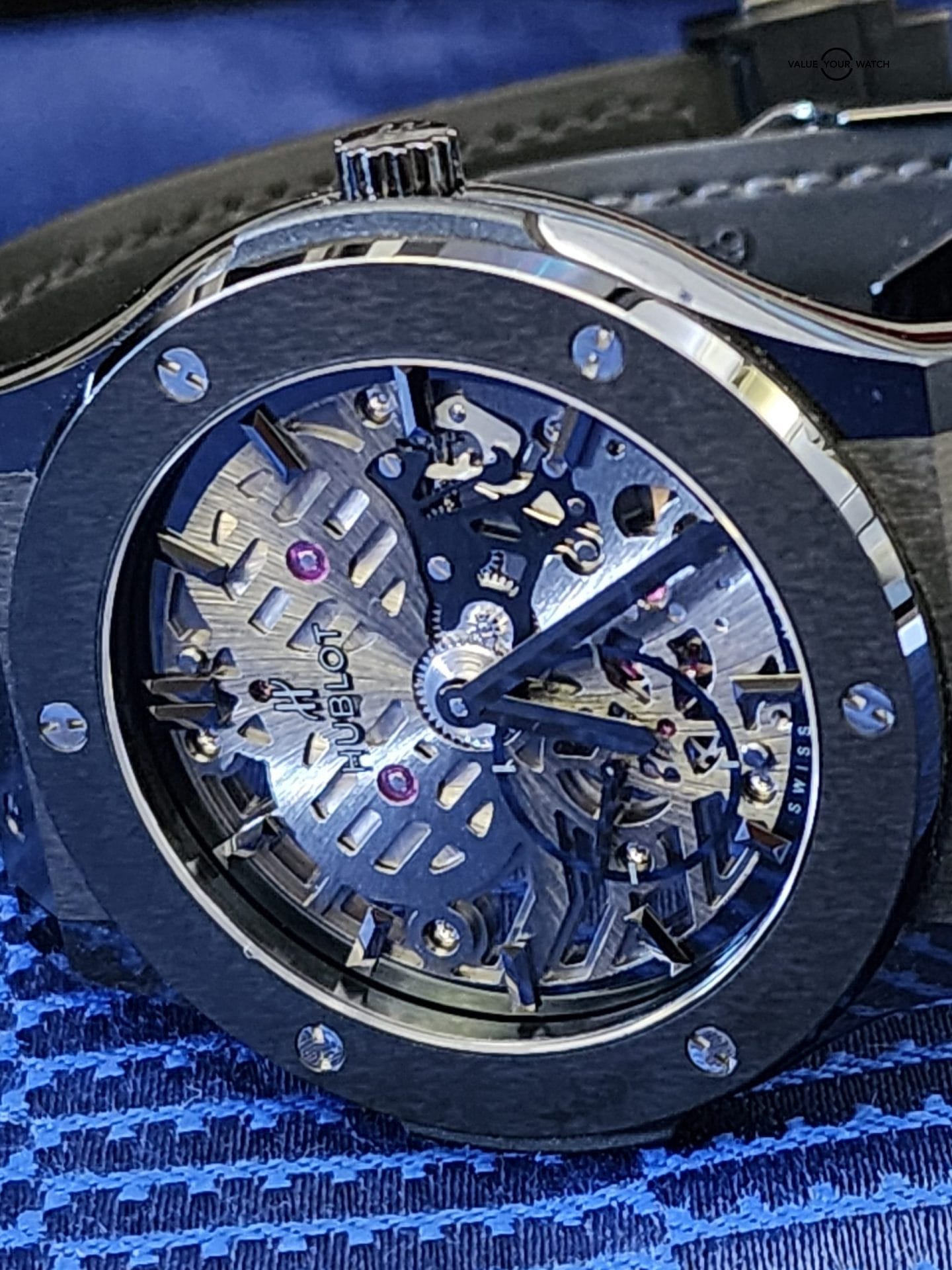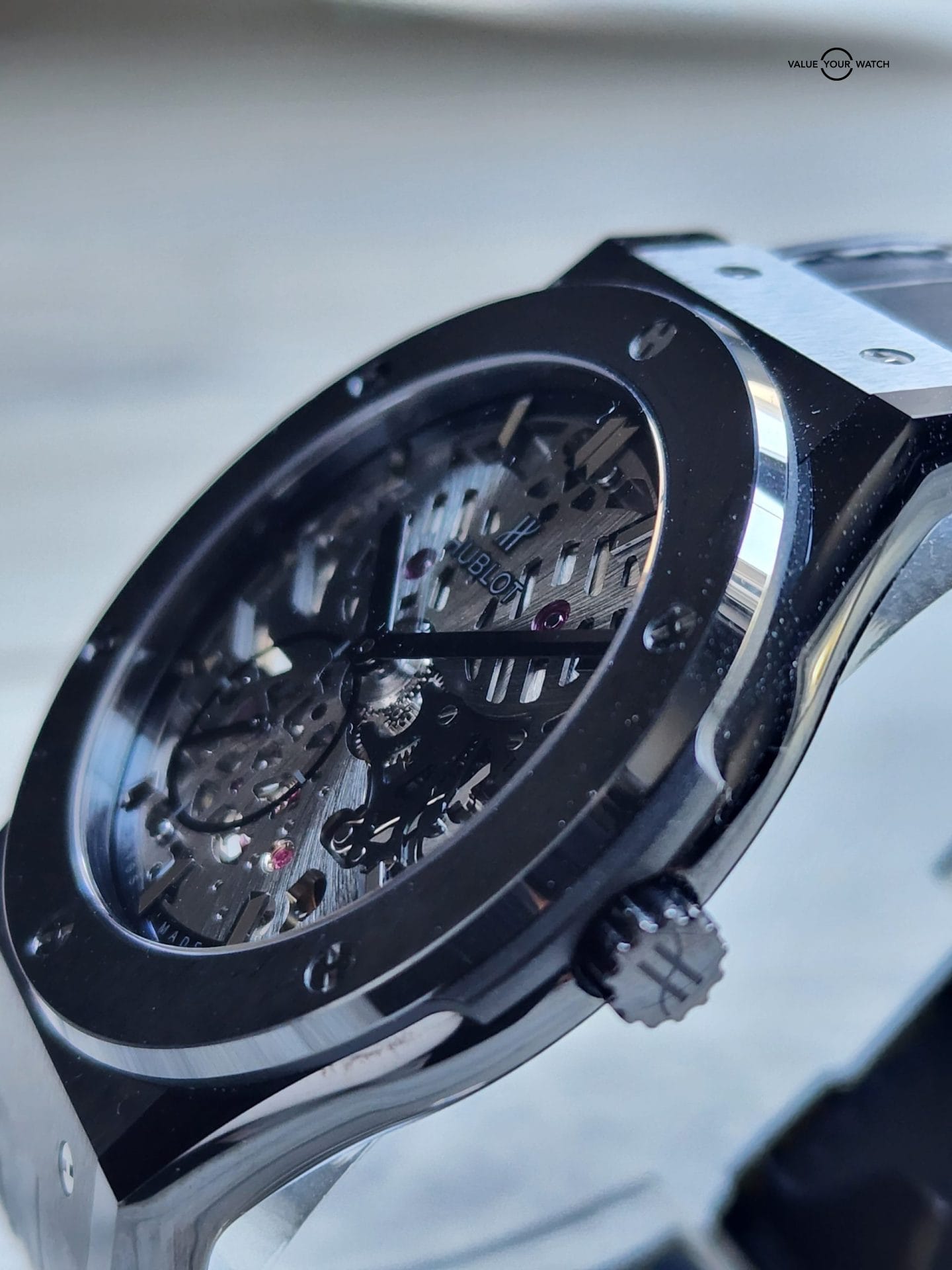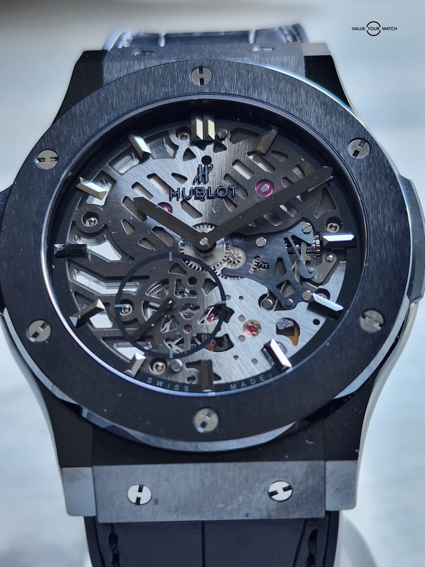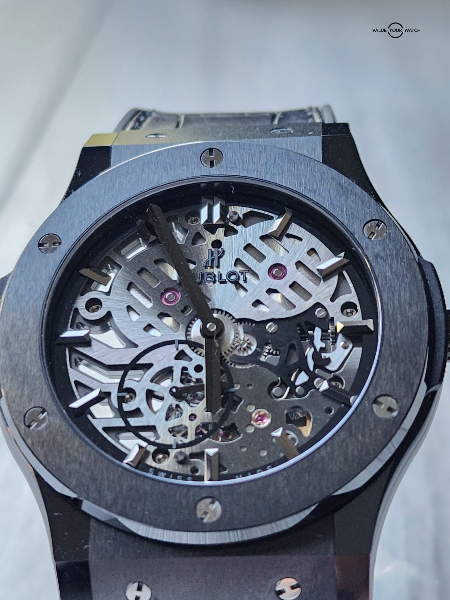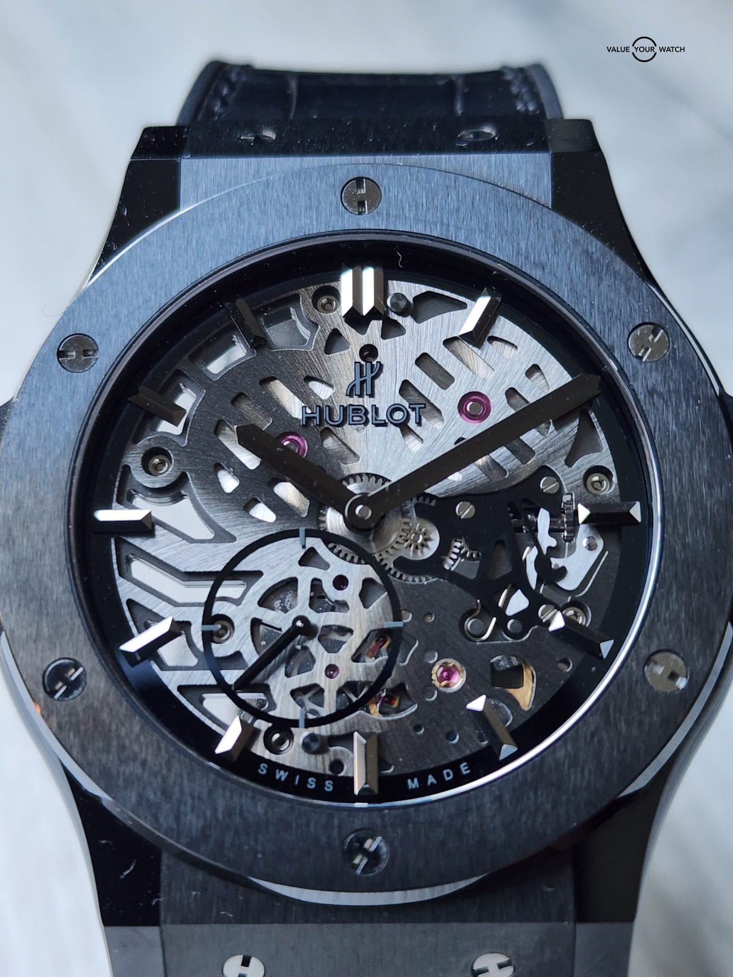 Hublot Classic Fusion Ultra Thin Black Skeleton Classico Ceramic w BOXES/PAPERS!