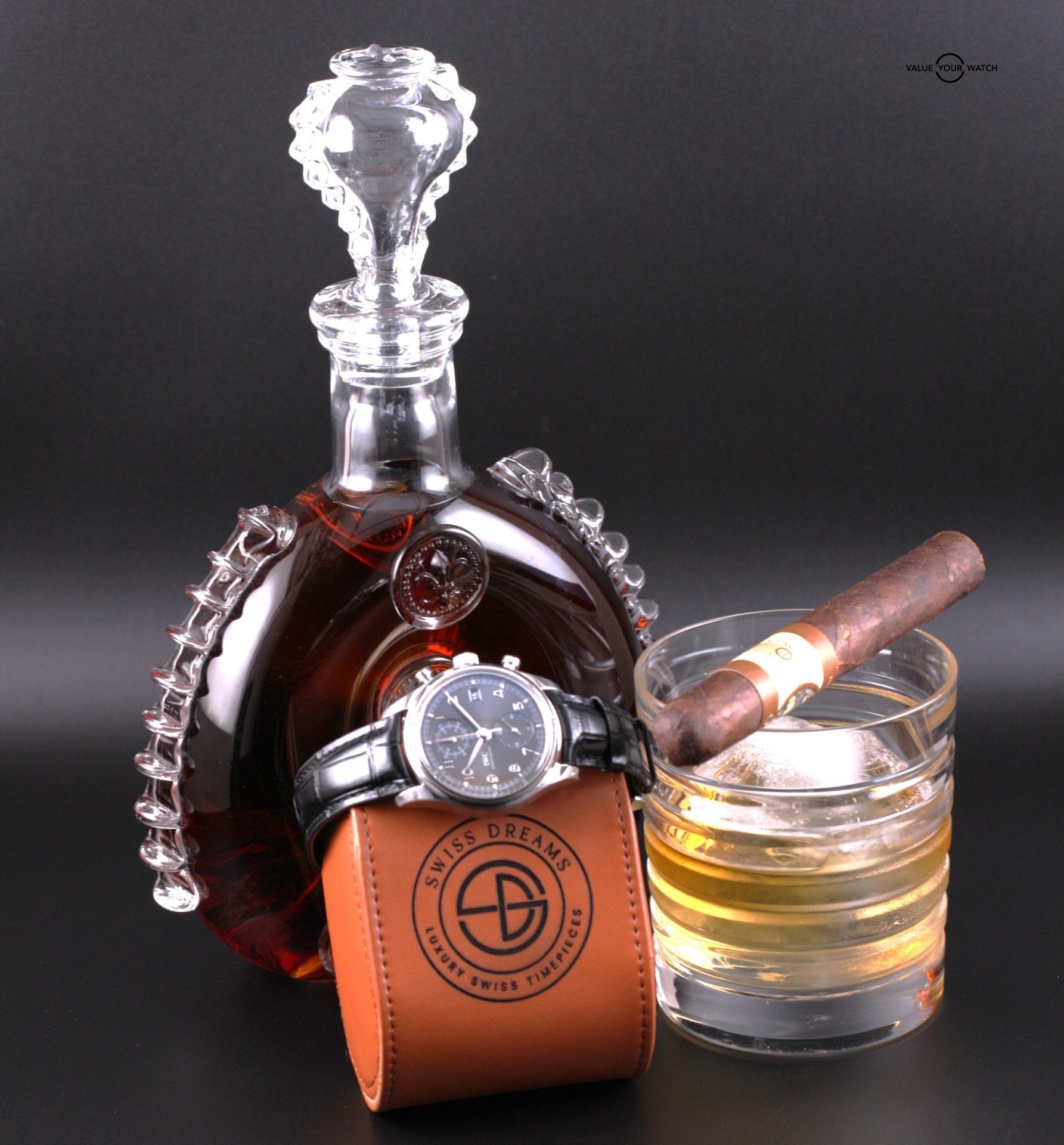 This timepiece is presented in very good, preowned condition. It comes as a FULL SET; open papers. Also comes with an aftermarket high quality alligator leather band. Double boxed.