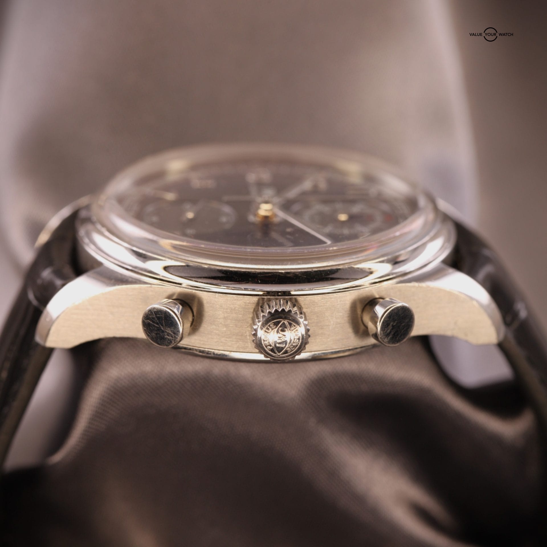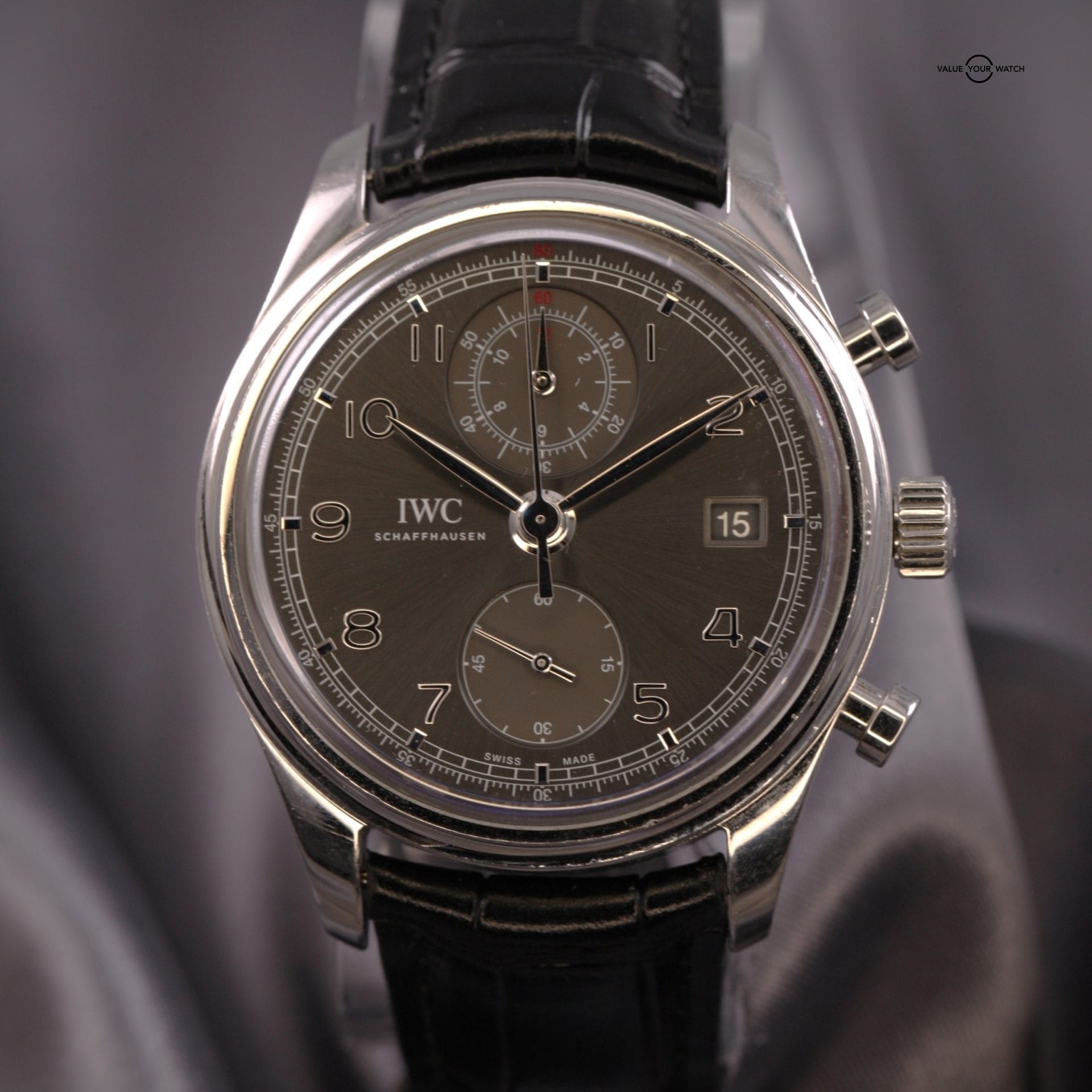 Own a timeless classic with this IWC Portugieser Chronograph. Featuring a sophisticated grey dial, this iconic timepiece exudes elegance and style. With its precise chronograph function and renowned craftsmanship, it’s a must-have for any watch enthusiast. .