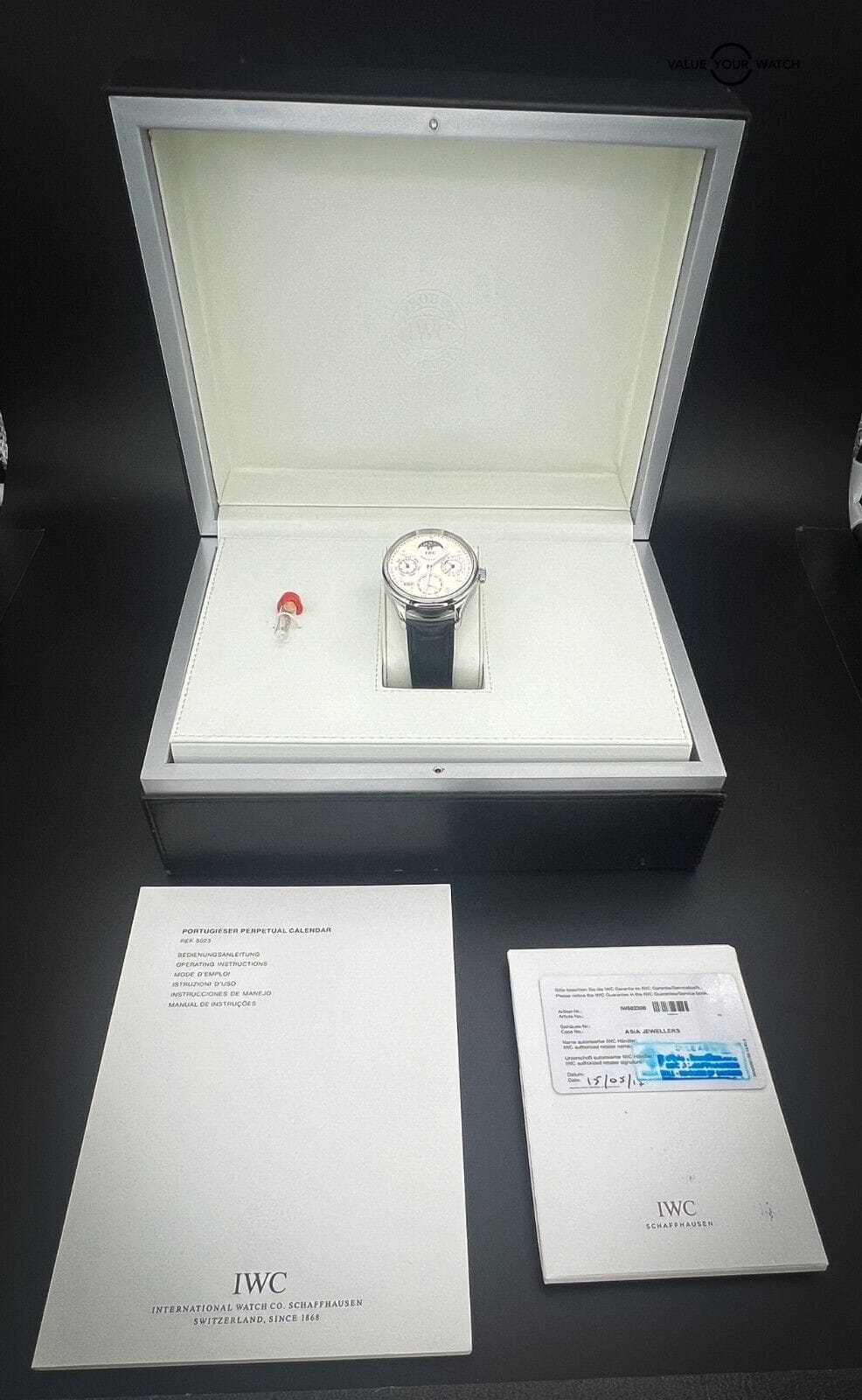 Additionally, there is a replacement date wheel included, So be sure to set an appointment with your IWC-authorized horologist in 175 years to have that year date wheel changed out.
