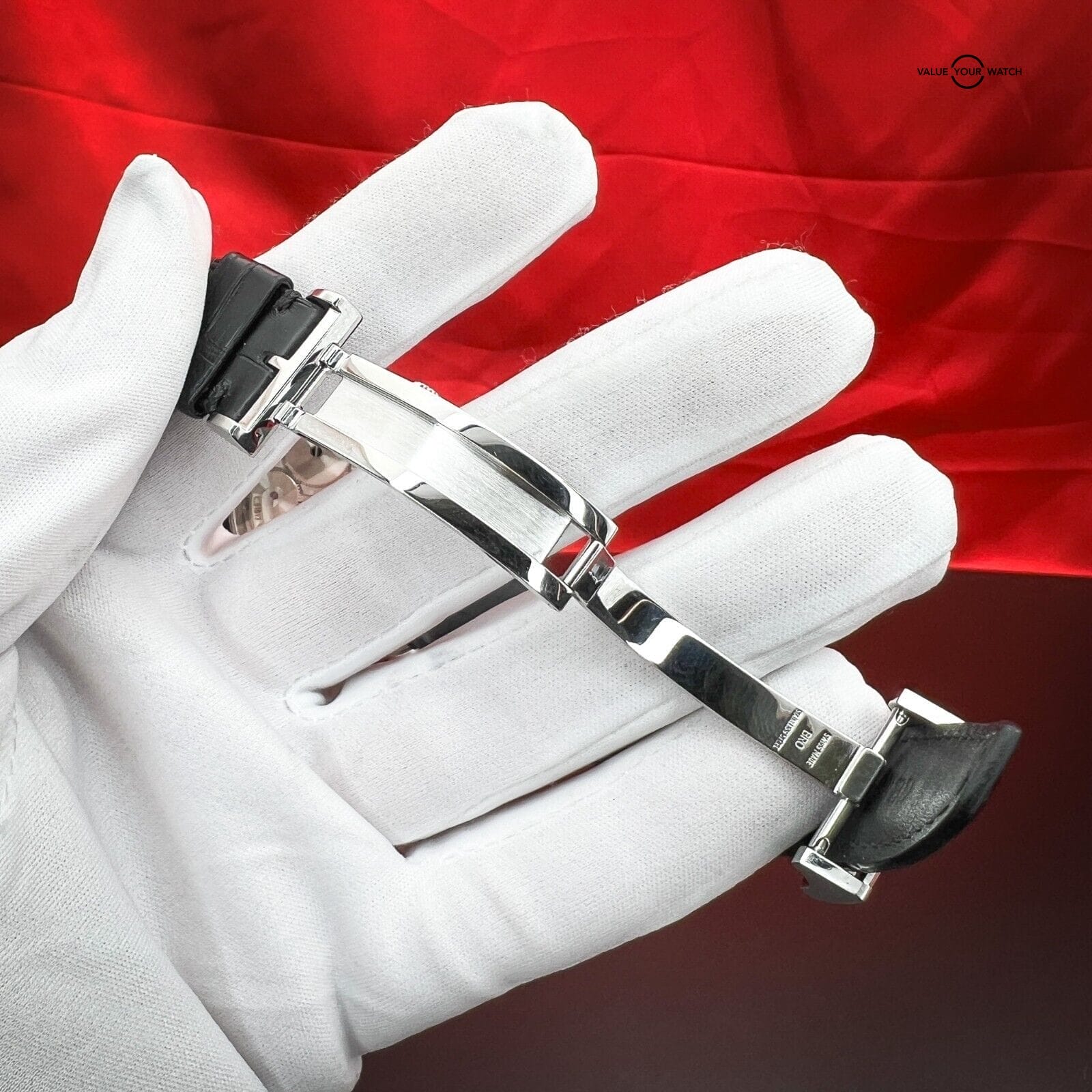 Introducing the first IWC Portuguese Perpetual Calendar IW502308 offered in stainless steel. As a caliber 51613 timepiece, there are numerous eye-catching features on this 1/500-made watch. The subdial layout at 3, 6, and 9 indicates the date, month, and day. The power reserve indicator is placed into the date subdial and the running seconds hand is tucked into the day subdial – both furnished with red hands for pops of color. At 7:30 sits the four-digit year indicator. And last but certainly not least, the elegant moon phase subdial is placed at 12 o’clock. Protecting the pristine silver-plated dial is a convex scratch-resistant sapphire crystal. The case back is also furnished with a sapphire crystal for a view of the awesome movement inside the watch, intricately finished with a Côtes de Genève motif. This timepiece is fitted with a new black alligator leather strap equipped with a stainless steel deployant clasp. There is a spare worn brown alligator leather strap included.