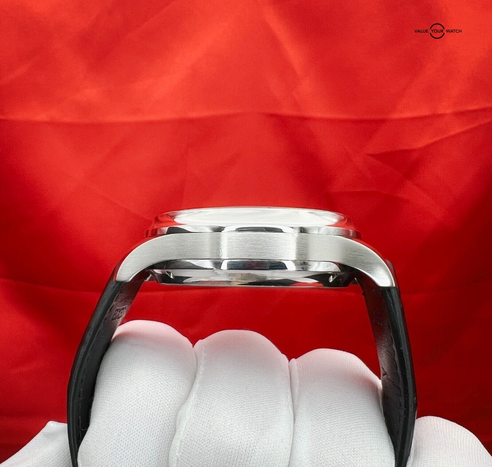 Watch is beautiful and in excellent+ condition. The watch has a new (unworn) black alligator leather strap. The brushed side of the case has some very, very small imperfections in the finish but are nearly impossible to see with the naked eye. We did not try to remove these as it would change the entire profile and beauty of the case and they are very difficult to even see. The box is original and has some dings and storage wear. Manual and warranty card are also included. All photos are taken by our in-house photographer of the actual item and is the best visual description of the condition we can provide. We do not use any stock photos. Please refer to the photos for condition. If you need additional photos or have any questions, please feel free to contact us.
