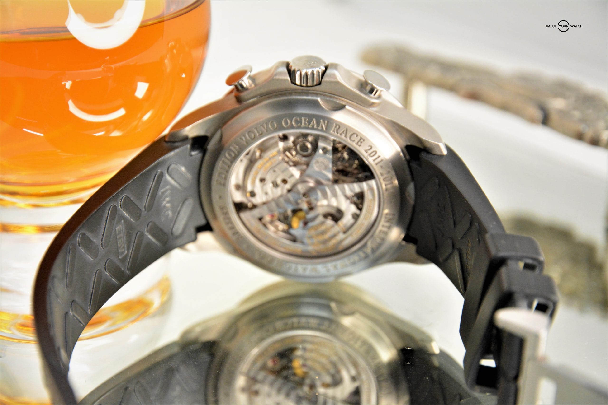 The rear of the watch has “Volvo Ocean Race 2011-2012” engraved on the back. IWC is the officially timekeeper for the boat race events. The titanium case and carbon fiber dial look good together and feel fitting with the high-end racing boats. Oddly enough the majority of these watches will go on the wrists of non-sailors who admire their work. The Titanium case is light and comfortable to wear, but yet very durable.