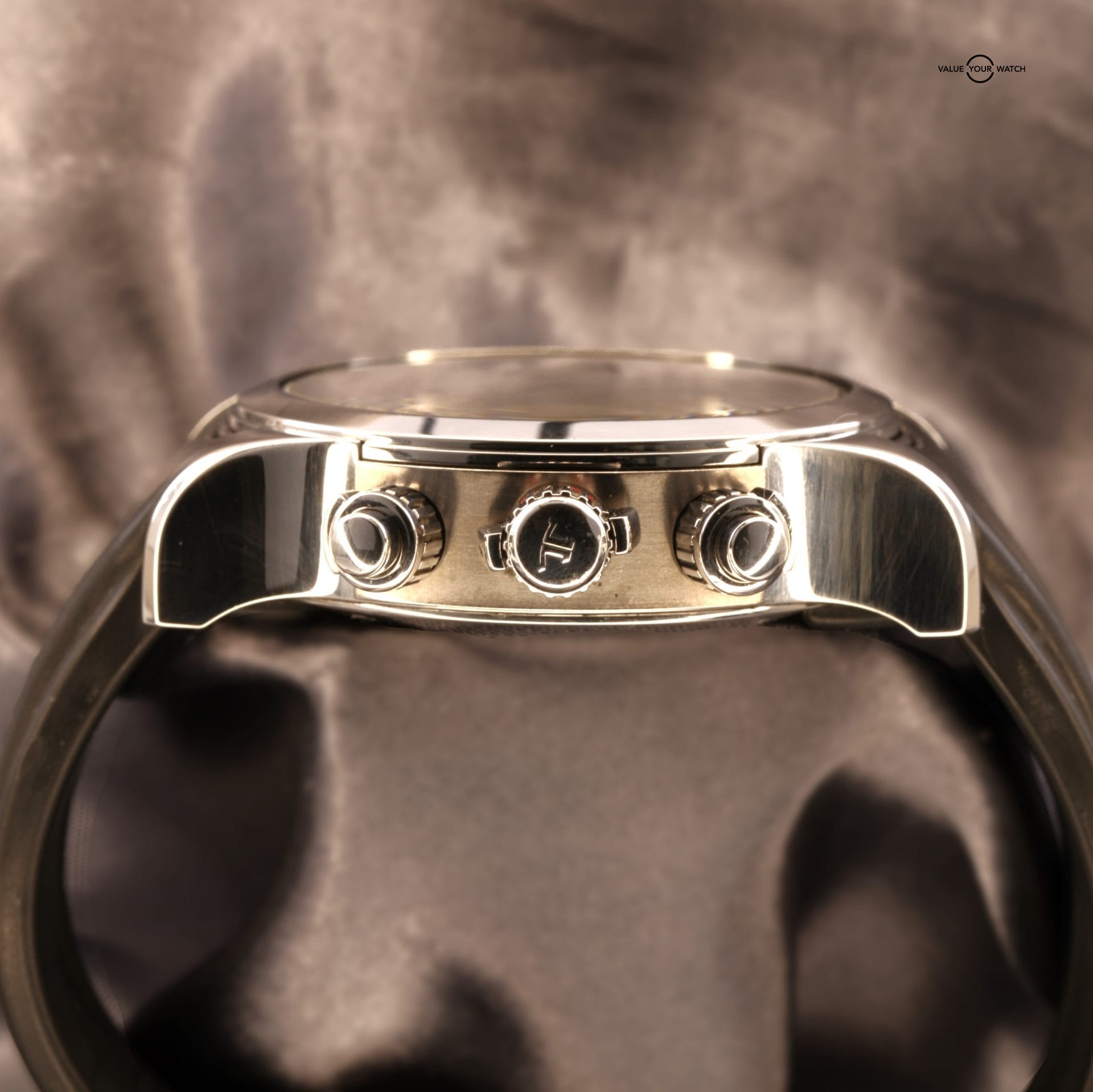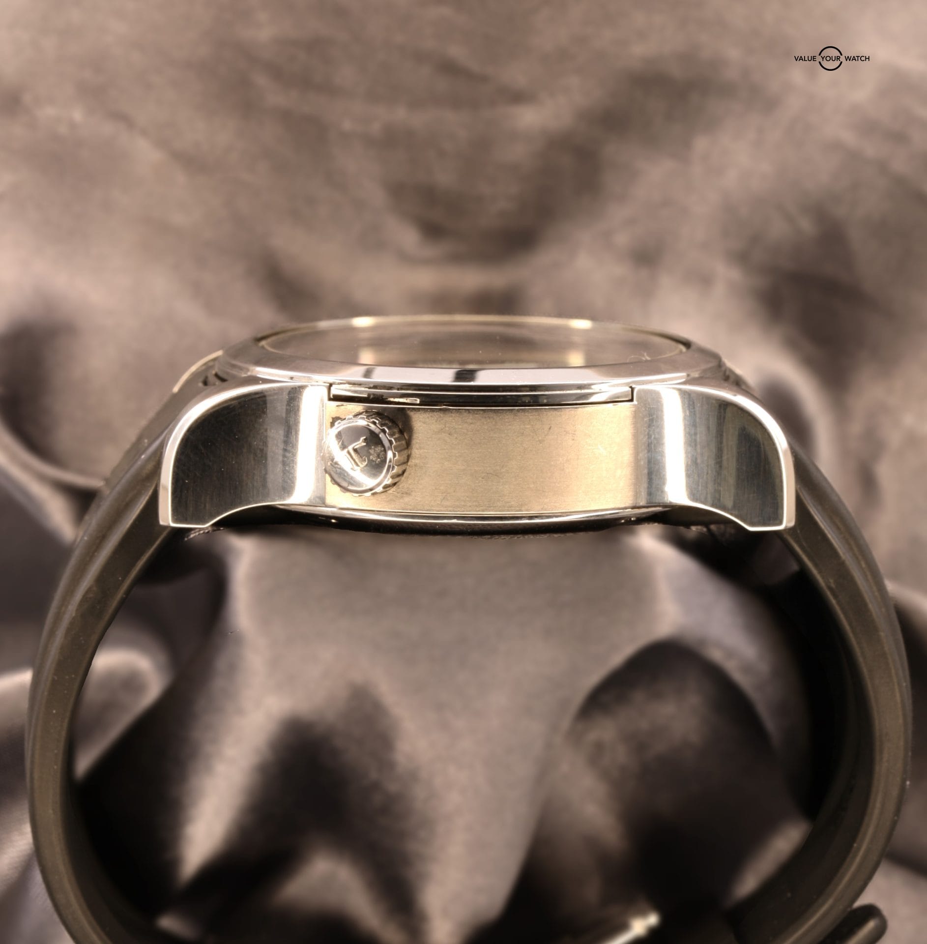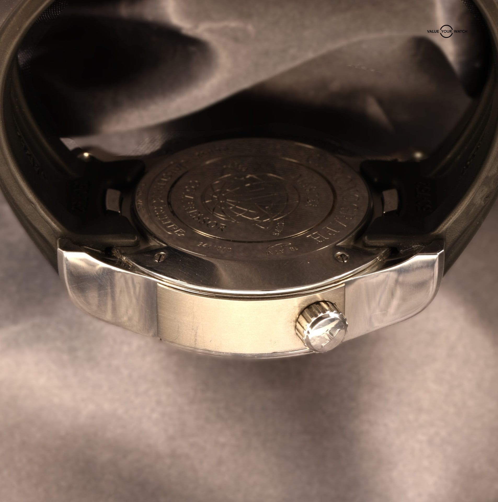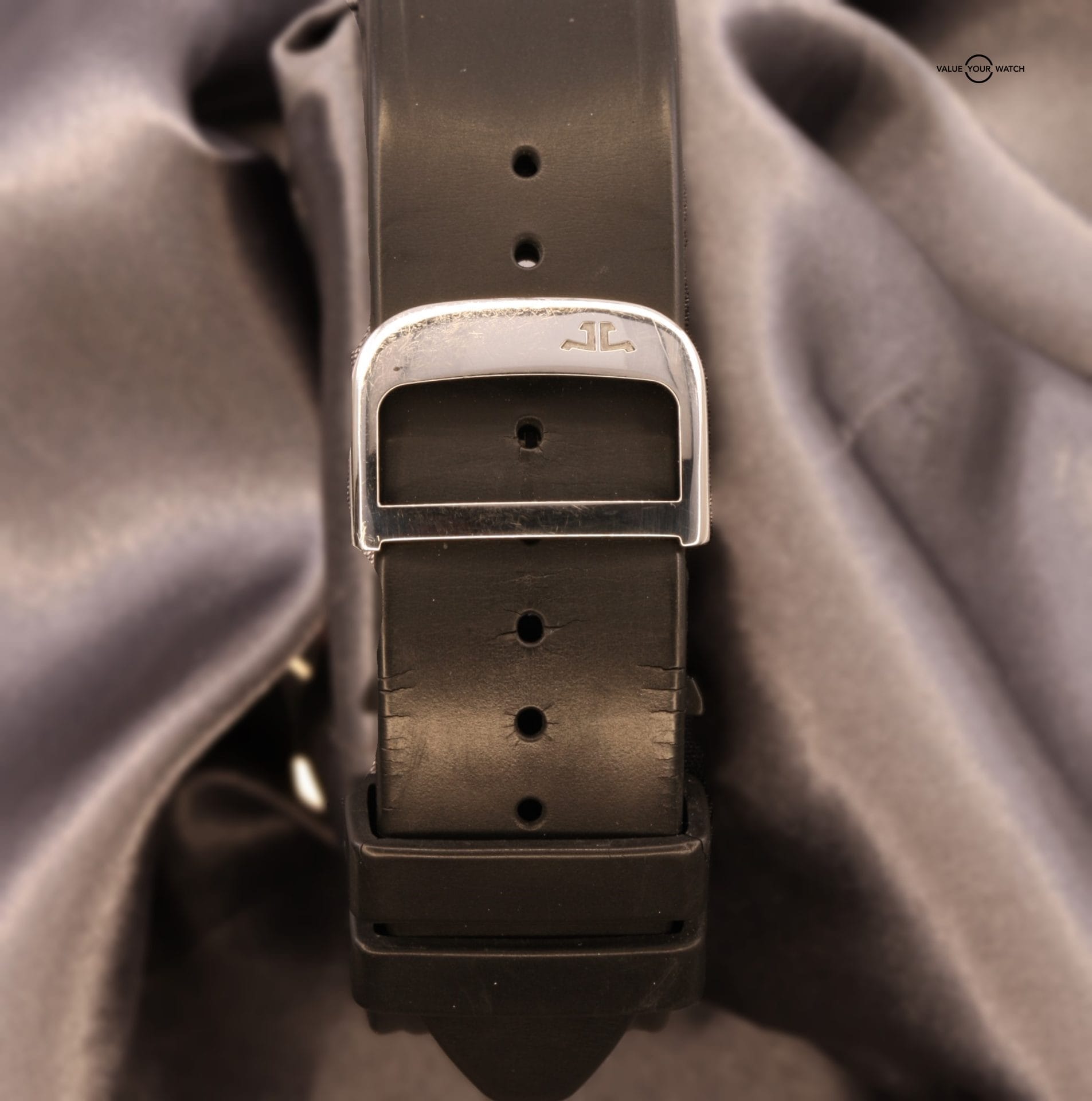 This timepiece is presented in very good, preowned condition. It comes with double boxed with manuals and two OEM JL straps (One black alligator strap and one black rubber strap). Rubber strap has signs of wear and but has plenty of life left. Leather strap is in good condition with plenty of life.