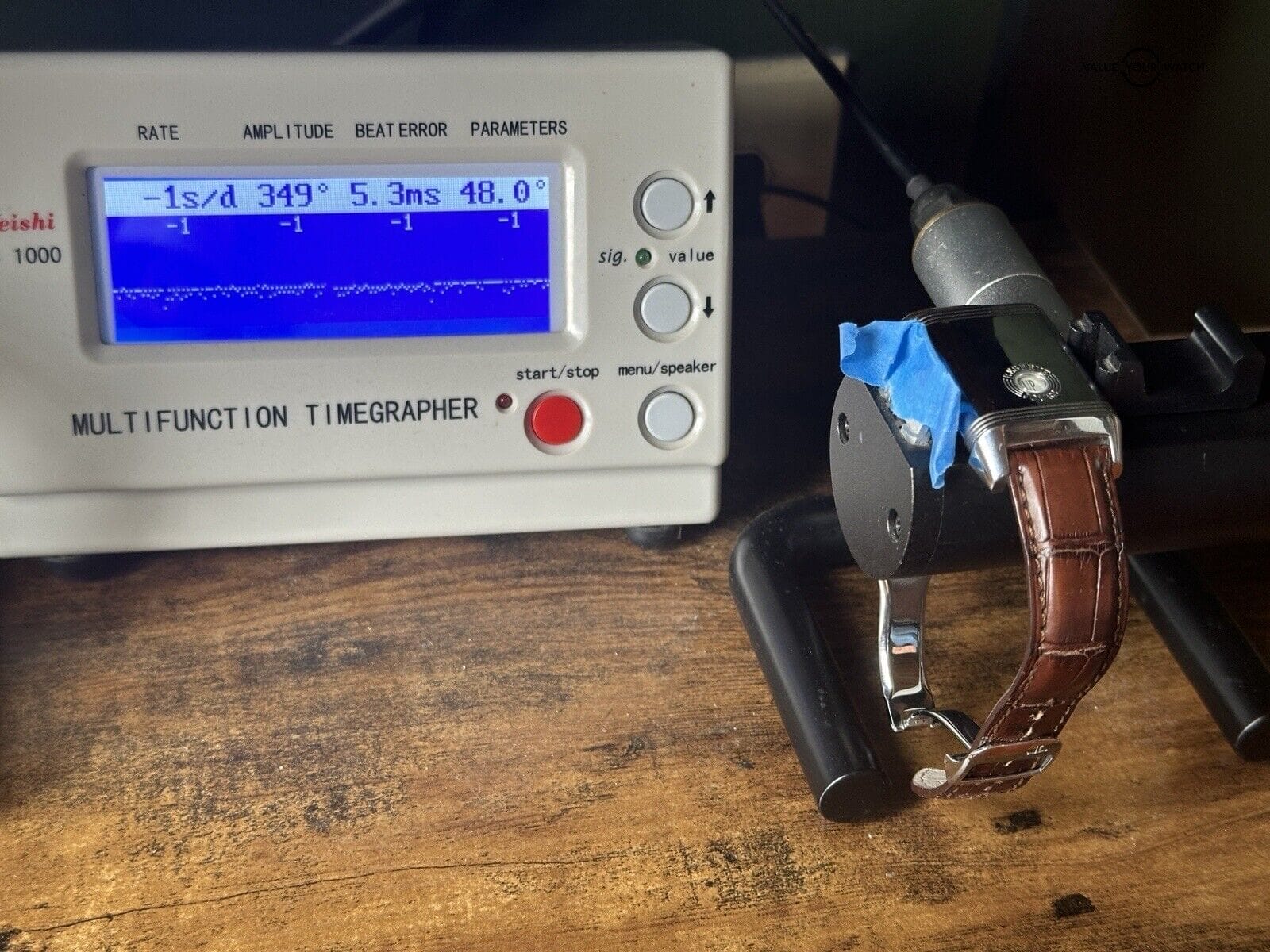 – Watch has minor scuffs/scratches but nothing that will not come out with a simple polish. The crystals are clean and movement test great! Strap is in good shape. See photos