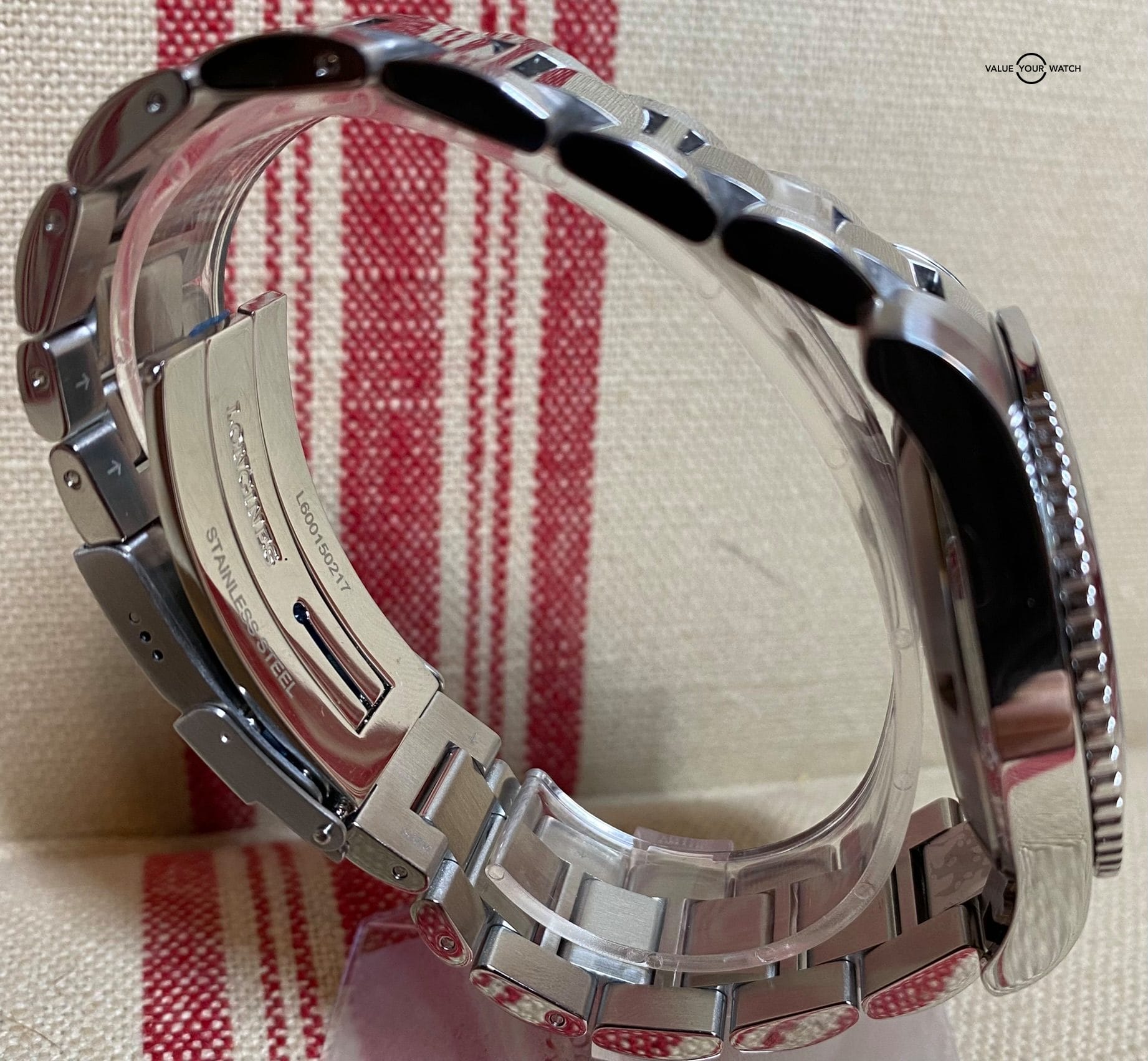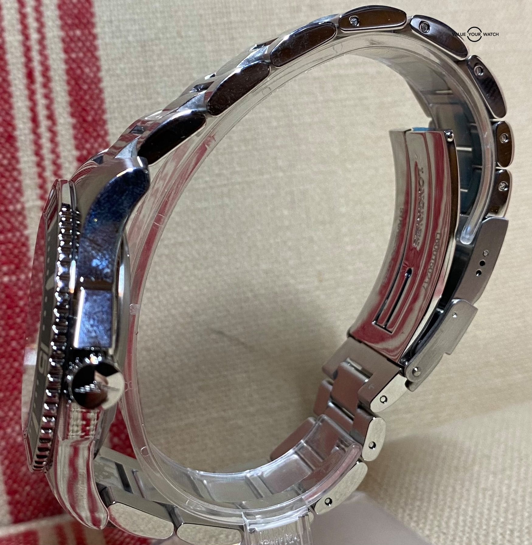 This watch compares and competes well for a position on the list of the finest Swiss dive watches. It has fine linear brushing on the case showing the highest quality finish on the clean, professionally milled case. The dial numbers, indices, and hands show a well-designed lume and enhance Longines always a higher level of finish. The 25,200-beat rate compares with the Omega co-axial calibers and gives the watch a 72-hour power reserve and a smooth sweep action of the second hand. Overall, Longines has created a high-quality dive watch that looks great on the wrist in any environment.