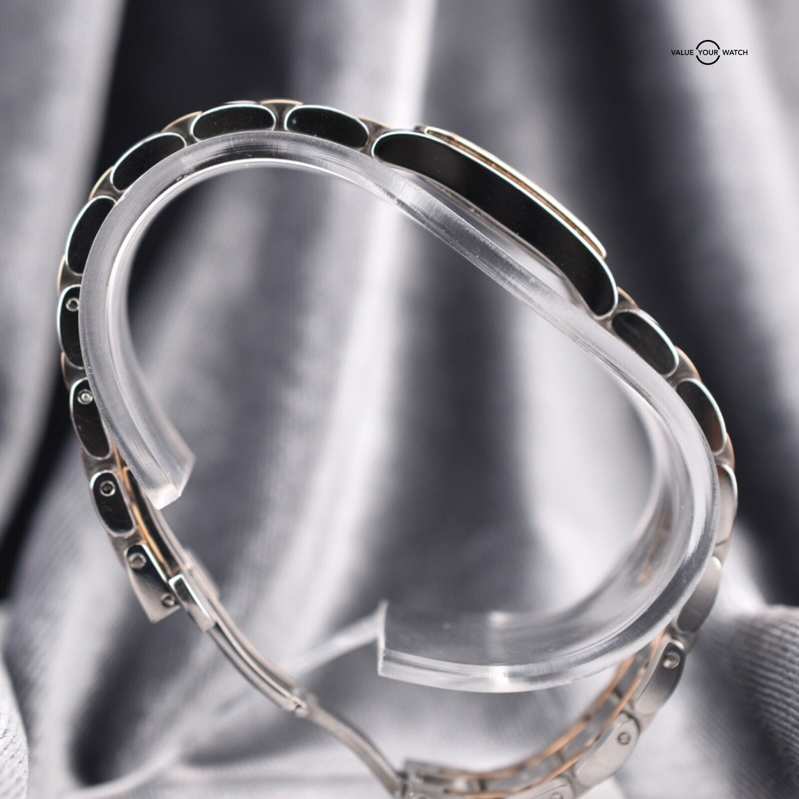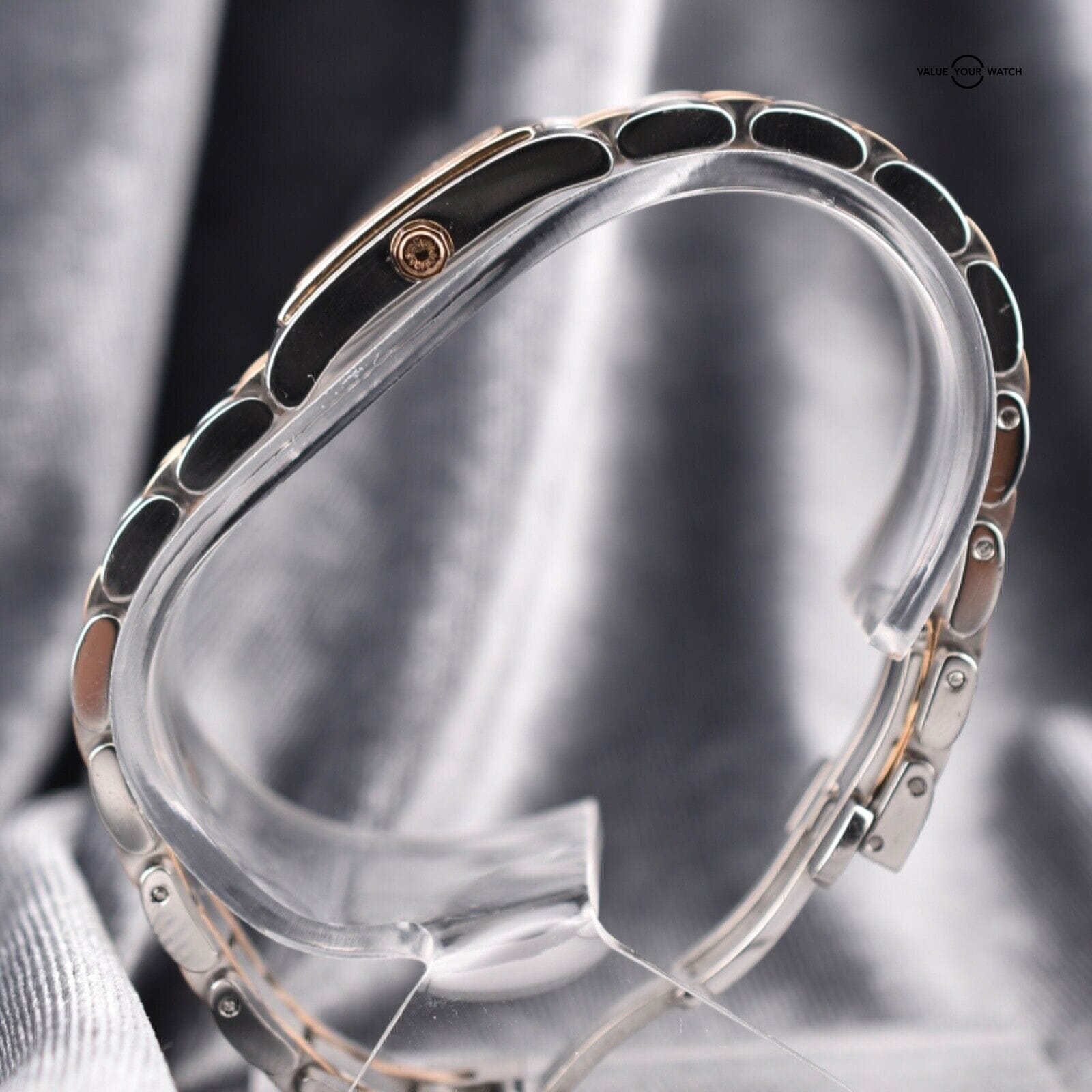 Bracelet: It is fitted with a sophisticated stainless steel two-toned bracelet, echoing the watch’s sleek design. The bracelet features a secure deployment clasp for ease of use, ensuring that the watch remains an untroubled companion throughout your day.