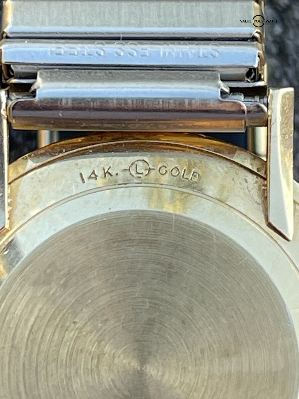 Case and caseback is solid gold. It does have dings and scratches.