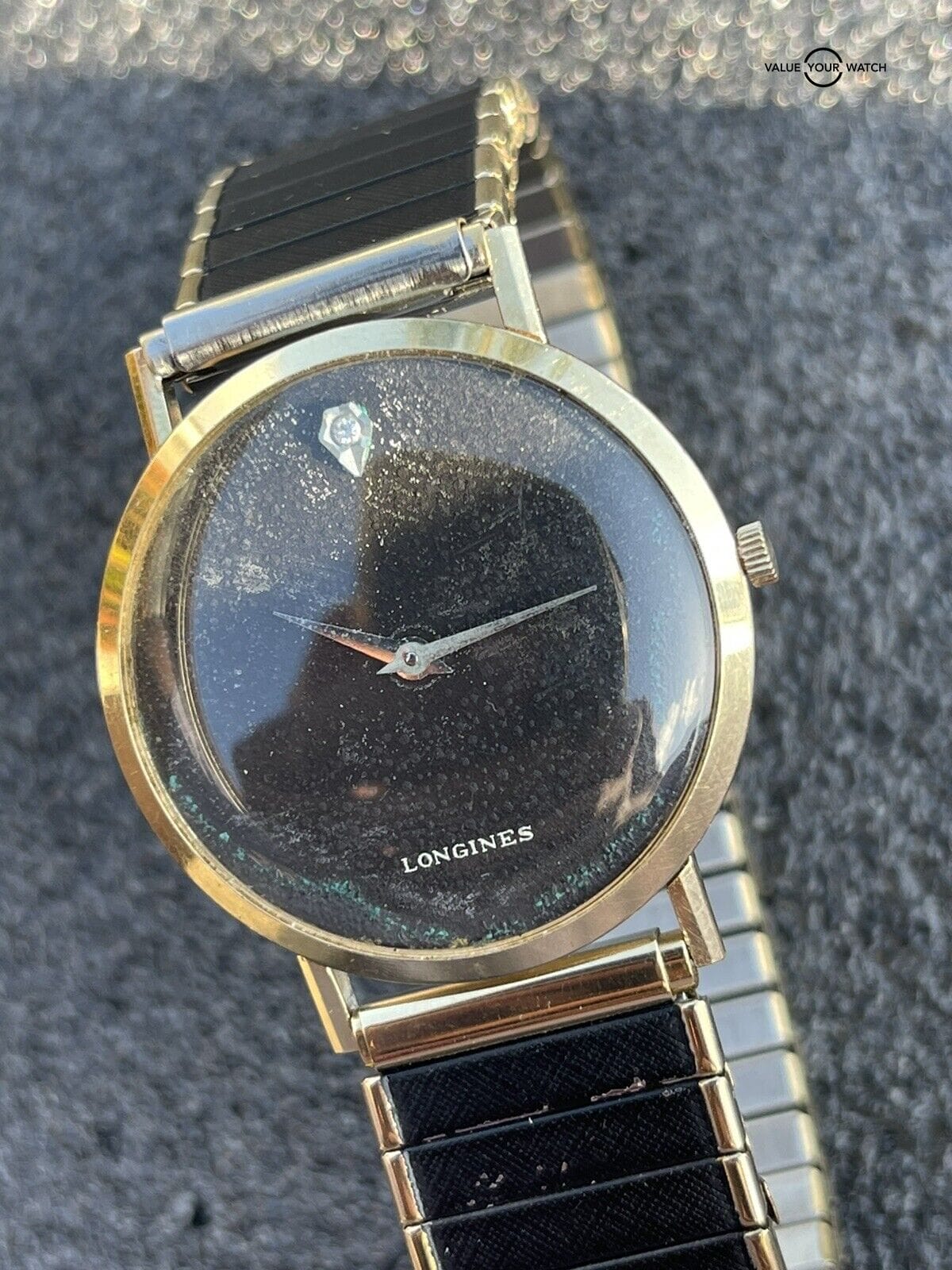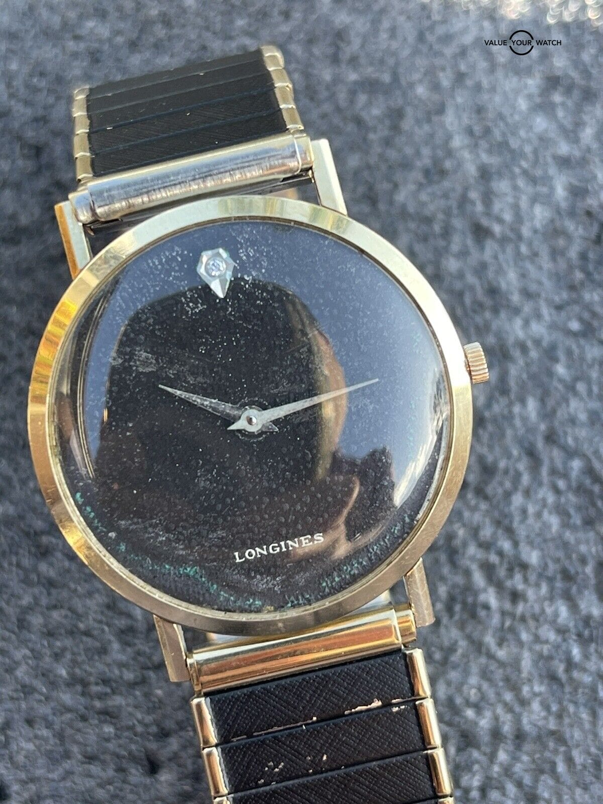 Specification: Vintage Longines Ultra-Thin 14k Solid Gold Black Dial Diamond Watch Runs Estate