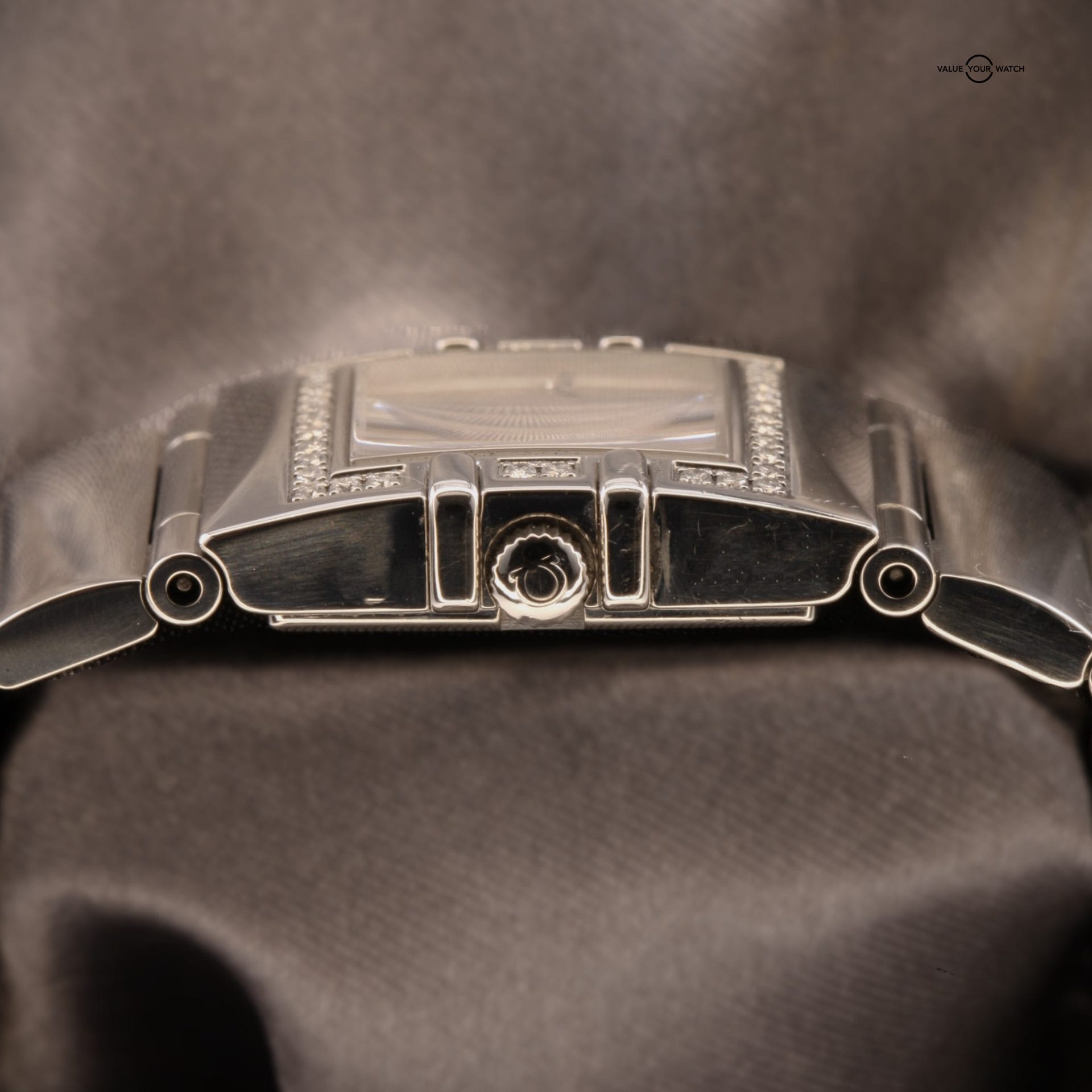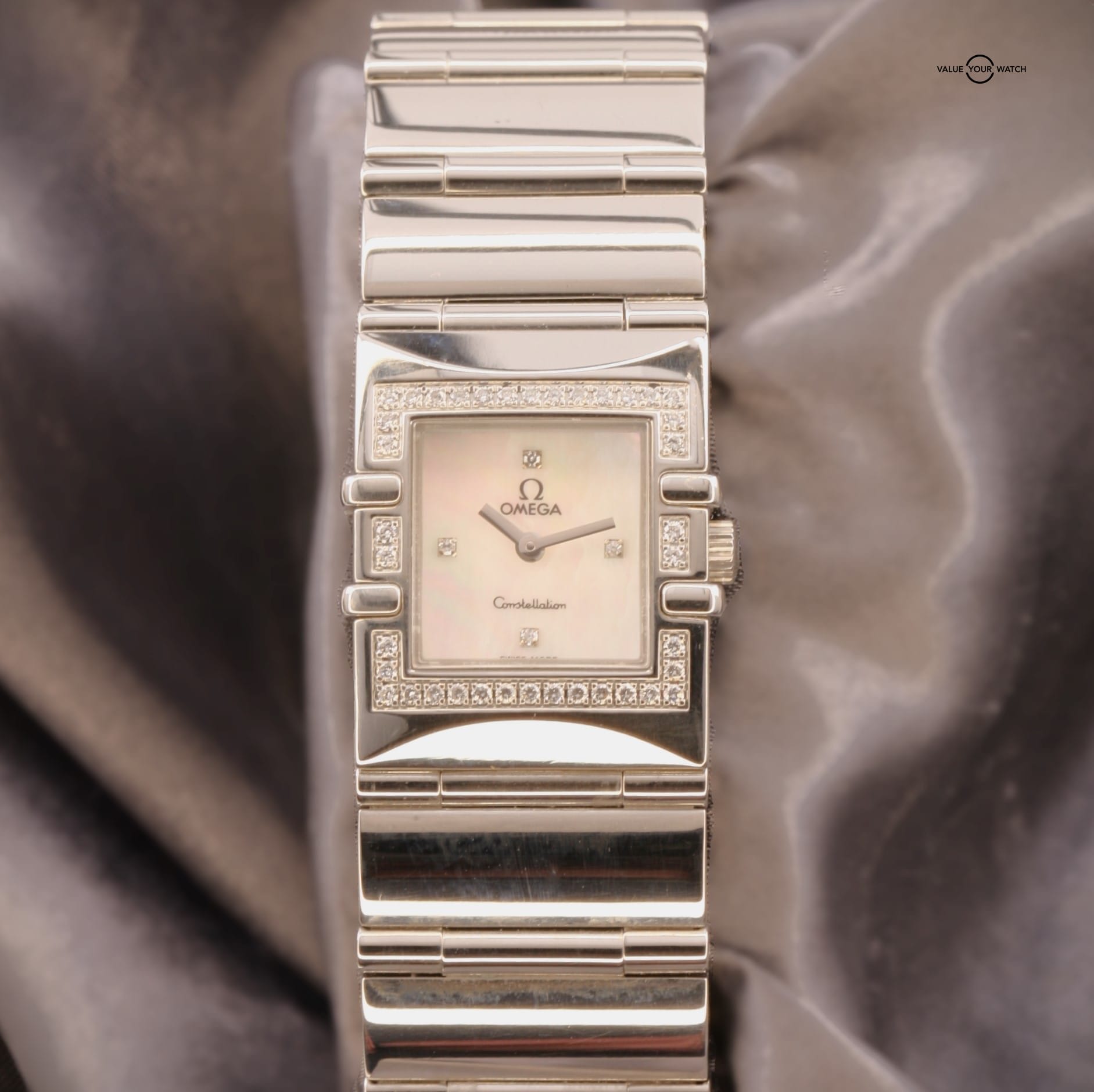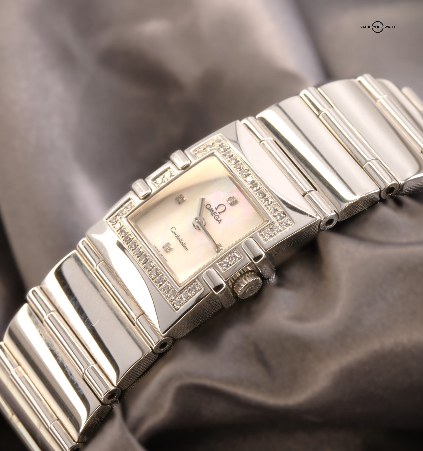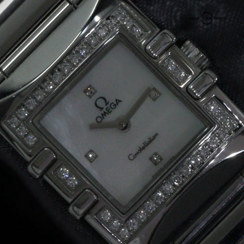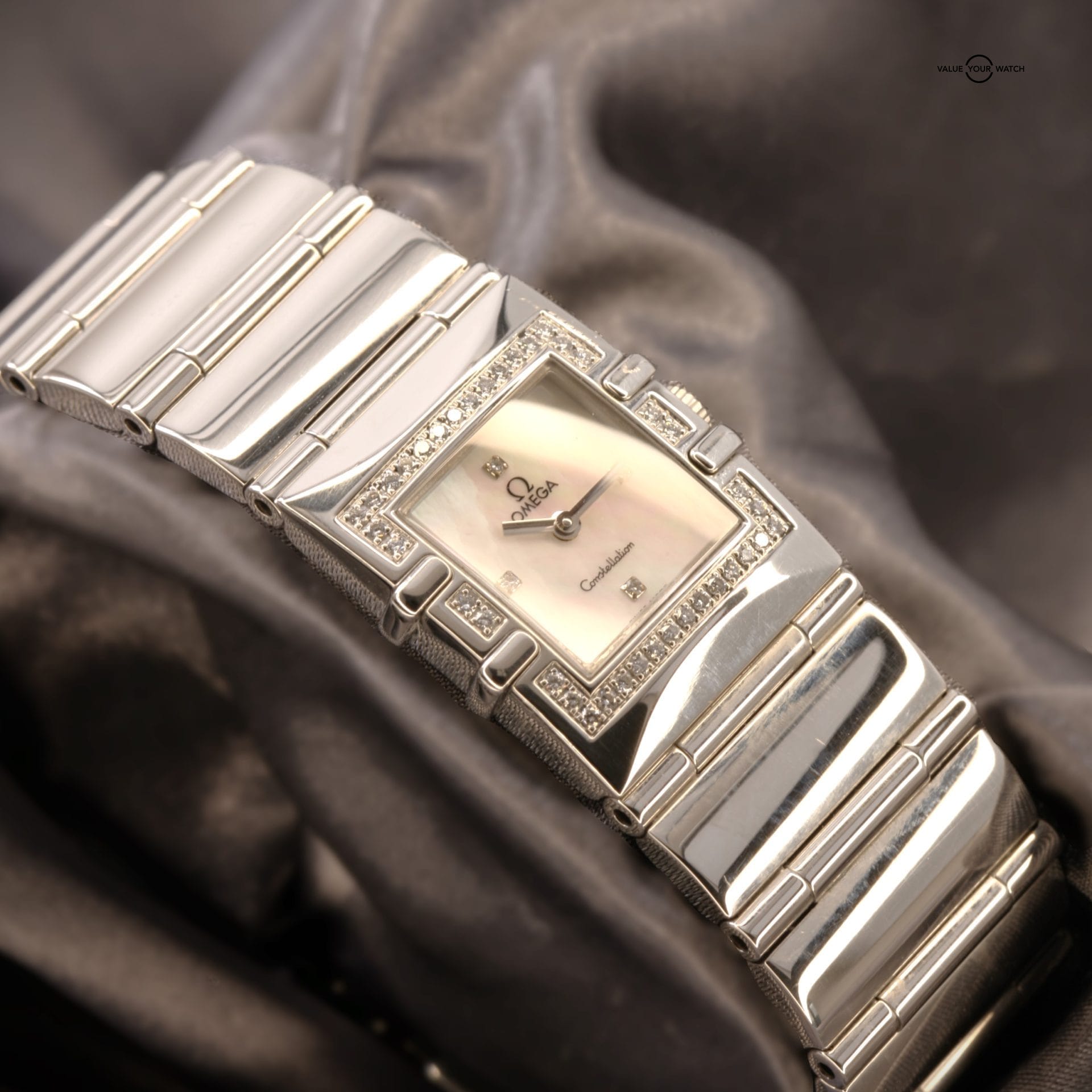 Introducing this beautiful Constellation Quadra featuring a stainless steel case and gorgeous Mother-of Pearl Dial. It is distinguished by its bezel adorned with VVS quality diamonds. The dial showcases silver-tone hands and diamond hour markers at 3, 6, 9, and 12 o’clock positions. An epitome of elegance—it’s a true embodiment of sophistication.