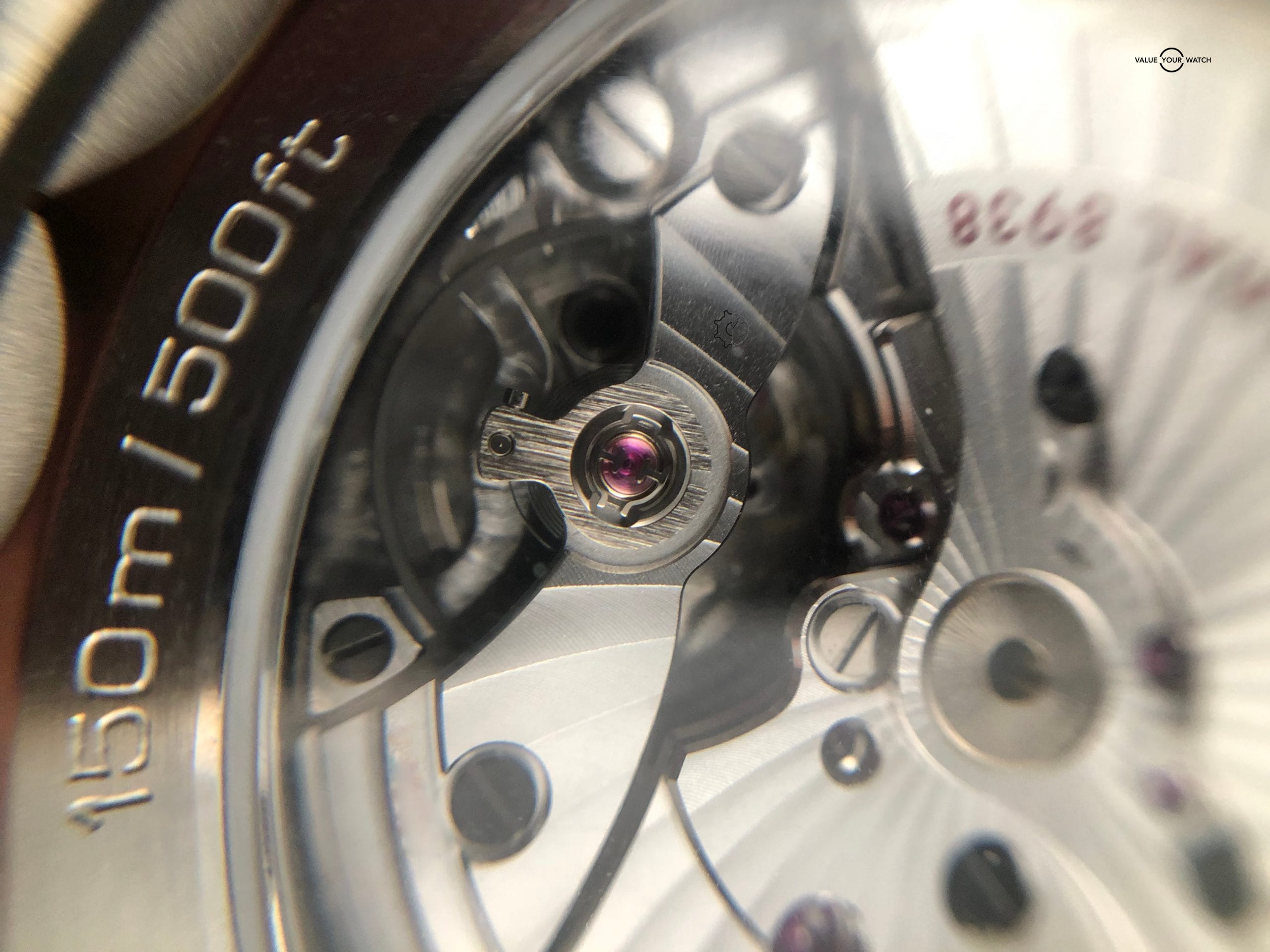 The large flawless rear sapphire crystal gives an unobstructed view of the brilliant & beautifully finished Omega 9300 movement that powers this beast of a timepiece.