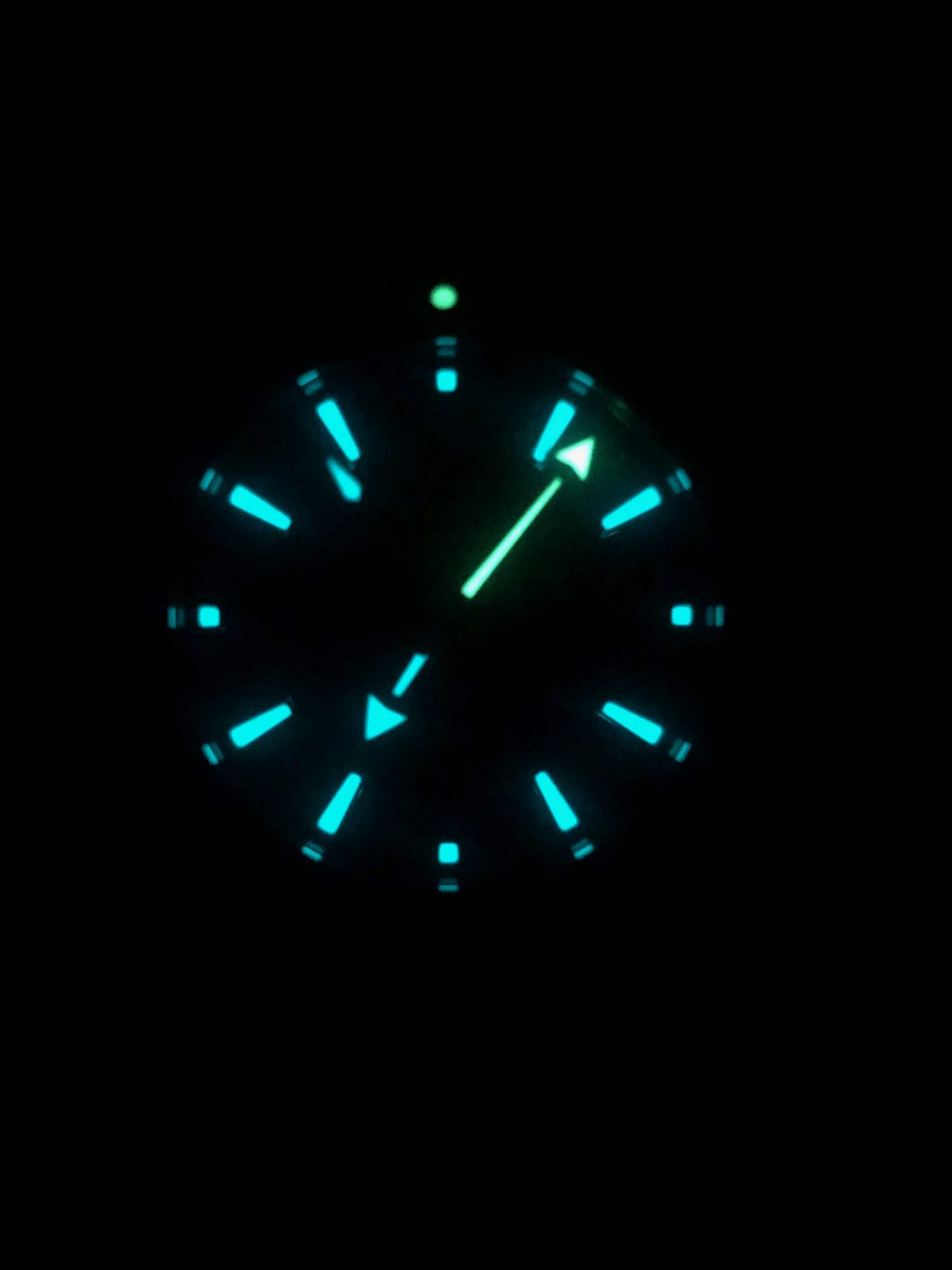 This watch has a beautiful black dial with applied numbers at the 6,9,& 12 o’clock positions.The ceramic bezel is flawless. The case is in exceptional cosmetic condition, there are only very minor blemishes from use. The front sapphire crystal is clear & free of scratches. The exquisitely machined 8500 movement can be seen through the sapphire crystal exhibition caseback, which is also perfect.
