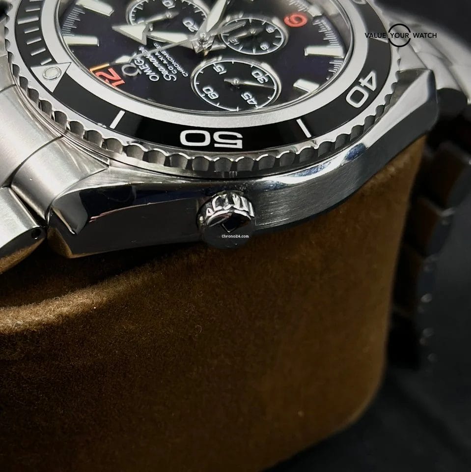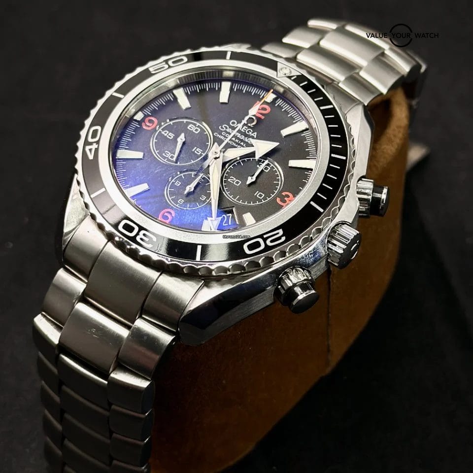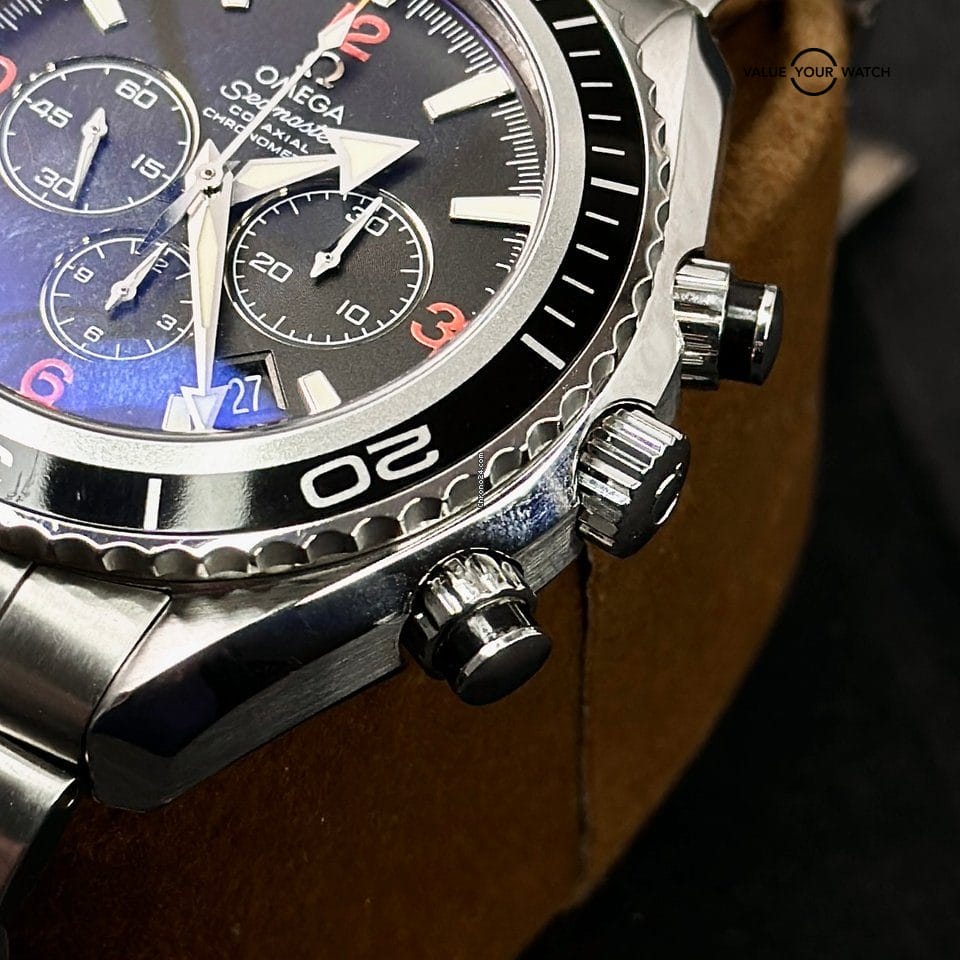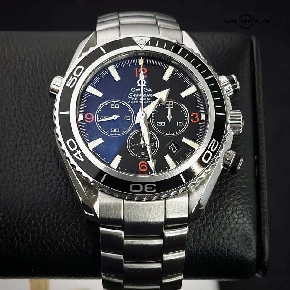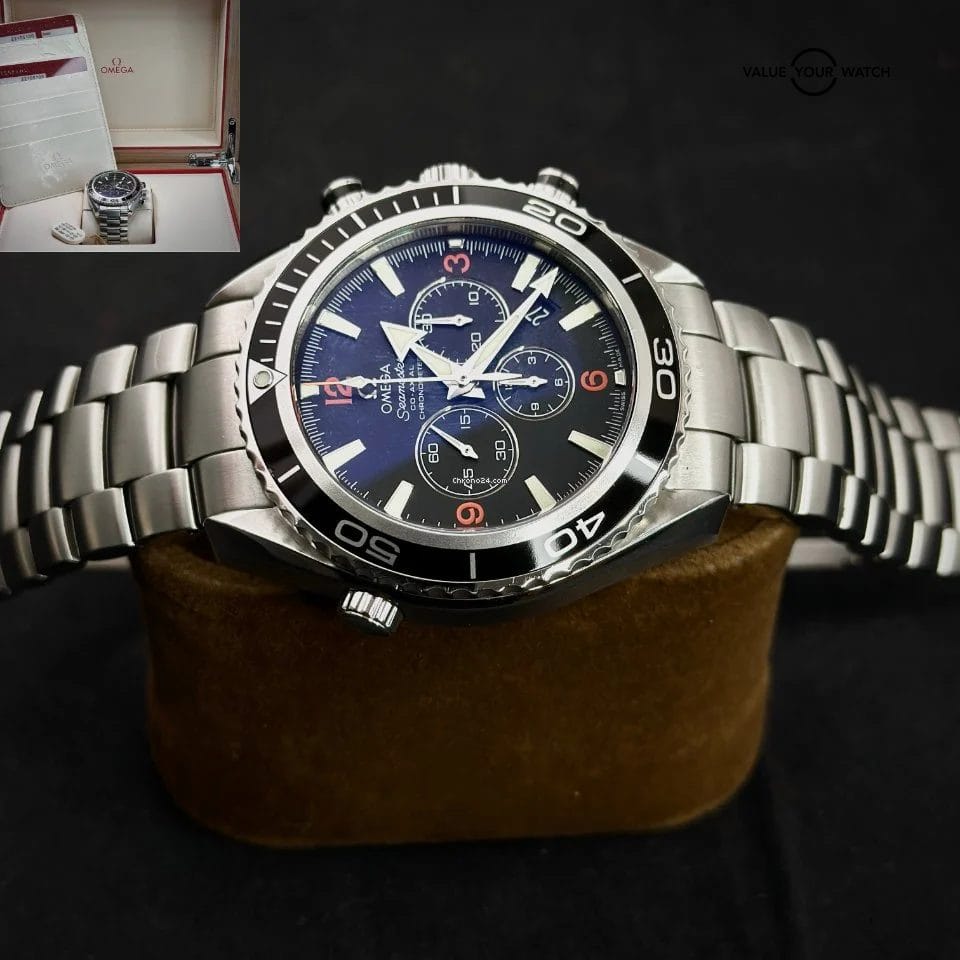 Specification: Omega Seamaster Planet Ocean Chronograph black dial box and papers