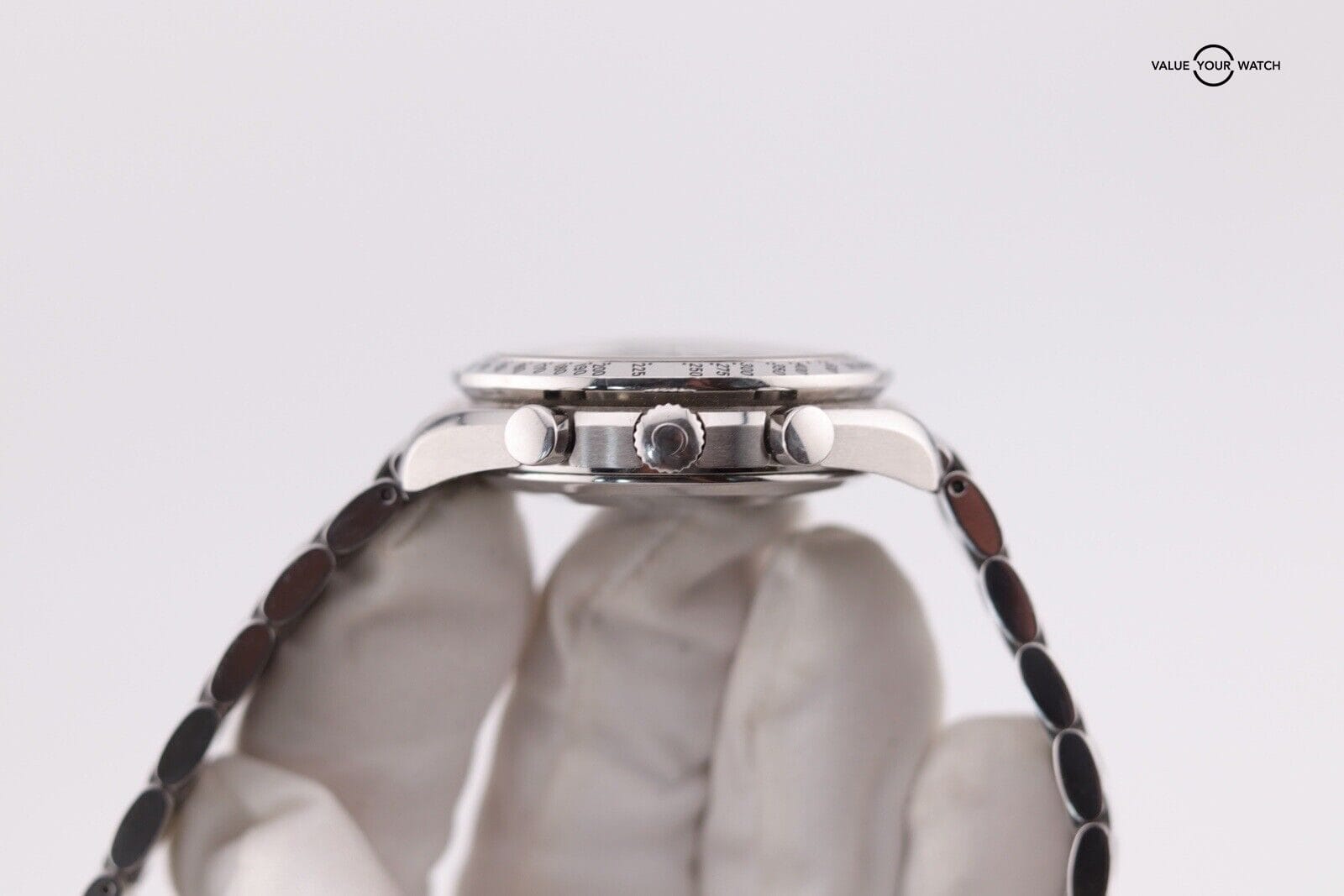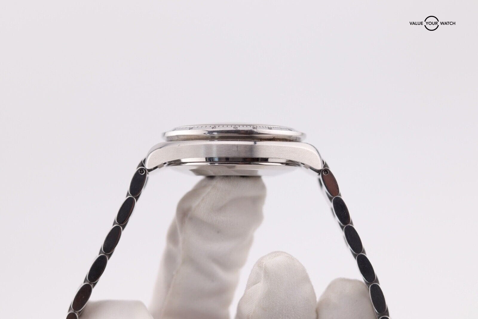 The watch comes with a stainless steel bracelet for durability and a comfortable fit. It also includes a date function at the 3 o’clock position, adding practicality to its elegant design. The Speedmaster 3513.50 can effortlessly transition from formal occasions to casual settings.