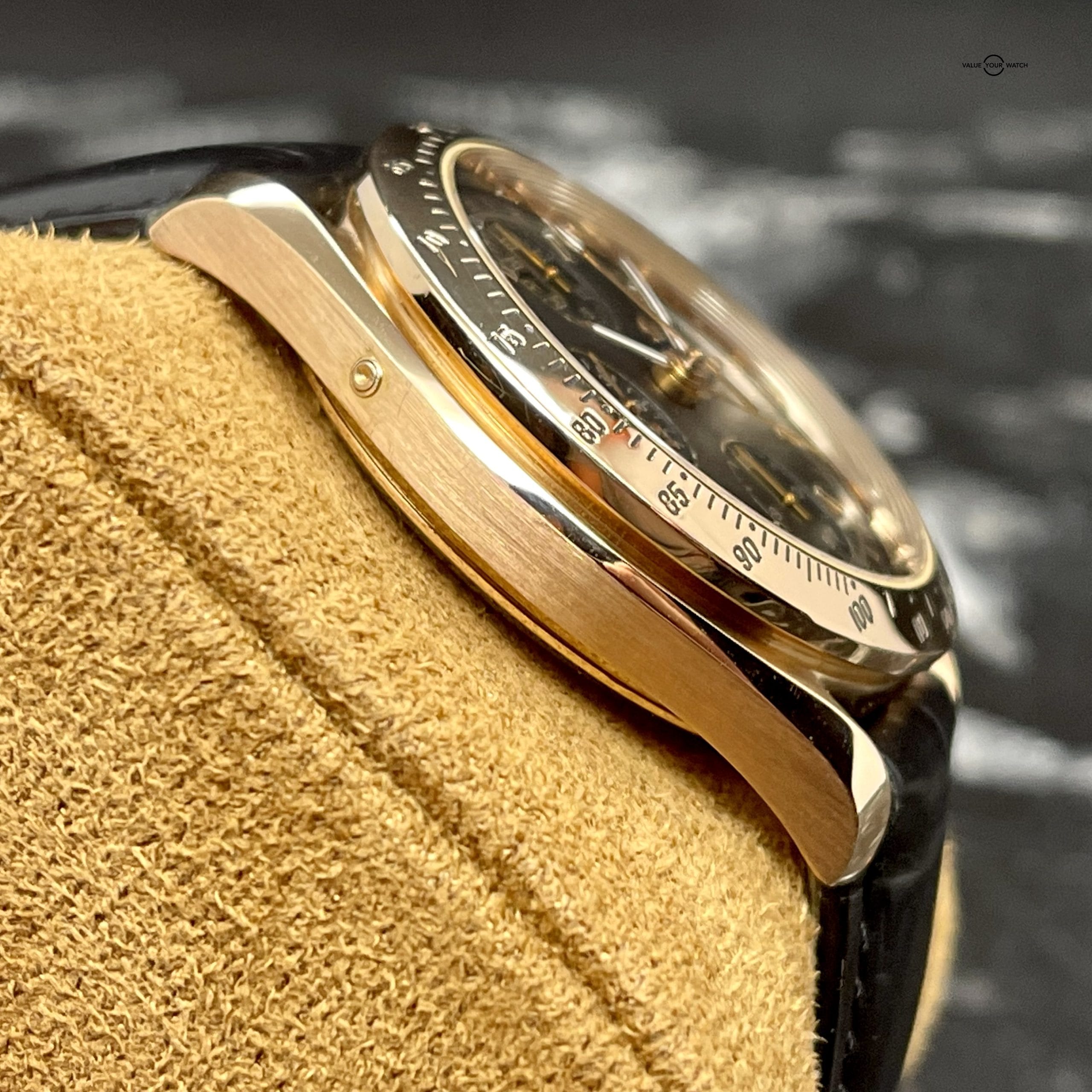 The gold case is in fantastic shape for its age with only minimal surface scratching and sharp lines, the aftermarket strap is in great condition with plenty of life left, the clasp has slight hairlines, and the crystal is flawless. Get this beautiful pre-owned timepiece before it’s gone!
