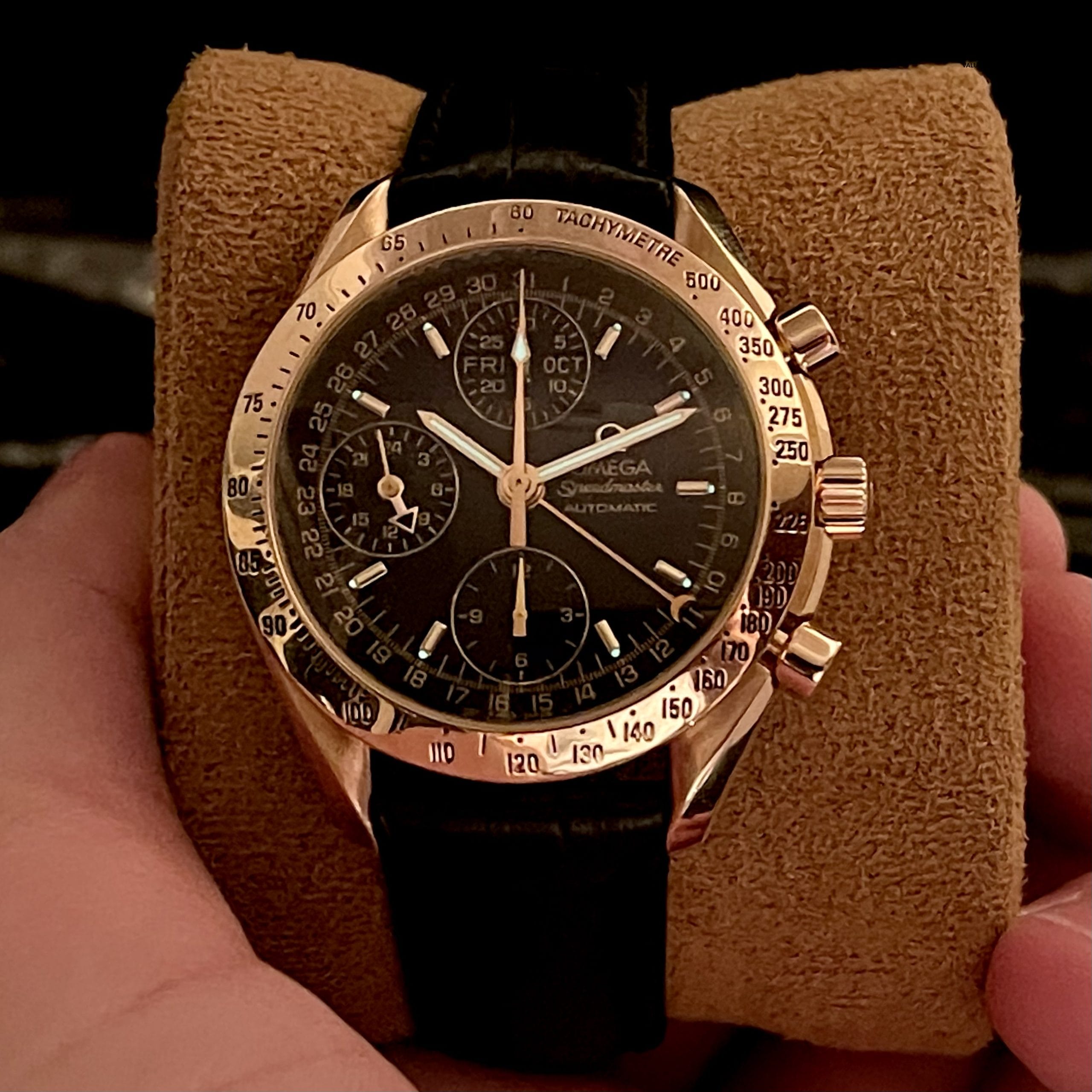 Up for sale I’ve got an Omega that really makes an entrance. It’s got an impressive heft from the solid gold case, but is small enough it won’t overwhelm a thinner wrist. This plus the solid gold deployment clasp makes for a piece that punches above its weight!