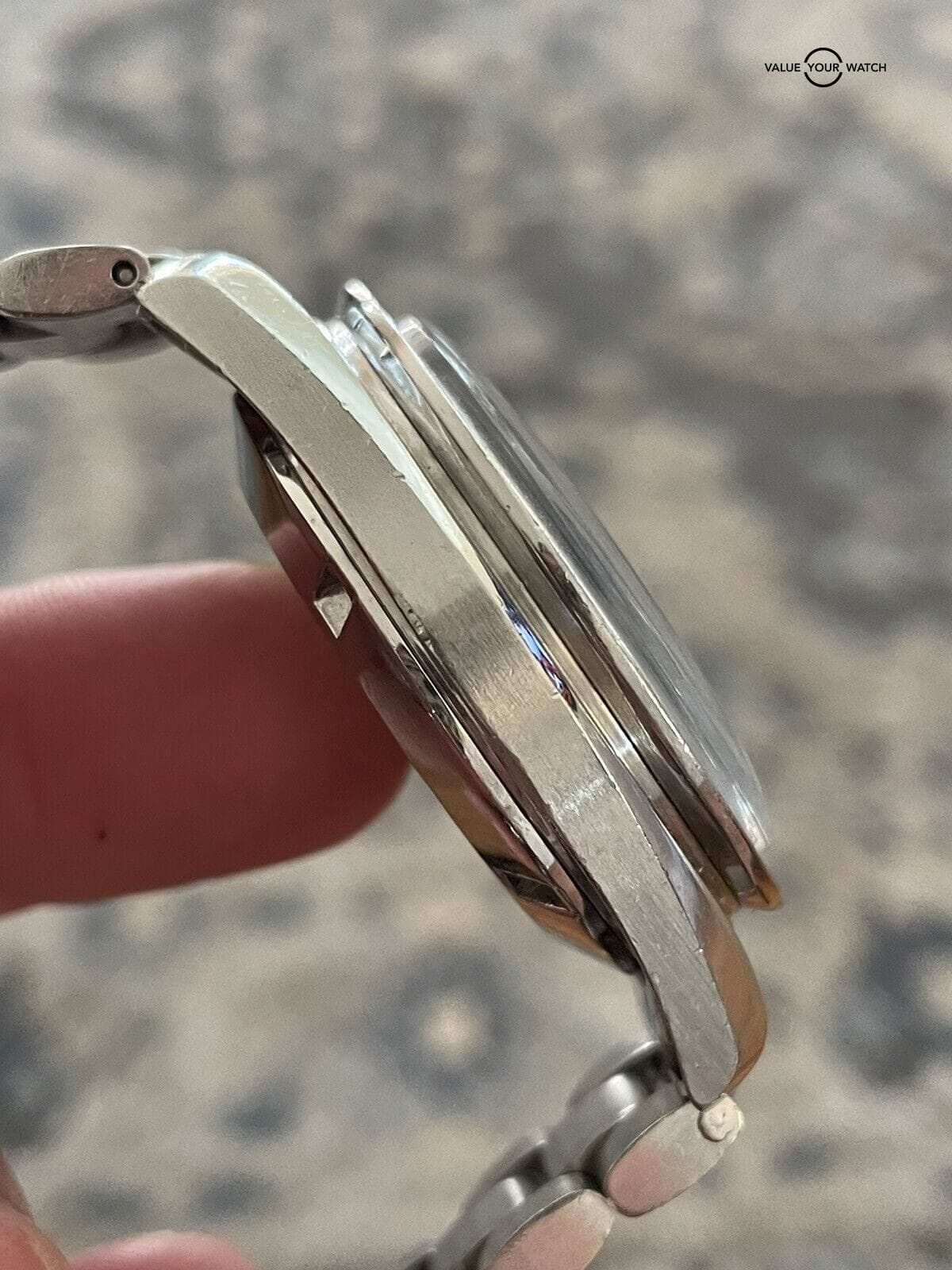 Watch only with scratches throughout (including the crystal). A polish would bring it back to life, but won’t make it perfect. Movement was just adjusted and runs well! See pics. |