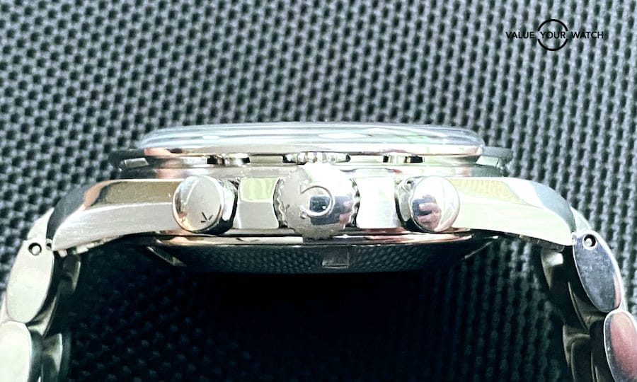 Up for sale is an excellent condition Omega Speedmaster Schumacher “Legend” with red panda dial. The watch comes with the original inner and outer boxes, operating instructions manual, warranty card (note: no longer under warranty), pictograms card, and chronometer certificate card. The watch and bracelet are both in excellent condition. Omega Ref. 3506.61