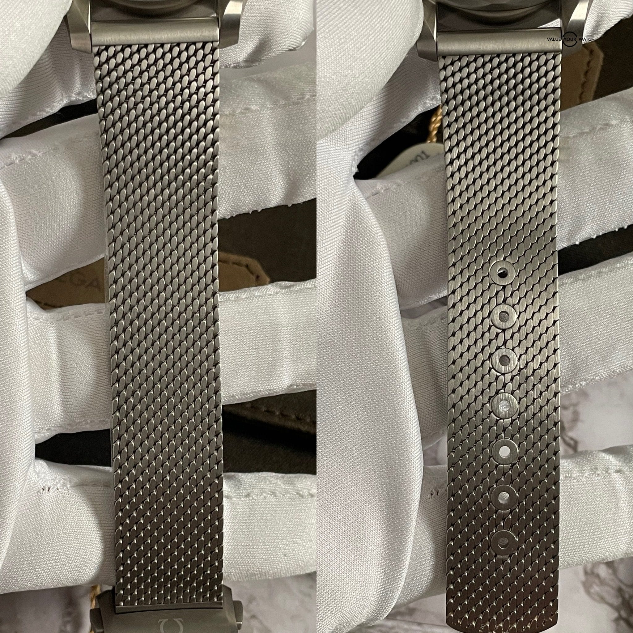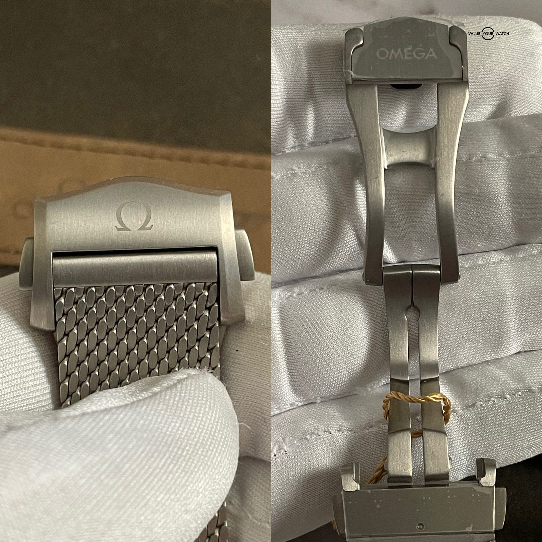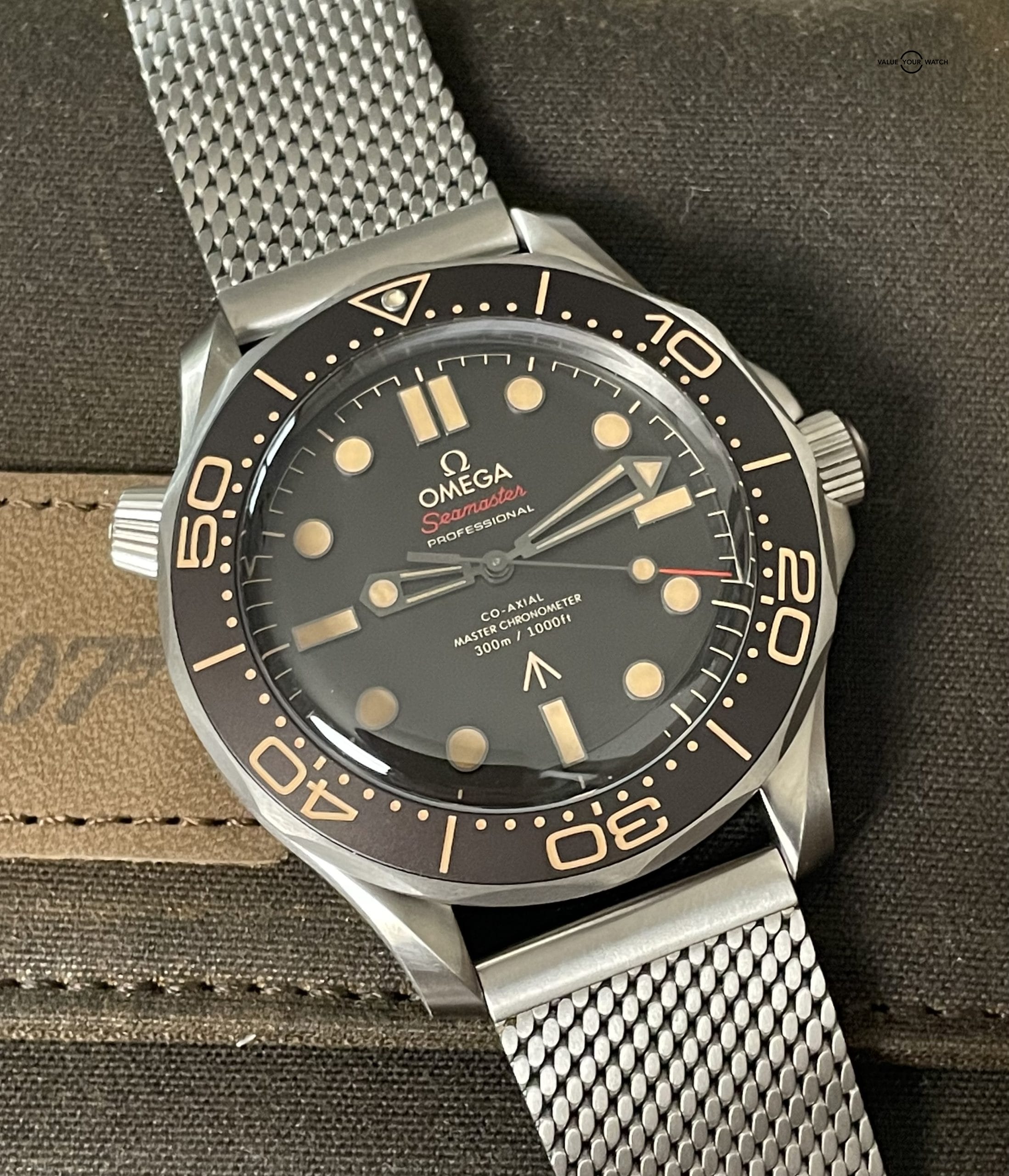 This is the hard to find 007 James Bond Edition for the new film “No Time to Die”. This is the full collectors set with everything, including the beautiful titanium case, mesh bracelet with fold-over deployant clasp and of course that incredible vintage inspired dial! Still housed with the Omega Master Chronometer movement like the rest of the modern Seamasters, you get everything in this one. Don’t miss your chance to get the best Omega Bond watch yet!