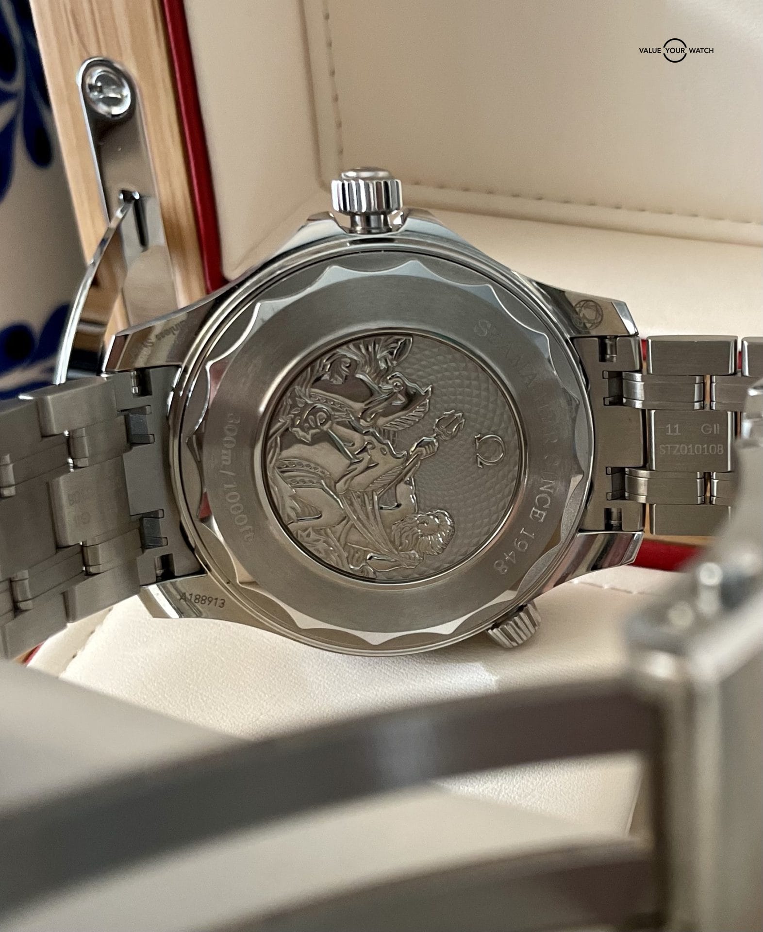 Get your hands on one of the hottest watches of the summer. The Omega Seamaster “Summer Blue” 210.30.42.20.03.003 is currently sold out on Omega’s website and you can have this one on your wrist in mint condition.