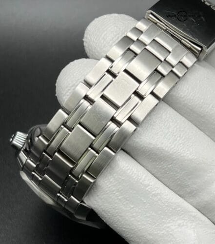 Excellent overall condition. A few minor hairlines may be observed with the naked eye and/or under magnification. The bracelet is fully linked and in excellent condition. Clasp has some marks from desk diving. There are no scratches or nicks that couldn’t be easily polished out, but I would not touch it.