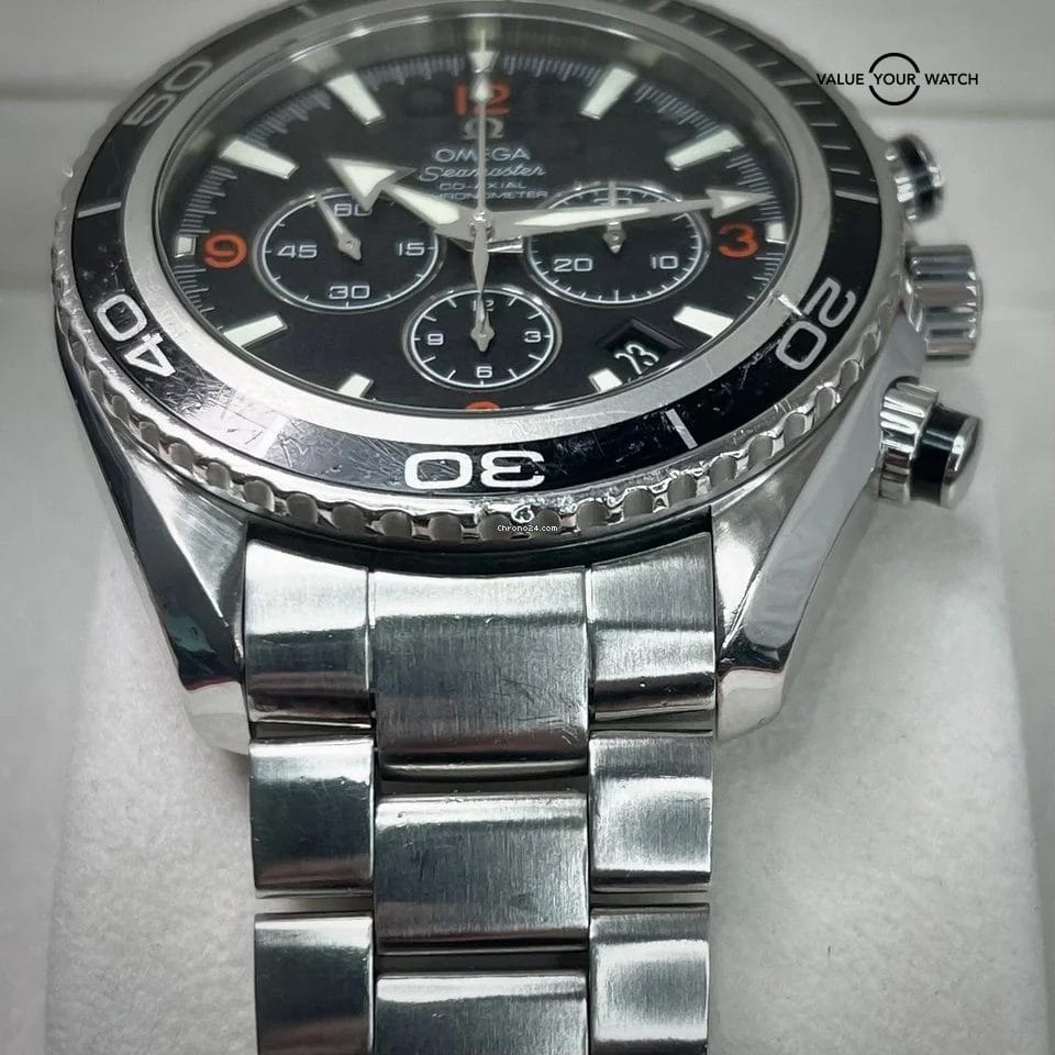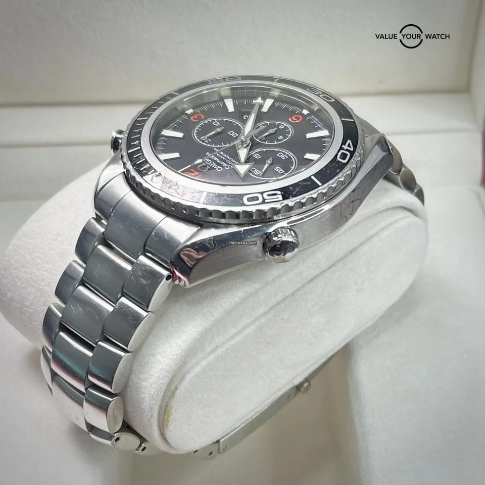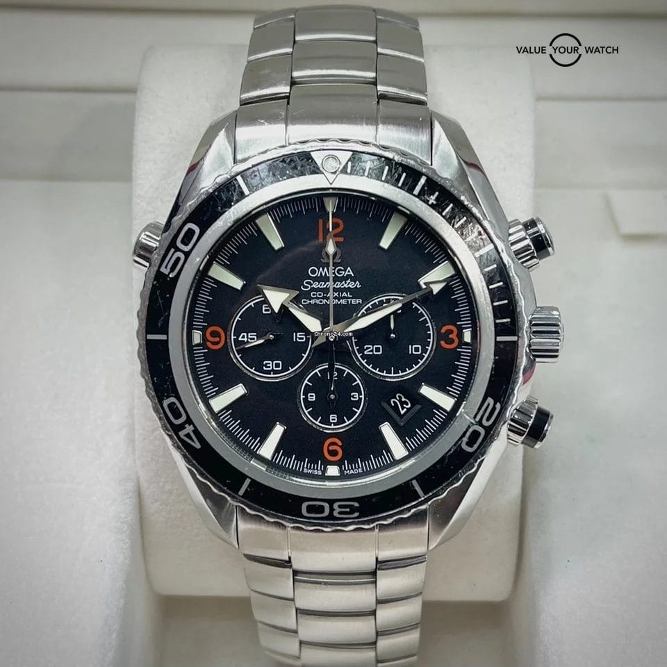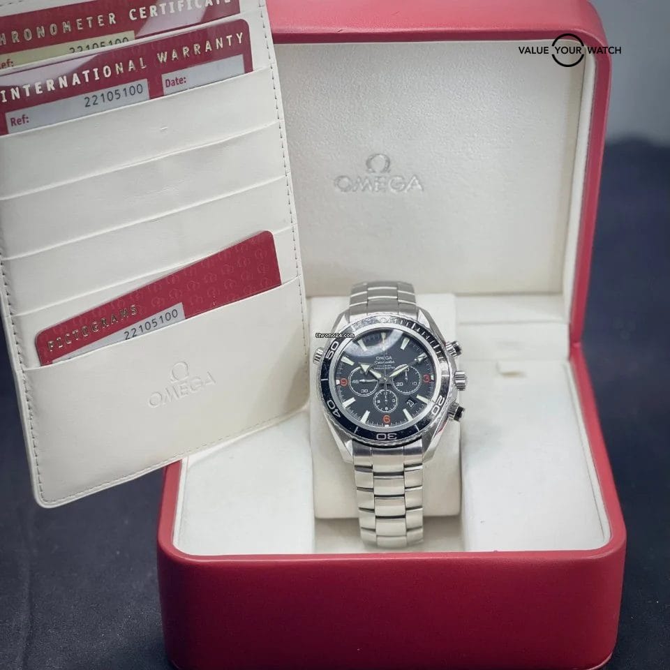 Specification: Omega Seamaster Planet Ocean Chronograph black dial box and papers