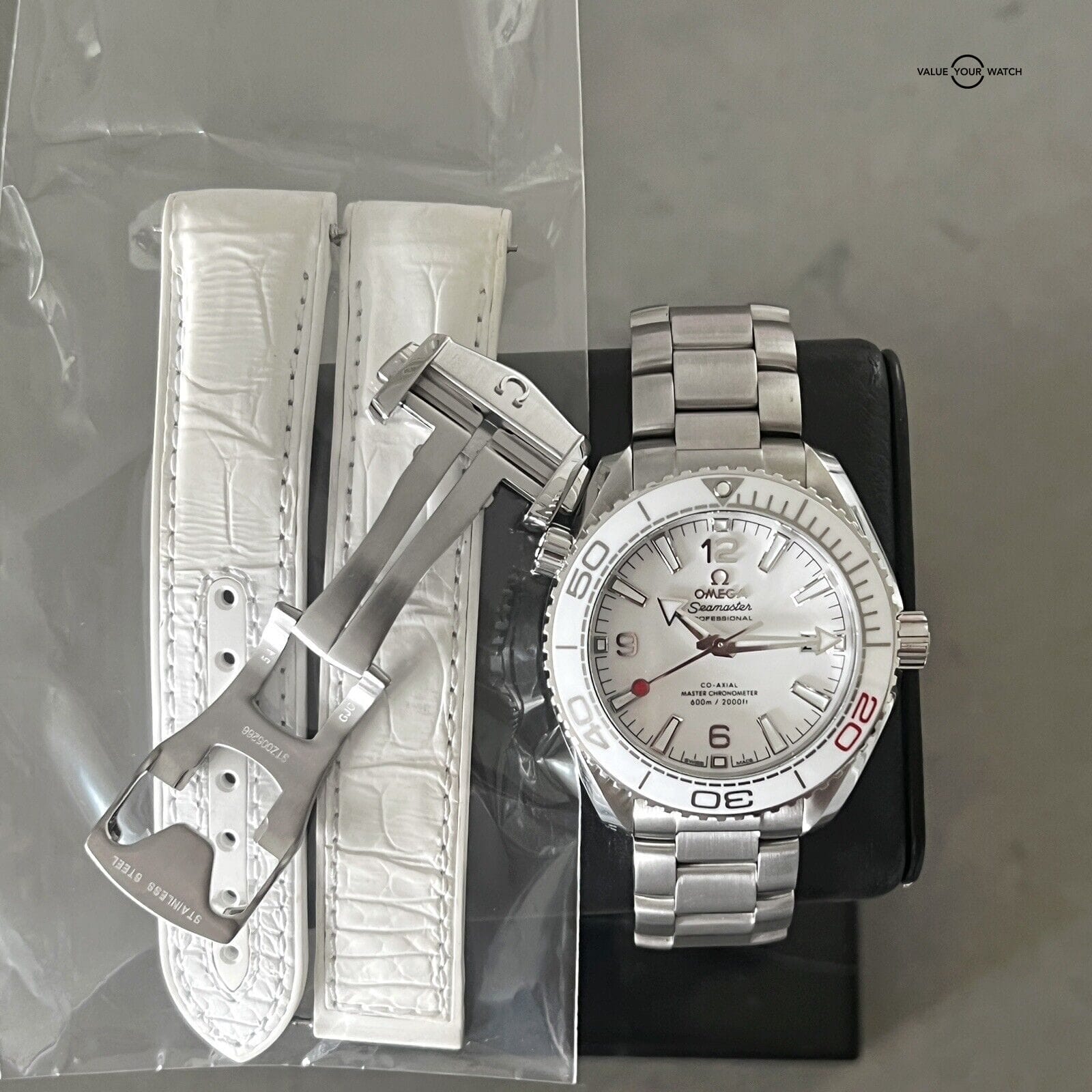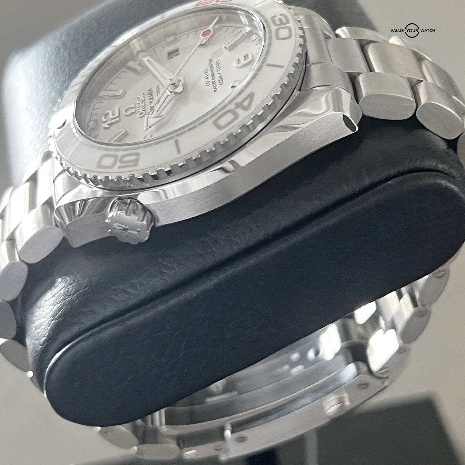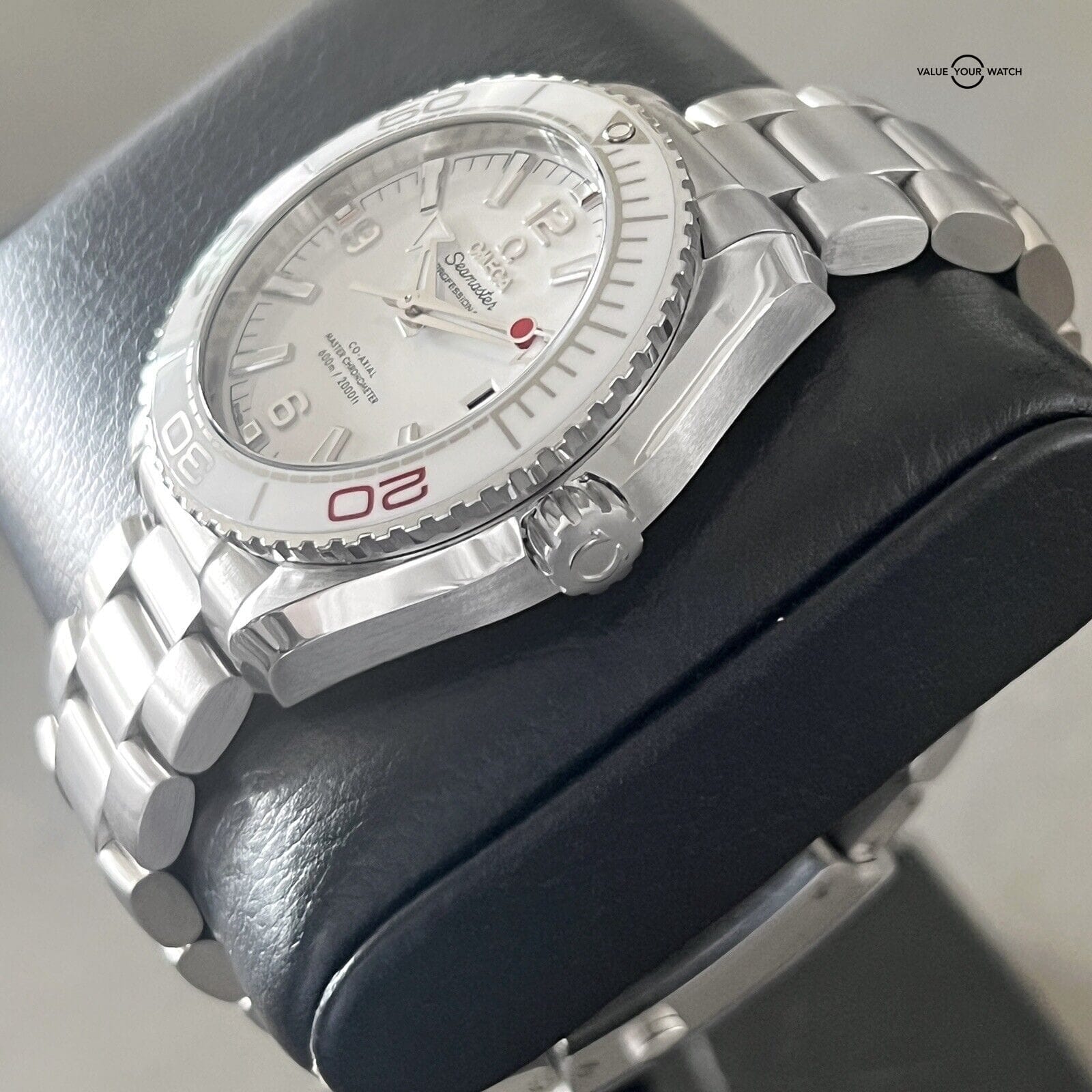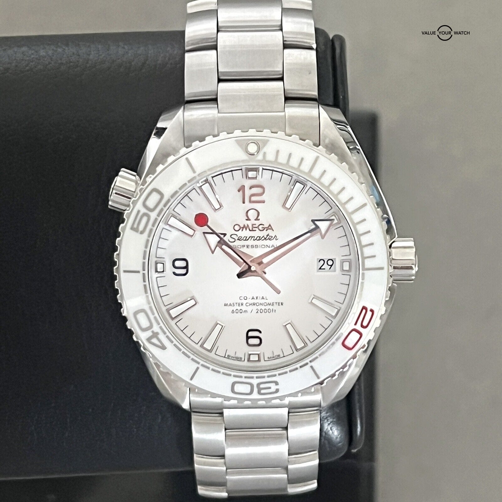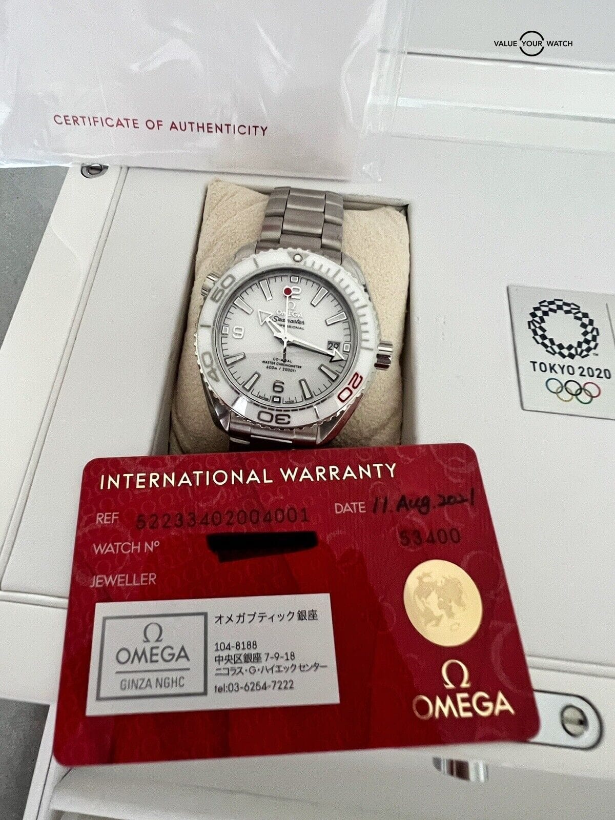 Introducing the Omega Seamaster Planet Ocean Tokyo Olympics 2020- 522.33.40.20.04.001 (Full Set). This wristwatch features a stunning white bezel, water resistance up to 600 m (60 ATM), and is made with stainless steel case material. It was manufactured in 2021 and comes with papers as well as the original box and packaging, manual/booklet, and a 3-year manufacturer warranty.
