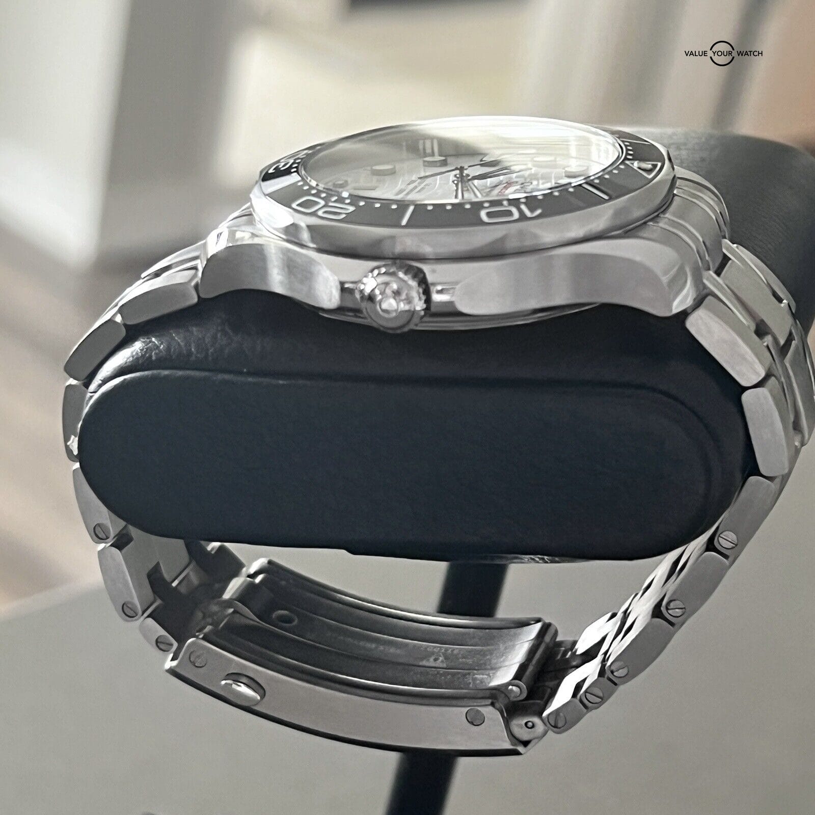 The Omega Seamaster 2023 with a white dial and rubber OEM strap is a stylish and versatile watch designed for those who appreciate both modern aesthetics and robust performance. It’s part of Omega’s iconic Seamaster collection, celebrated for its maritime heritage and timeless appeal.