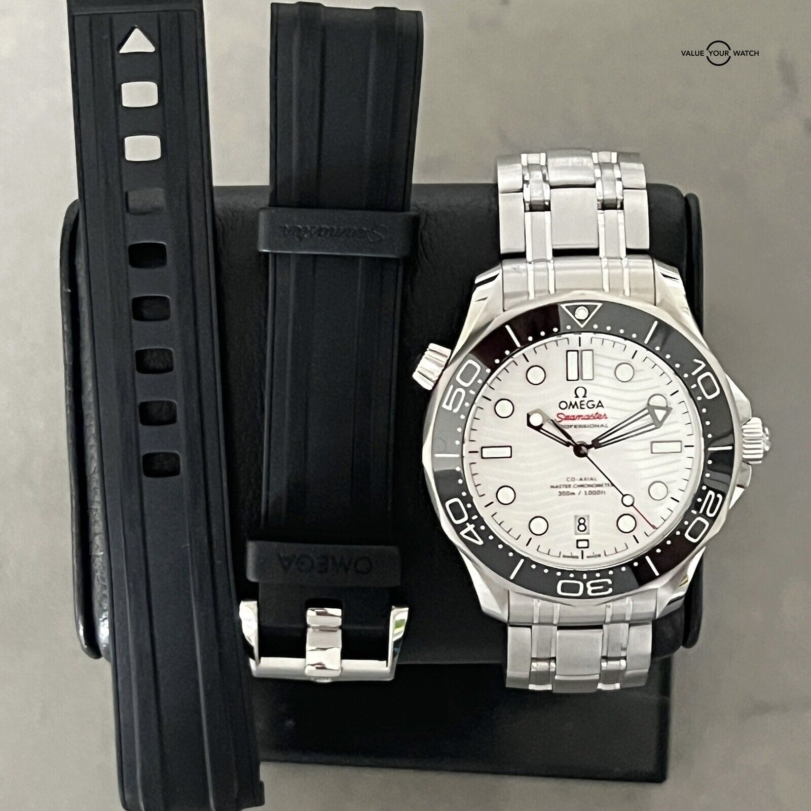 Guide to Buying and Selling Omega Seamaster White Dial | 2023 w/rubber OEM Strap – 210.30.42.20.04.001 Online