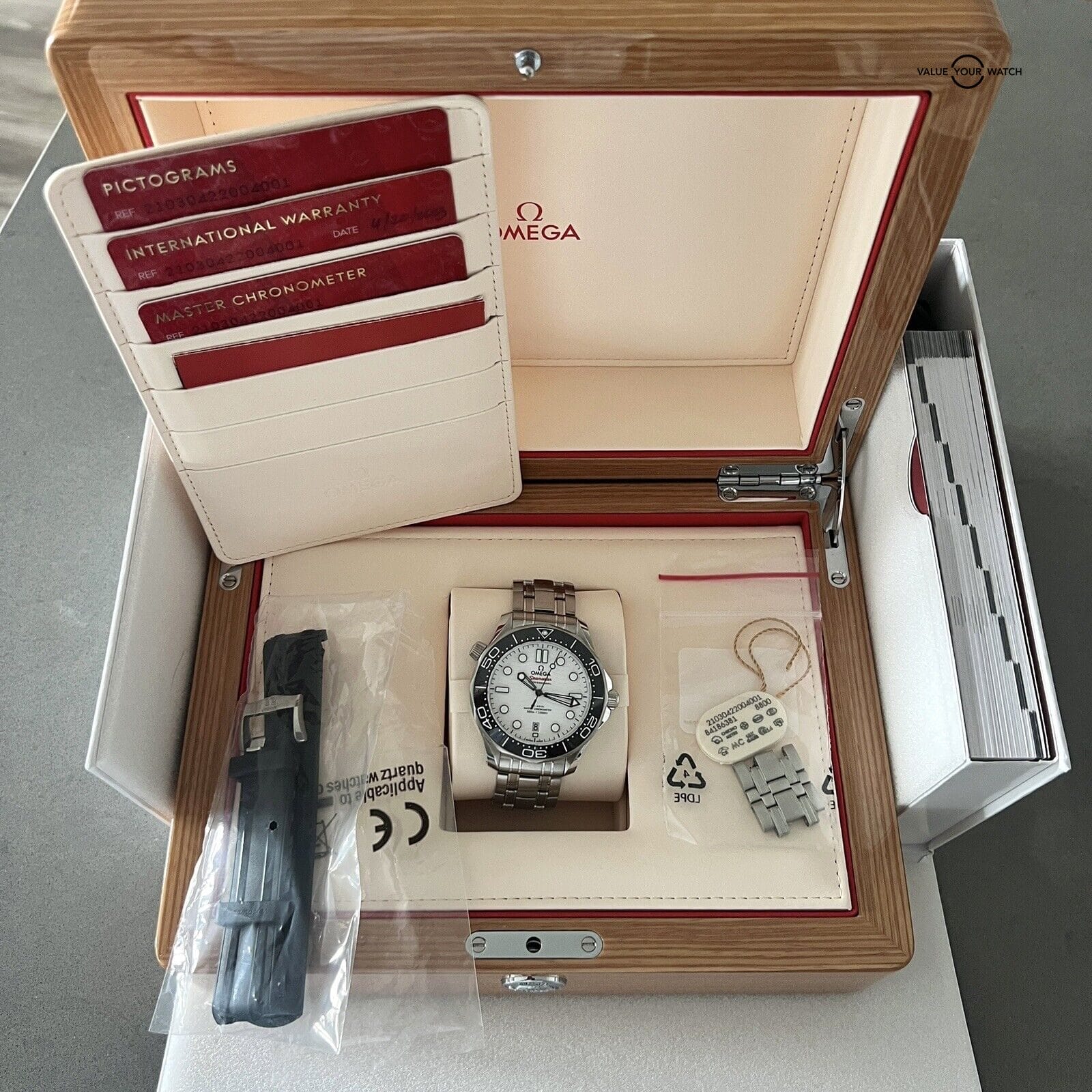 Omega Seamaster White Dial | 2023 w/rubber OEM Strap – 210.30.42.20.04.001