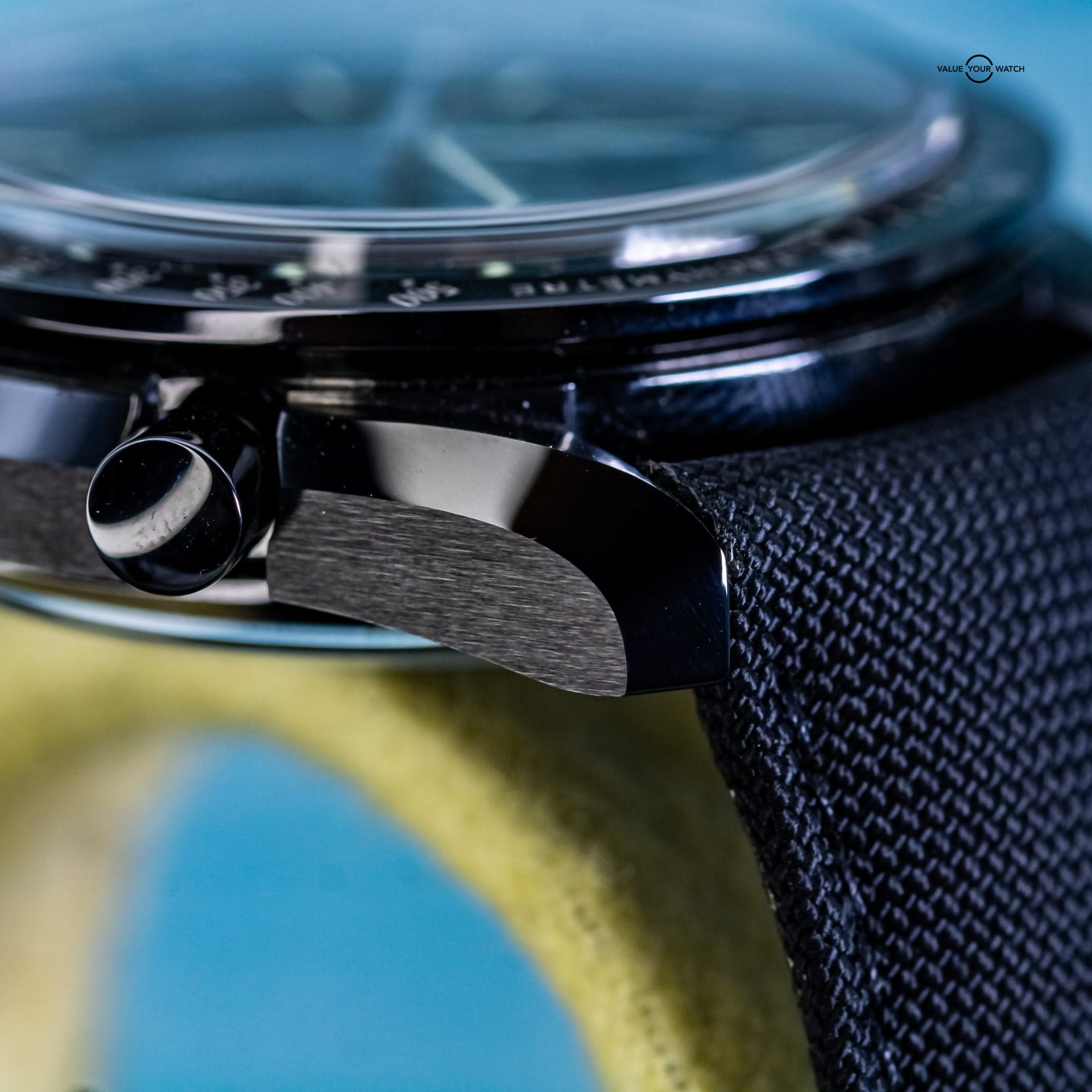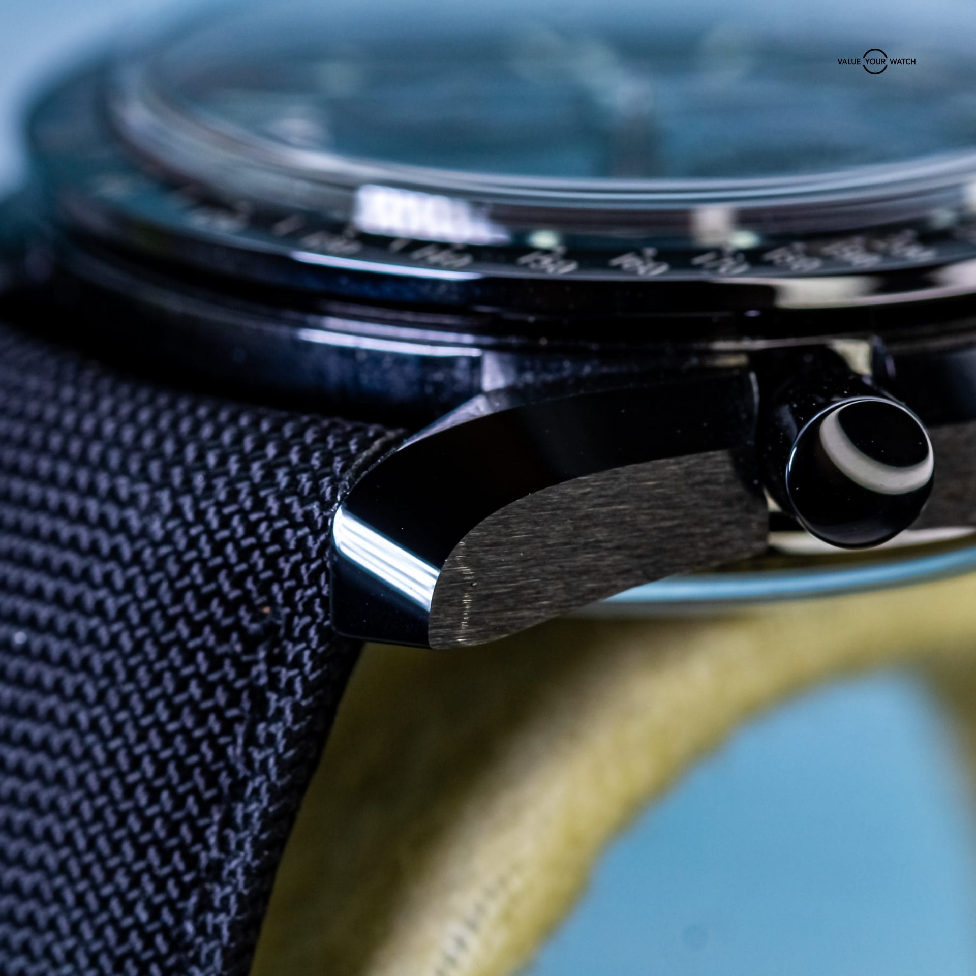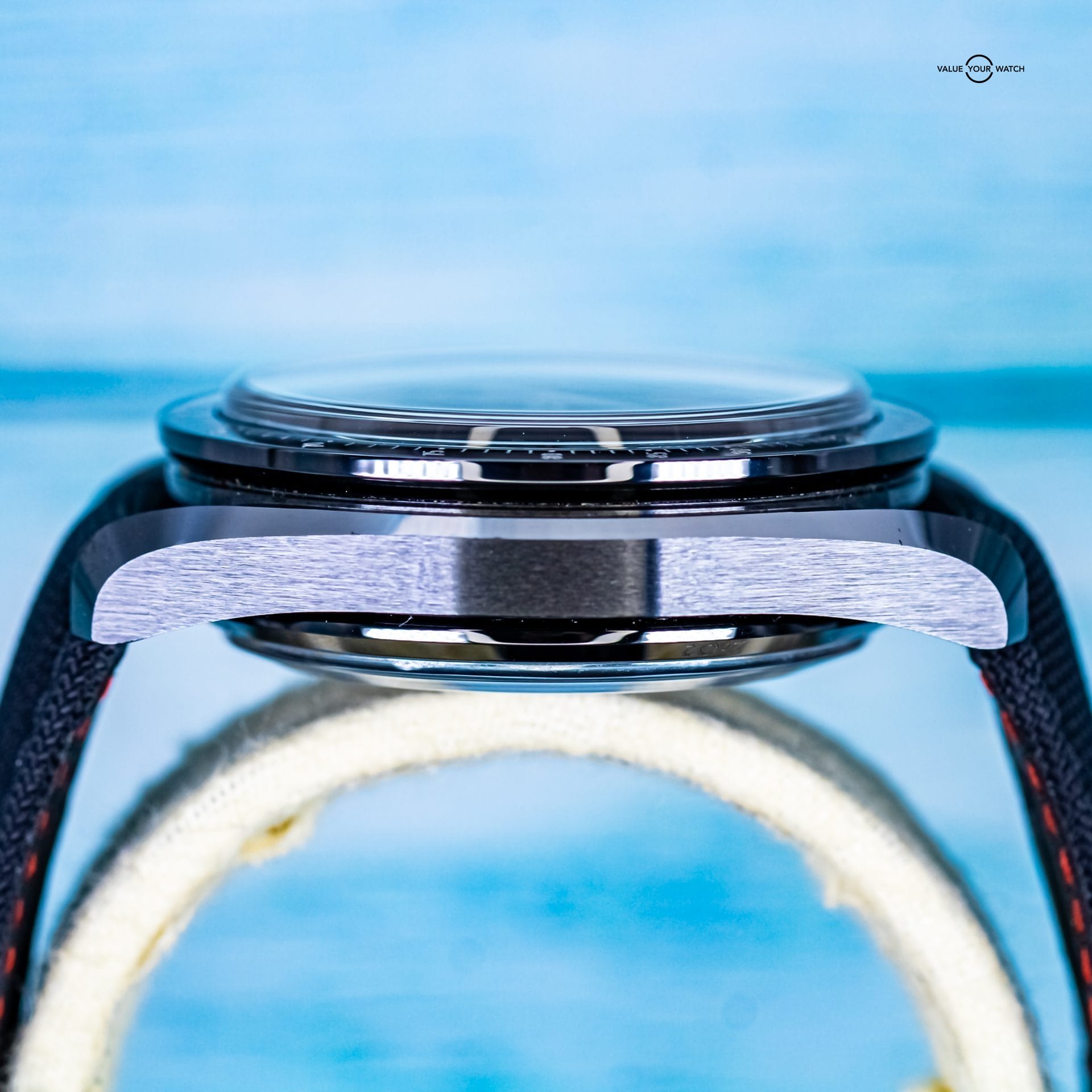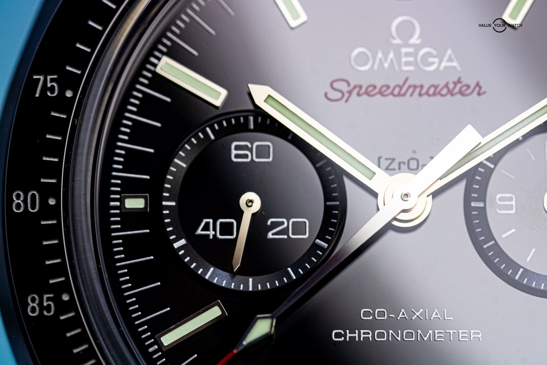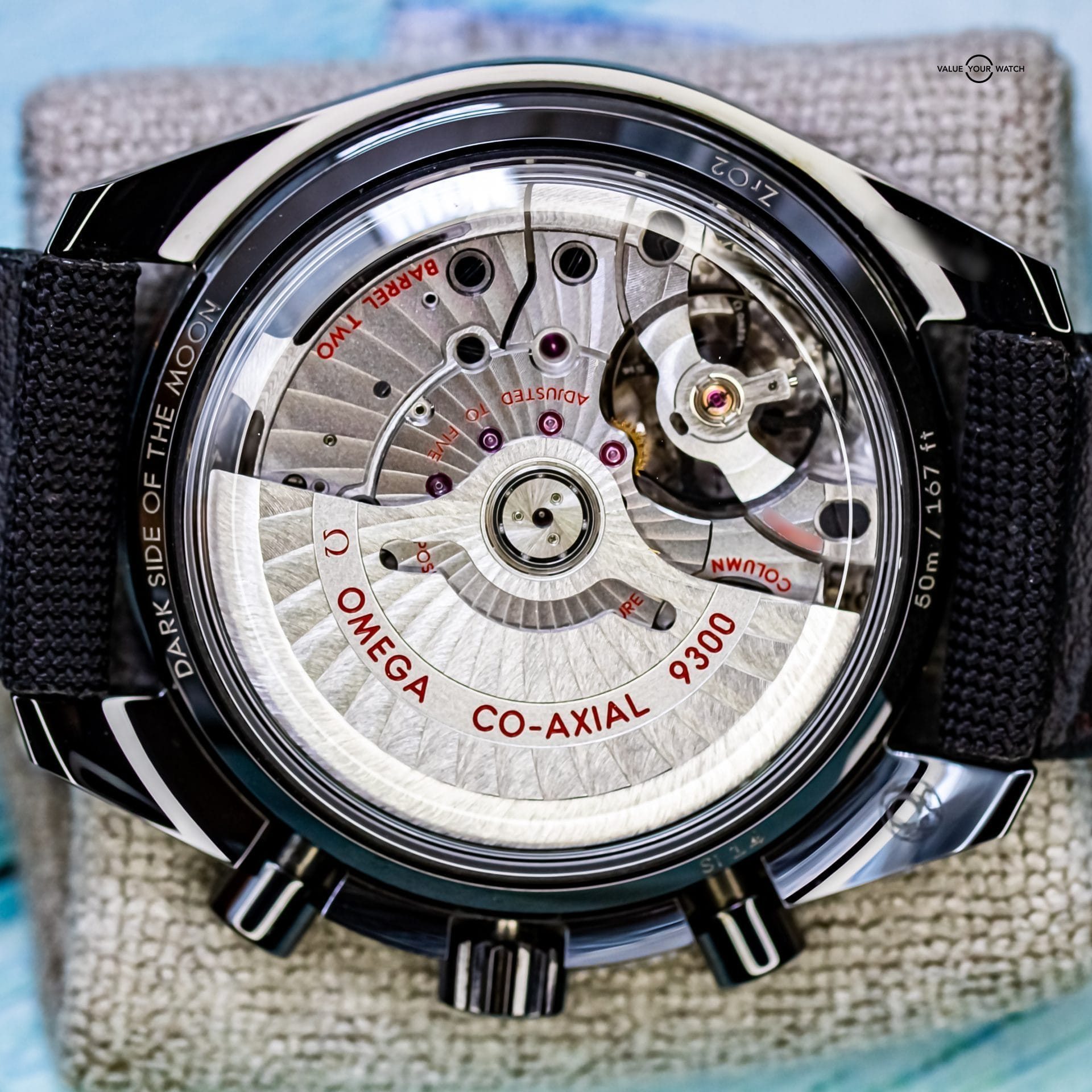 Presenting the Omega Speedmaster Dark Side Of The Moon. The one and only original that began the “Dark Side” line. What’s not to love about this timepiece? It has a case and bezel crafted from ceramic, making it extremely light and scratch resistant. The Cordura fabric strap is not only comfortable, but feather light and adds to the black aesthetic. The co-axial 9300 movement is on full display thanks to the exhibition caseback. The moonwatch style hands feature 18K white gold, and the zirconium oxide ceramic dial is mesmerizingly dark.