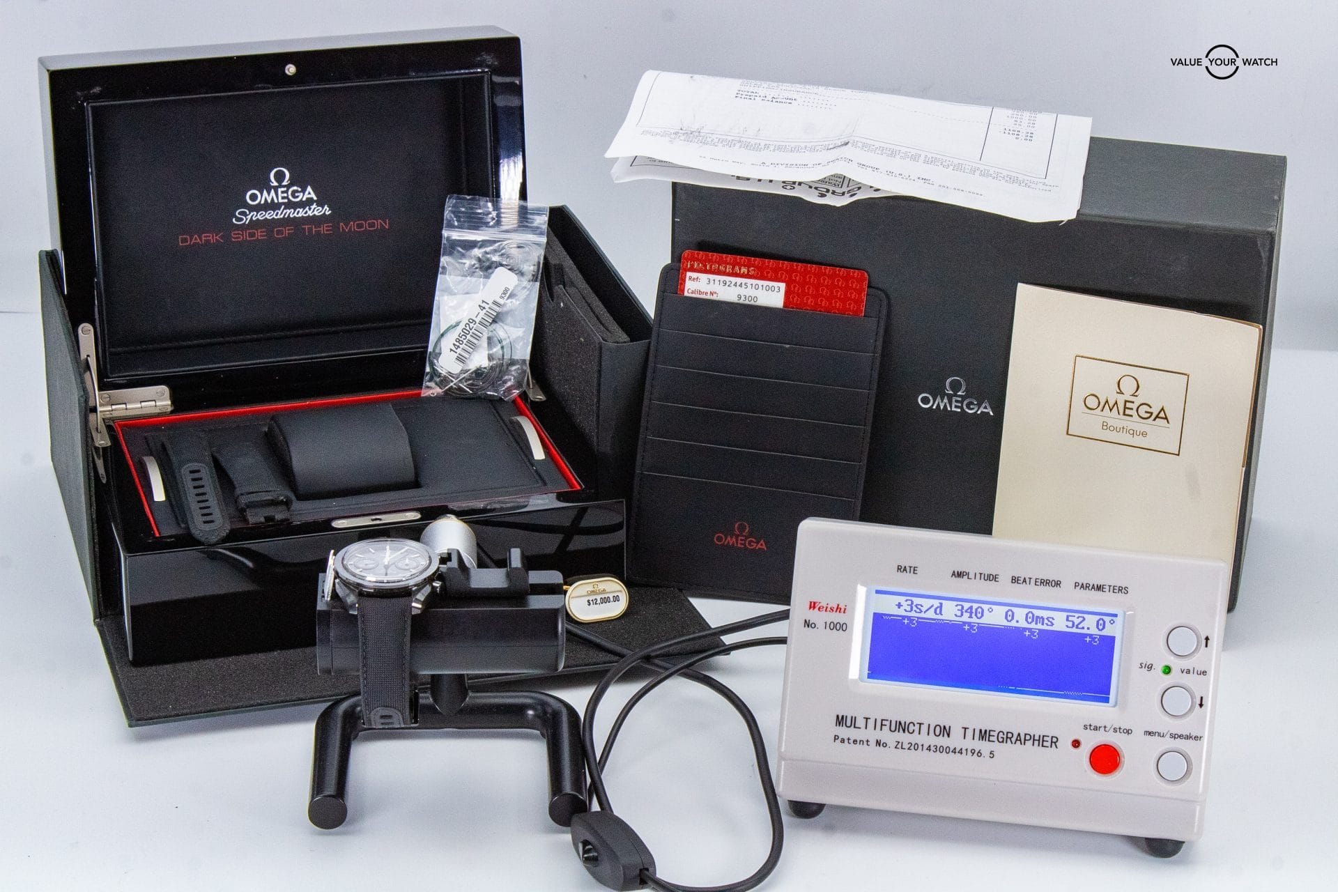 Note: The serial number on the watch and any documents have been digitally blurred in the photos. They are fully present